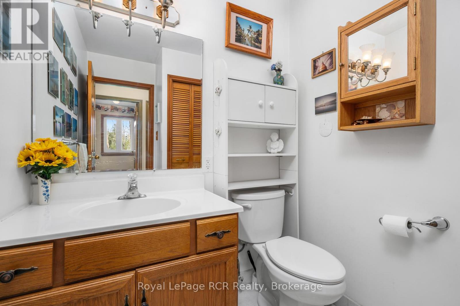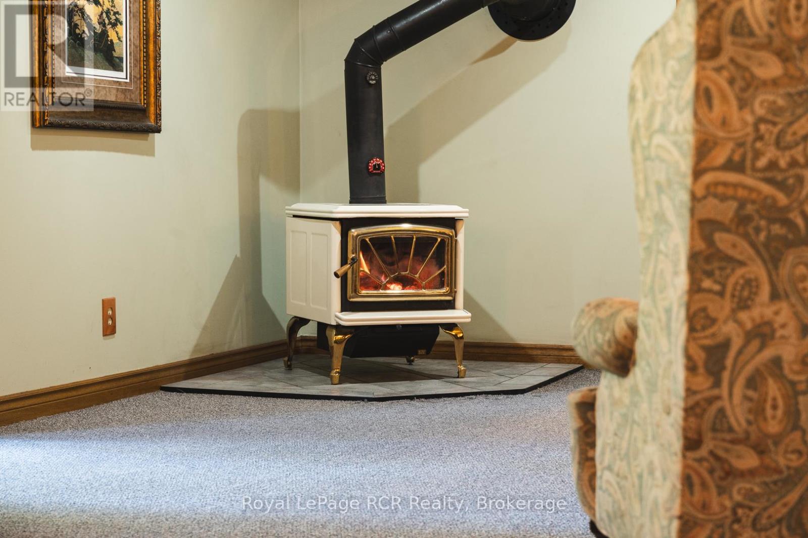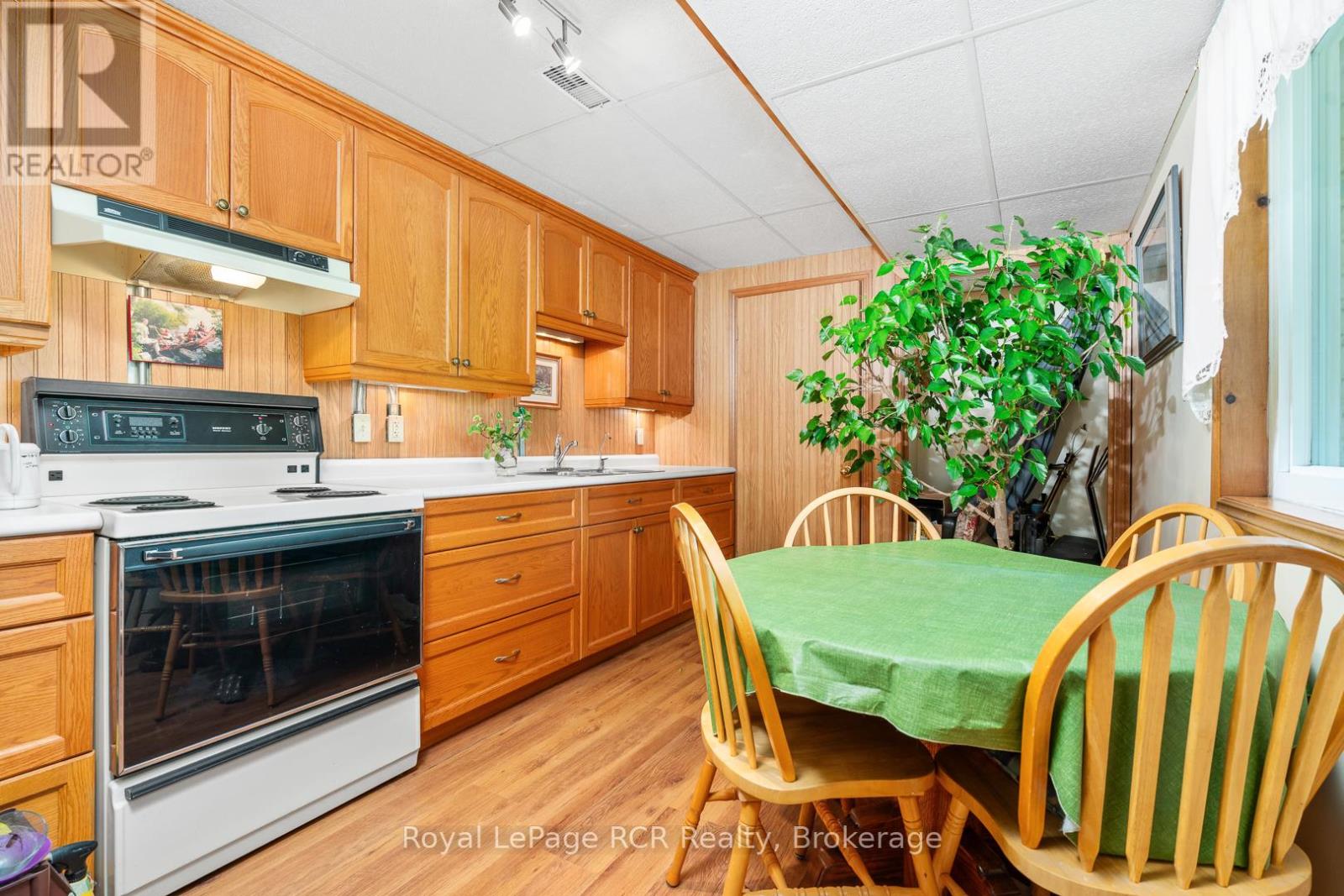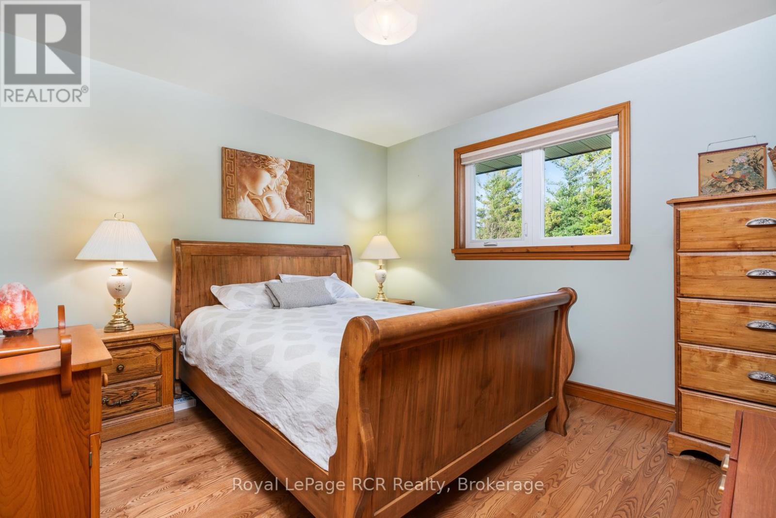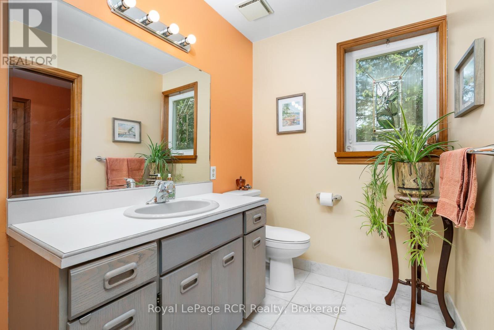 Rare opportunity to own a waterfront acreage just minutes from Hanover, offering a gorgeous natural setting with a lovely bungalow, 2 storage sheds and only moments to the convenience of town amenities. Located on a paved road with Wightman fibre optic internet, this property combines rural living with modern connectivity. The fully bricked 3+1 bedroom, 3 bathroom bungalow features a practical layout. The main floor offers an eat-in kitchen with solid wood Hanover Cabinetry, quartz countertops, and French doors leading to a large deck overlooking the forest and Beatty Saugeen River. The living room includes a picture window with views of the front covered porch, trees and gardens. There are three bedrooms, including a spacious L-shaped primary with large closet and direct access to the four-piece bathroom. A two-piece bathroom, laundry room, and attached double car garage complete the main level.The fully finished lower level includes a walk-out, living room with an airtight wood stove, family room with pocket French doors, a spacious bedroom, kitchenette, three-piece bathroom, 3 storage rooms--ideal for guests or multigenerational living. Other features include two automatic garage door openers, updated windows (2016), high-efficiency furnace, central air (2010), water system (with RO water treatment, iron filter, water softener), recycled asphalt driveway, generator, full appliance package and two storage sheds.This acreage is a private playground--whether you are fishing or tubing in the summer, snowshoeing in the winter, relaxing at the river or at the campfire, watching wildlife or gardening, every season offers a new way to enjoy outdoor life. Conveniently located just minutes from Hanover's schools, hospital, and shopping, this waterfront property combines a peaceful rural setting with easy access to everyday amenities. Spacious with main floor just over 1600sq ft, lower level 1343, above grade finished approx 2400 sq ft with walkout. (id:43681)
