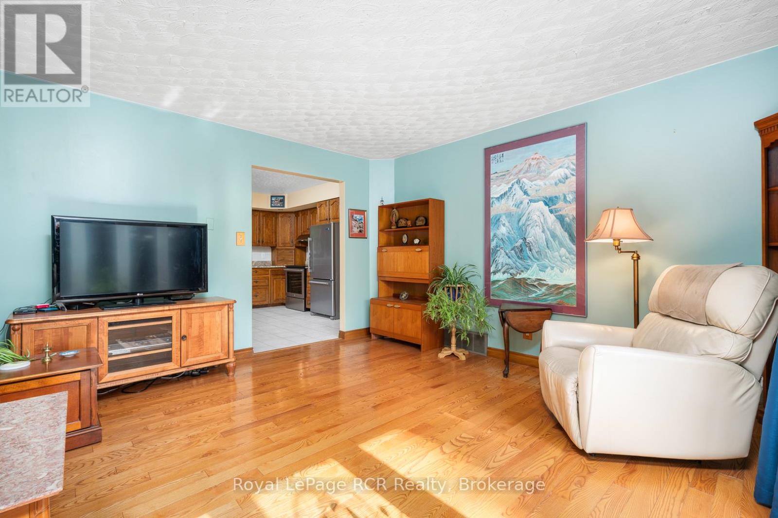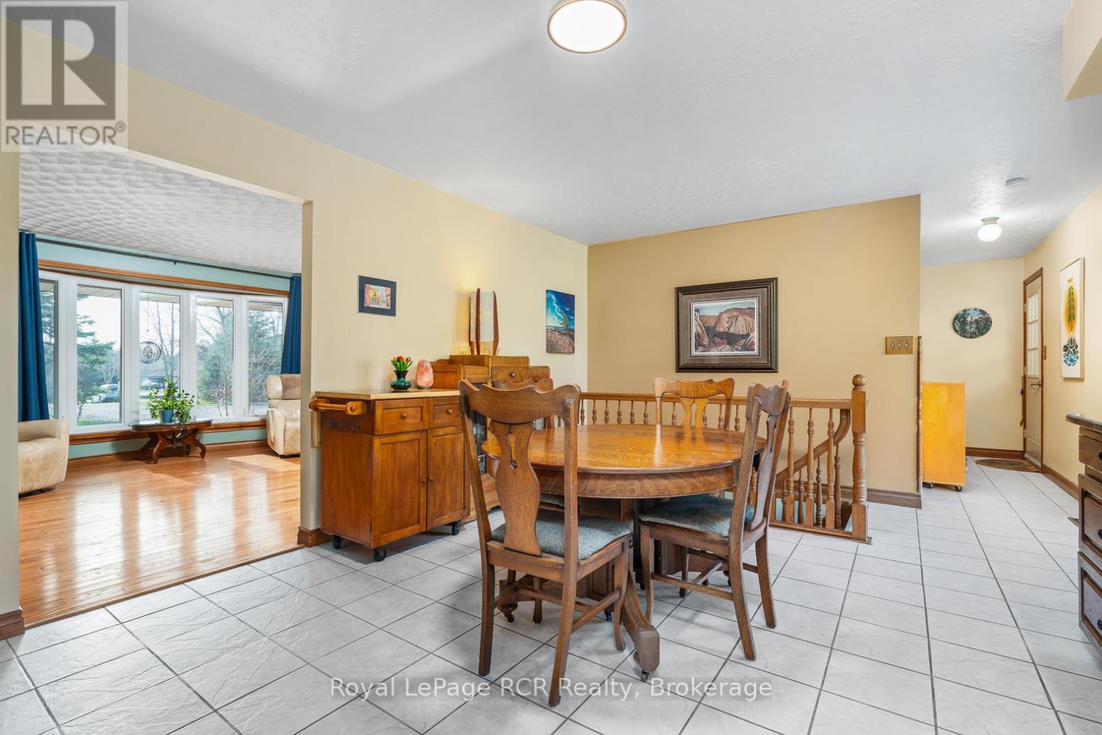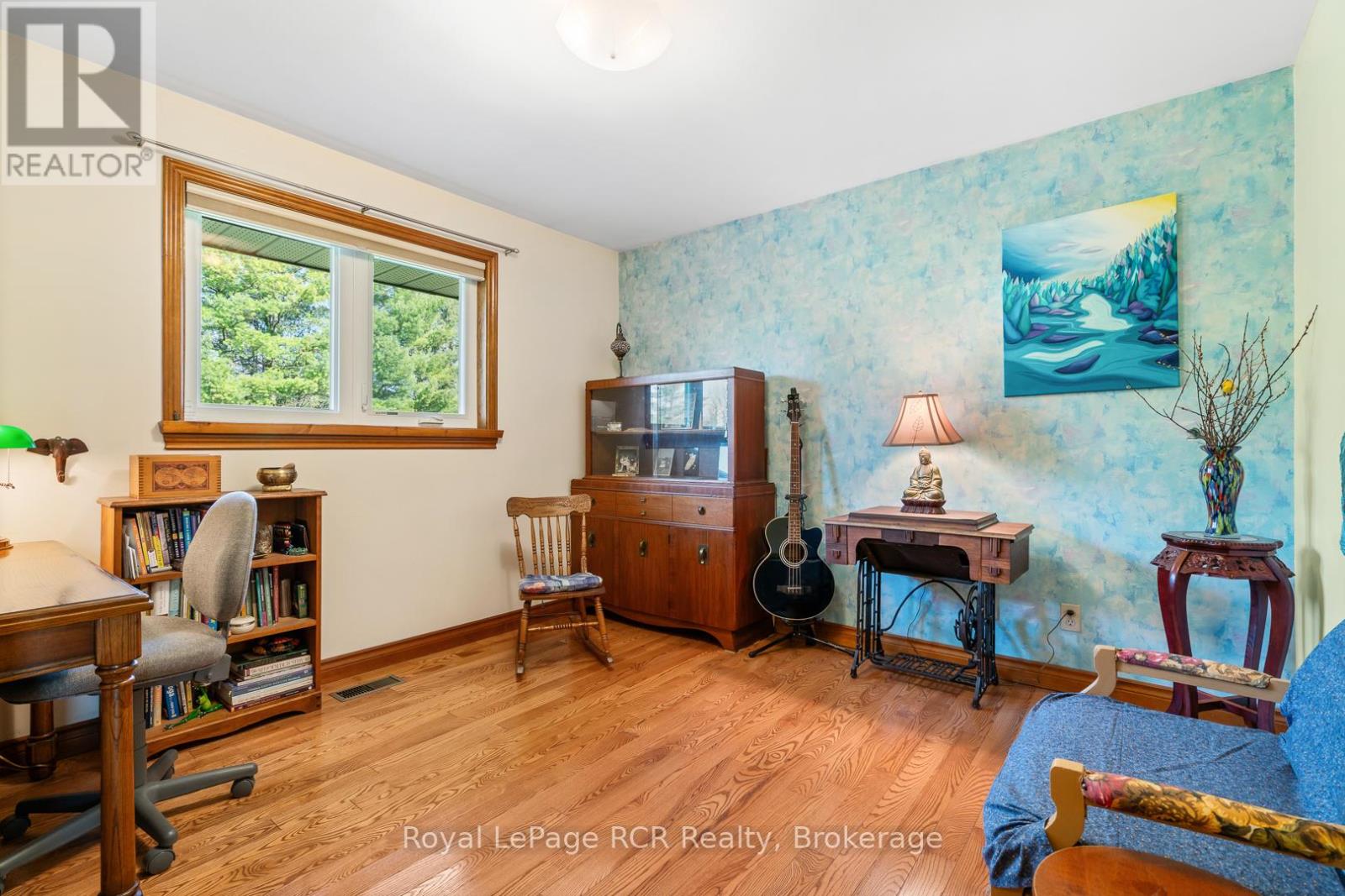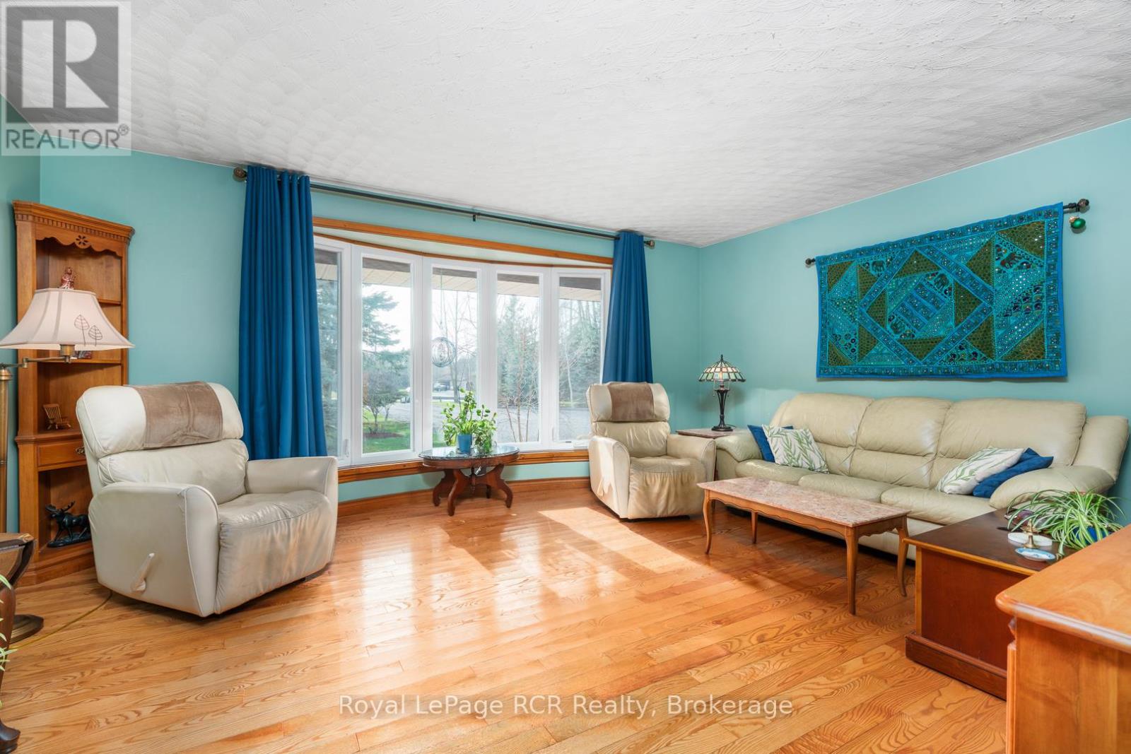 Rare opportunity to own a waterfront acreage just minutes from Hanover, offering a gorgeous natural setting with a lovely bungalow, 2 storage sheds and only moments to the convenience of town amenities. Located on a paved road with Wightman fibre optic internet, this property combines rural living with modern connectivity. The fully bricked 3+1 bedroom, 3 bathroom bungalow features a practical layout. The main floor offers an eat-in kitchen with solid wood Hanover Cabinetry, quartz countertops, and French doors leading to a large deck overlooking the forest and Beatty Saugeen River. The living room includes a picture window with views of the front covered porch, trees and gardens. There are three bedrooms, including a spacious L-shaped primary with large closet and direct access to the four-piece bathroom. A two-piece bathroom, laundry room, and attached double car garage complete the main level.The fully finished lower level includes a walk-out, living room with an airtight wood stove, family room with pocket French doors, a spacious bedroom, kitchenette, three-piece bathroom, 3 storage rooms--ideal for guests or multigenerational living. Other features include two automatic garage door openers, updated windows (2016), high-efficiency furnace, central air (2010), water system (with RO water treatment, iron filter, water softener), recycled asphalt driveway, generator, full appliance package and two storage sheds.This acreage is a private playground--whether you are fishing or tubing in the summer, snowshoeing in the winter, relaxing at the river or at the campfire, watching wildlife or gardening, every season offers a new way to enjoy outdoor life. Conveniently located just minutes from Hanover's schools, hospital, and shopping, this waterfront property combines a peaceful rural setting with easy access to everyday amenities. Spacious with main floor just over 1600sq ft, lower level 1343, above grade finished approx 2400 sq ft with walkout. (id:43681)