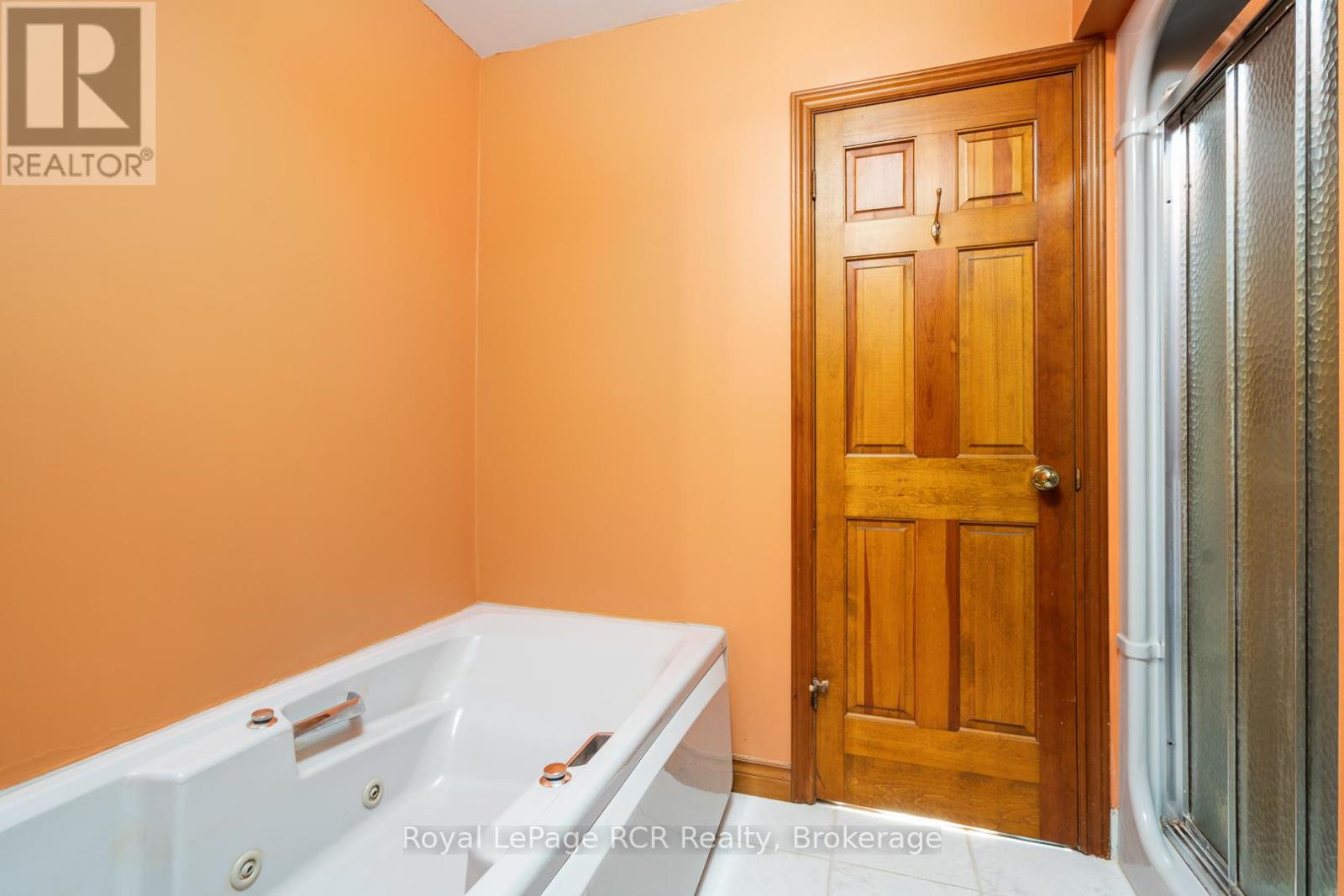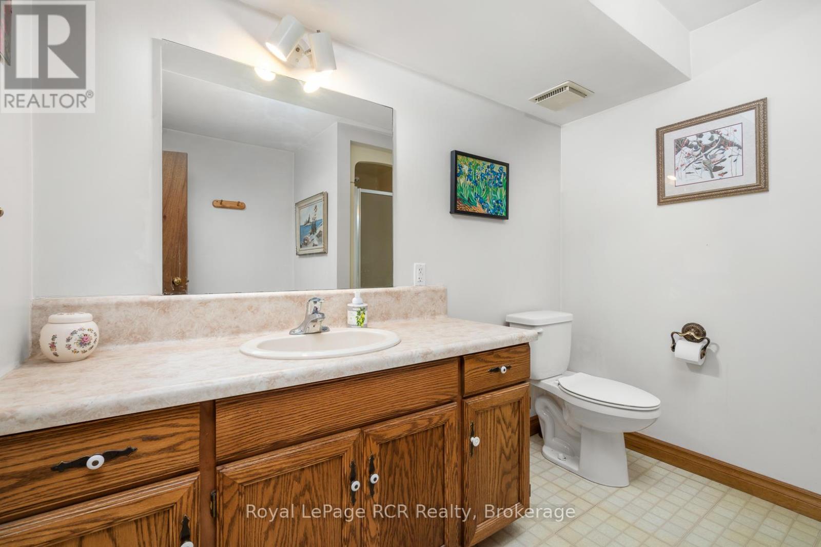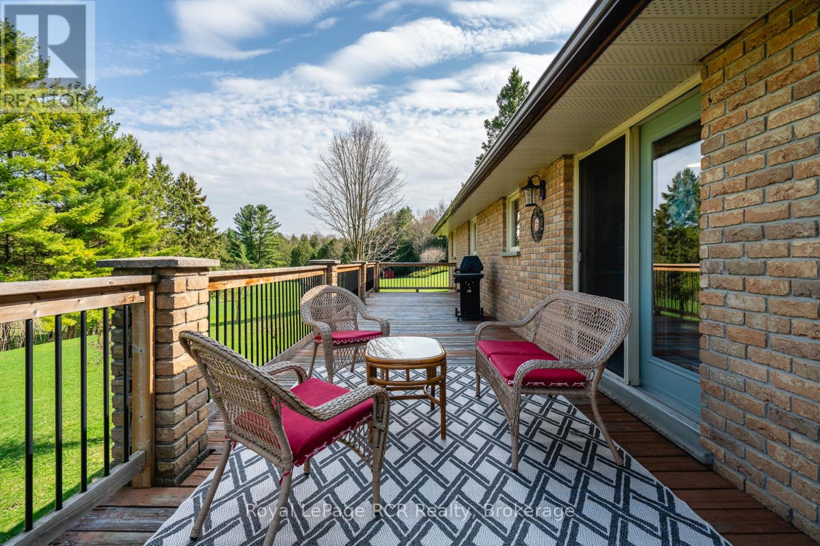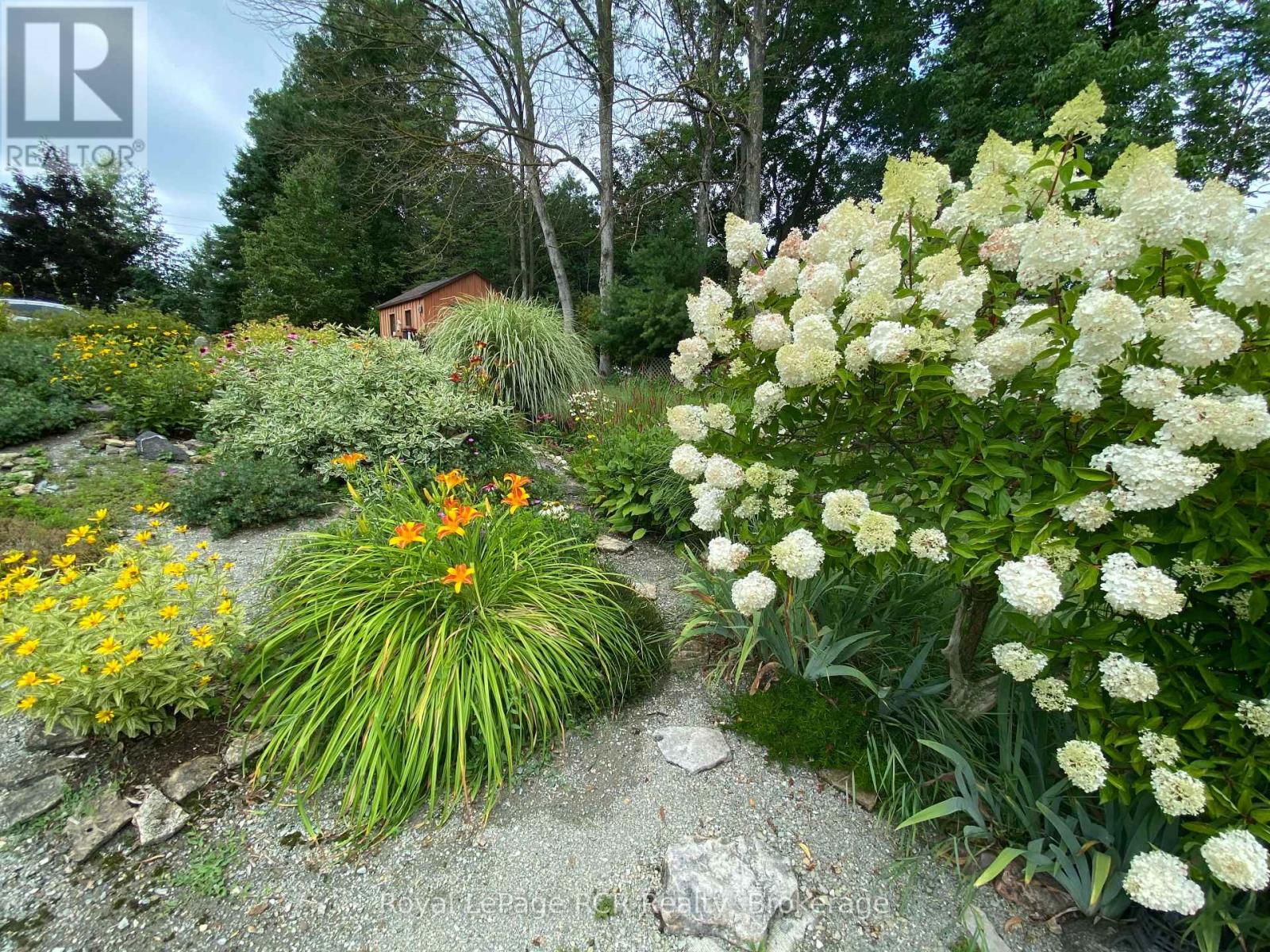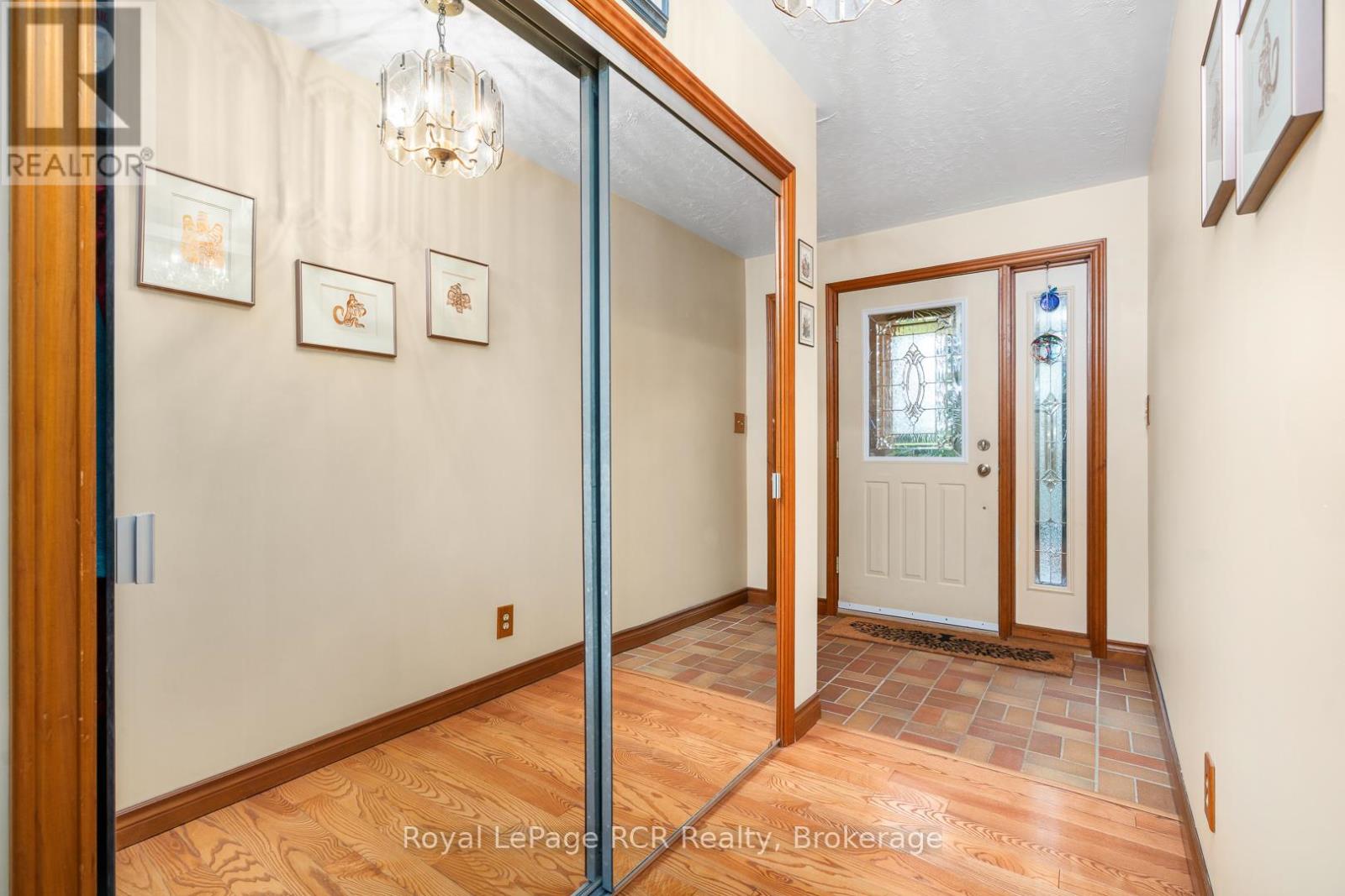 Rare opportunity to own a waterfront acreage just minutes from Hanover, offering a gorgeous natural setting with a lovely bungalow, 2 storage sheds and only moments to the convenience of town amenities. Located on a paved road with Wightman fibre optic internet, this property combines rural living with modern connectivity. The fully bricked 3+1 bedroom, 3 bathroom bungalow features a practical layout. The main floor offers an eat-in kitchen with solid wood Hanover Cabinetry, quartz countertops, and French doors leading to a large deck overlooking the forest and Beatty Saugeen River. The living room includes a picture window with views of the front covered porch, trees and gardens. There are three bedrooms, including a spacious L-shaped primary with large closet and direct access to the four-piece bathroom. A two-piece bathroom, laundry room, and attached double car garage complete the main level.The fully finished lower level includes a walk-out, living room with an airtight wood stove, family room with pocket French doors, a spacious bedroom, kitchenette, three-piece bathroom, 3 storage rooms--ideal for guests or multigenerational living. Other features include two automatic garage door openers, updated windows (2016), high-efficiency furnace, central air (2010), water system (with RO water treatment, iron filter, water softener), recycled asphalt driveway, generator, full appliance package and two storage sheds.This acreage is a private playground--whether you are fishing or tubing in the summer, snowshoeing in the winter, relaxing at the river or at the campfire, watching wildlife or gardening, every season offers a new way to enjoy outdoor life. Conveniently located just minutes from Hanover's schools, hospital, and shopping, this waterfront property combines a peaceful rural setting with easy access to everyday amenities. Spacious with main floor just over 1600sq ft, lower level 1343, above grade finished approx 2400 sq ft with walkout. (id:43681)