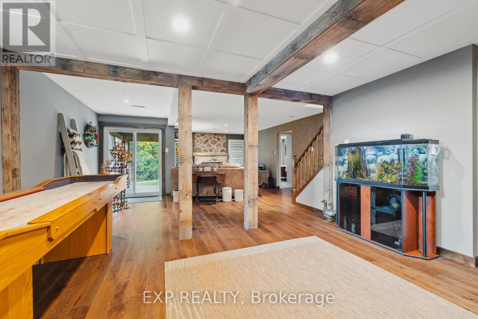 Welcome to Riverwalk, one of Cambridge's most sought after communities tucked along the banks of the Grand River. This beautifully renovated end unit offers a rare combination of privacy, natural light, and effortless living in a setting that feels worlds away from the everyday. Inside, the main floor has been thoughtfully opened up to create a bright, flowing layout where the kitchen, living, and dining areas connect seamlessly. Large windows draw in natural light and frame peaceful views of the surrounding greenery and river beyond. The main floor primary bedroom offers the ease of single level living, complete with a luxurious 5 piece ensuite featuring a freestanding jetted tub, glass shower, and double vanity. Step directly from the bedroom onto the private deck and start your mornings overlooking the Grand River, a view that never gets old. A separate dining room at the front of the home offers flexibility for formal entertaining, a quiet home office, or a cozy reading space. Downstairs, the fully finished walkout basement adds valuable living space with a second bedroom, spacious family room, and gas fireplace that makes the entire level feel warm and inviting. Perfect for guests, extended family, or a private retreat. Riverwalk is known for its beautifully maintained grounds and welcoming community atmosphere. Residents enjoy access to a clubhouse, party room, visitor parking, and shared outdoor spaces including a community garden and arboretum. Just steps away, the Walter Bean Grand River Trail offers kilometres of scenic walking and cycling paths along the river. With major updates including a new heat pump and roof in 2025, and a location that blends peaceful nature with easy access to city amenities, this home offers a lifestyle that is both relaxed and refined. A rare opportunity for those looking to downsize without compromise or simply enjoy riverside living at its best. (id:43681)
