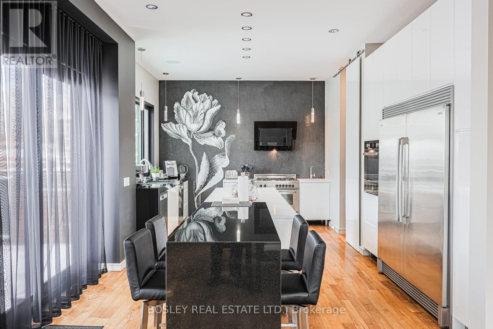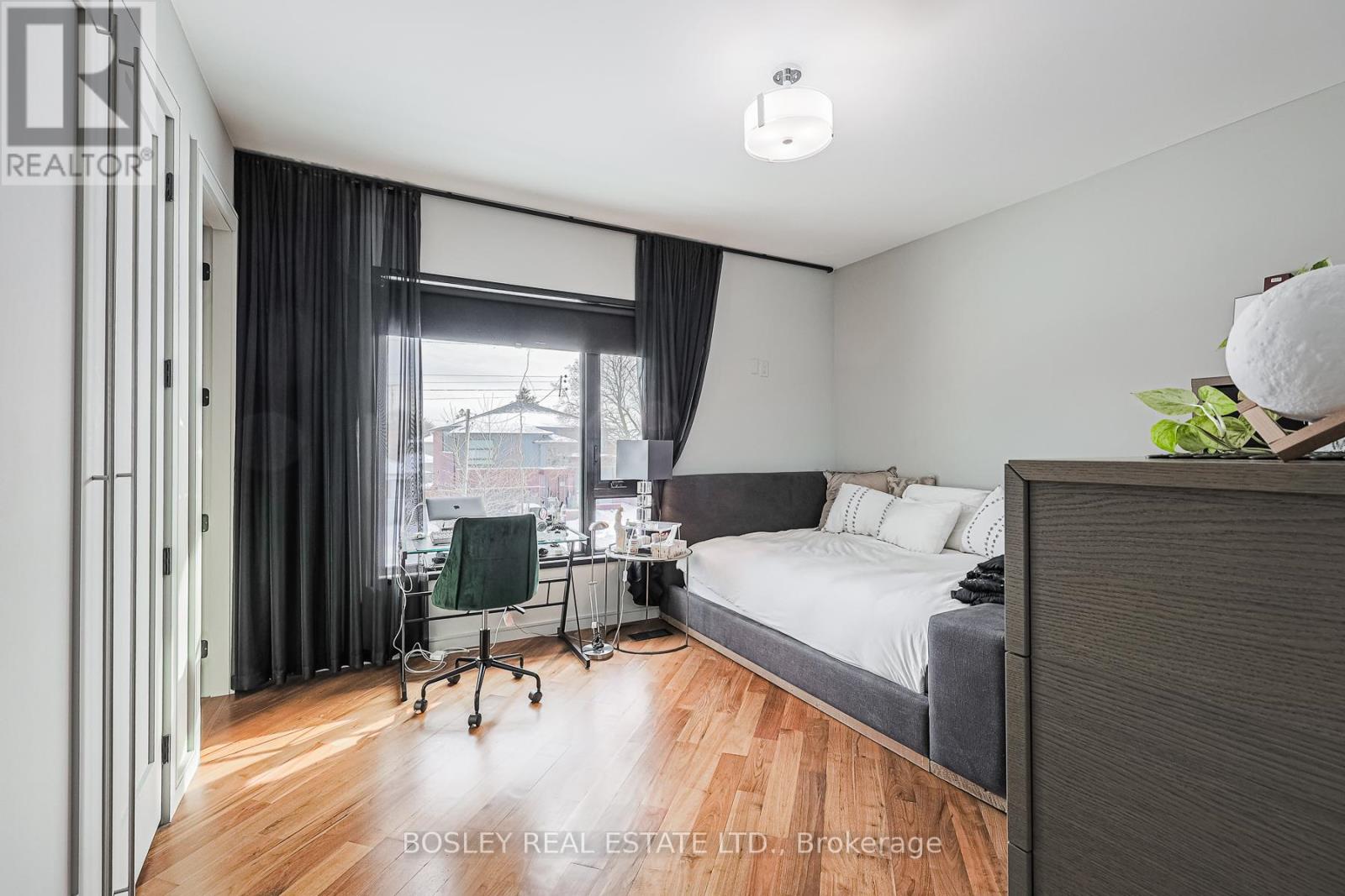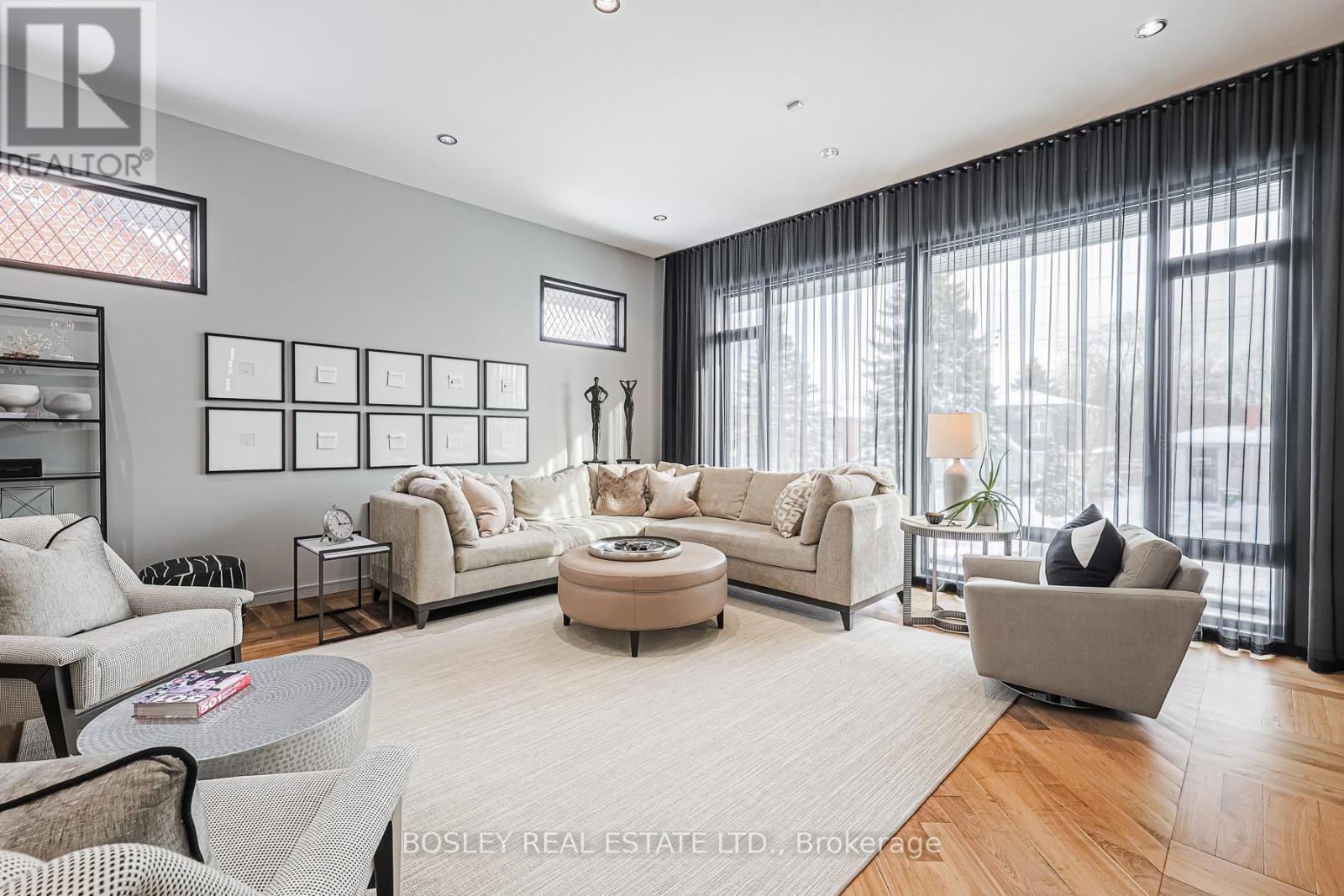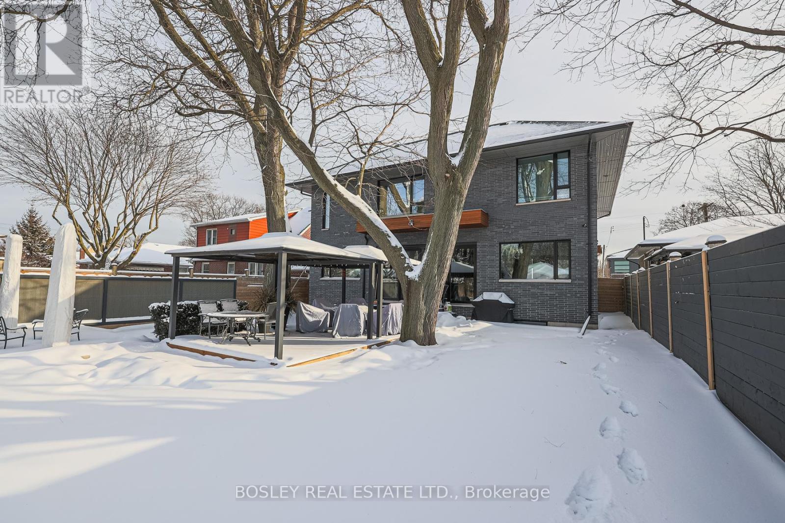 Exceptional, large 4 + 1 bedroom contemporary family home on a quiet, family-friendly street with easy access to downtown, the airport, and major highways. Bright, open-concept design with high ceilings and an impressive sense of space throughout. Chef's kitchen with granite and Caesarstone countertops, walk-in pantry, 2 dishwashers, wall oven, and 5-burner gas stove, built for real living and entertaining. Hardwood flooring throughout. Triple-glazed windows for added comfort and efficiency. High ceilings throughout. Expansive layout ideal for families, featuring a separate above-grade family room overlooking the street, perfect for keeping an eye on kids. All bedrooms are generously sized, including Jack-and-Jill bedrooms and an additional bedroom with its own ensuite. Spacious primary suite with his-and-her bathrooms. Convenient upstairs laundry. Fully finished, oversized basement with a guest bedroom and private ensuite, ideal for extended family or visitors. Large, fully fenced garden offers plenty of space for children to play, plus a generous two-car garage. Surrounded by established family homes and close to parks and green space. Easy commute to downtown by car or subway. Located within the catchment of highly rated public schools and close to private schools, shopping, transit, and all amenities. Multi-year lease considered. Ideal for corporate relocations looking for a longer term. (id:43681)
