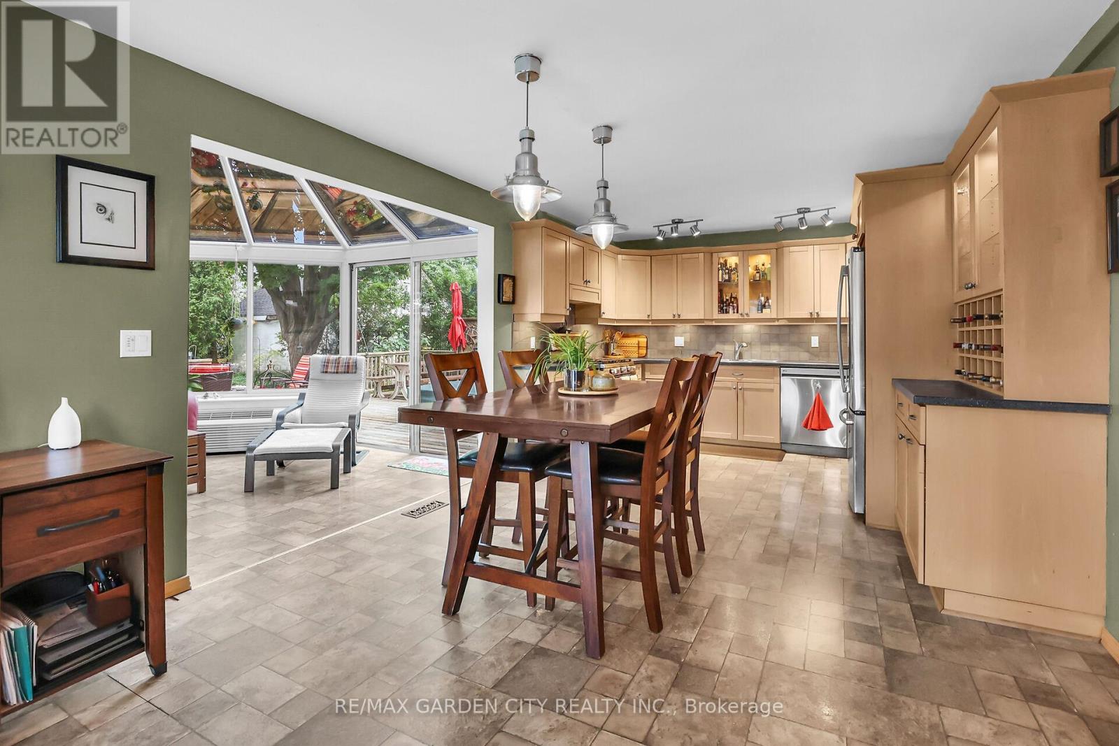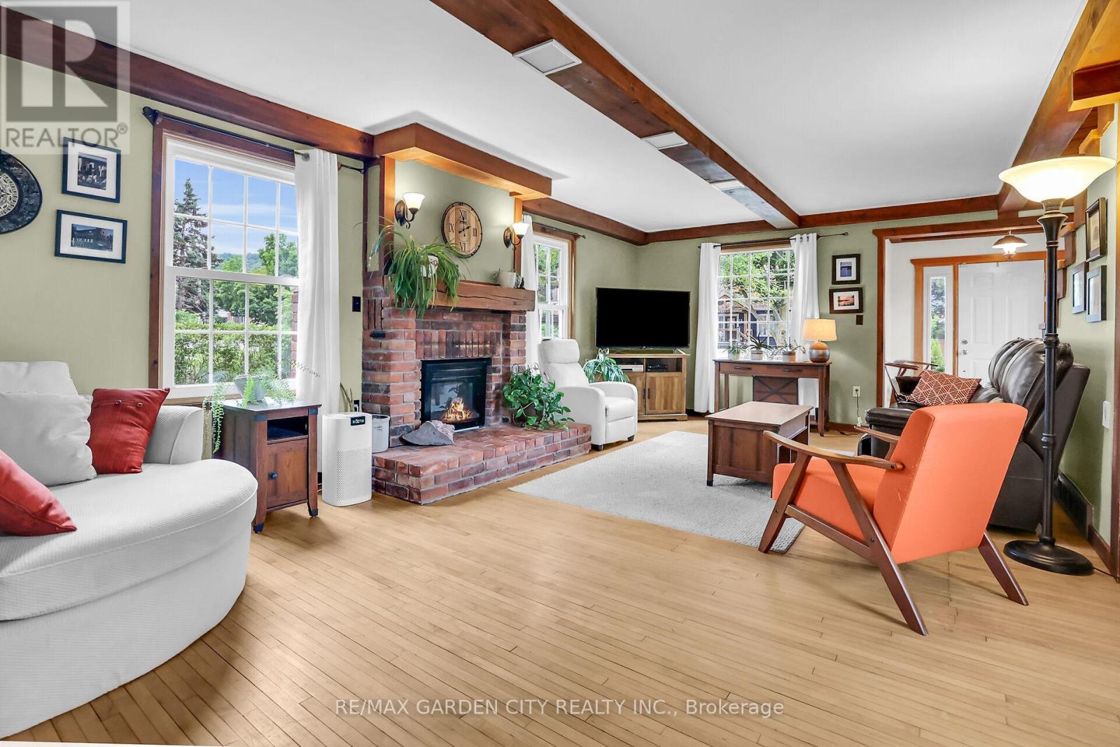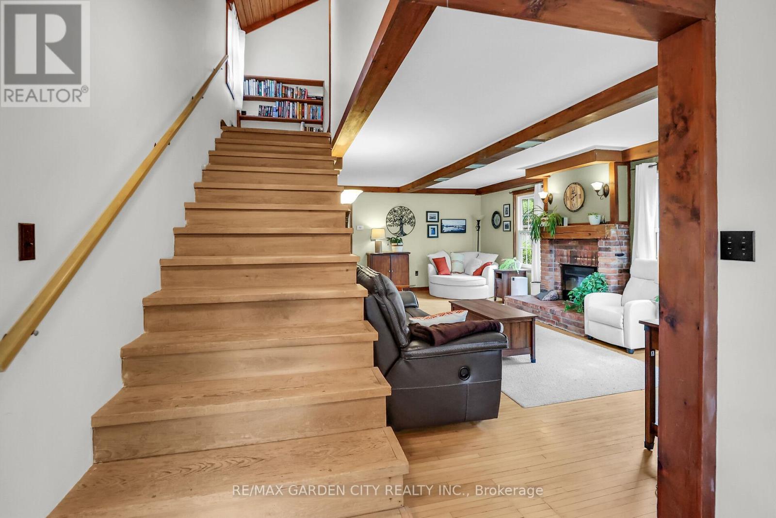 Discover the warmth, character, and modern comfort of this beautifully maintained 2-storey century home, perfectly situated on a generous lot just minutes from vibrant downtown Grimsby. With more than 100 years of history, this timeless residence seamlessly blends original charm with thoughtful contemporary updates. Step inside to a vaulted entryway accented with rich wood details that continue throughout the home, creating an inviting and cohesive feel. The main floor offers an open-concept kitchen and dining area that leads into a cozy year-round sunroom-an ideal spot for morning coffee, quiet evenings, or enjoying views of the backyard in every season. The spacious living room, anchored by a classic fireplace, adds even more warmth and character. Upstairs, you'll find two bedrooms, including a large primary retreat complete with a walk-in closet and an impressive bathroom featuring a walk-in shower and ample room to unwind. Outside, the property shines with multiple decks, a relaxing hot tub, and a charming pergola-perfect for summer entertaining or peaceful outdoor escapes. The detached double garage (24' x 22' exterior) includes a workshop for hobbyists and a loft for additional storage or creative use. With its walkable location near shops, restaurants, and parks, this unique home offers the very best of Grimsby living. Don't miss your chance to own a beautifully cared-for piece of local history! (id:43681)