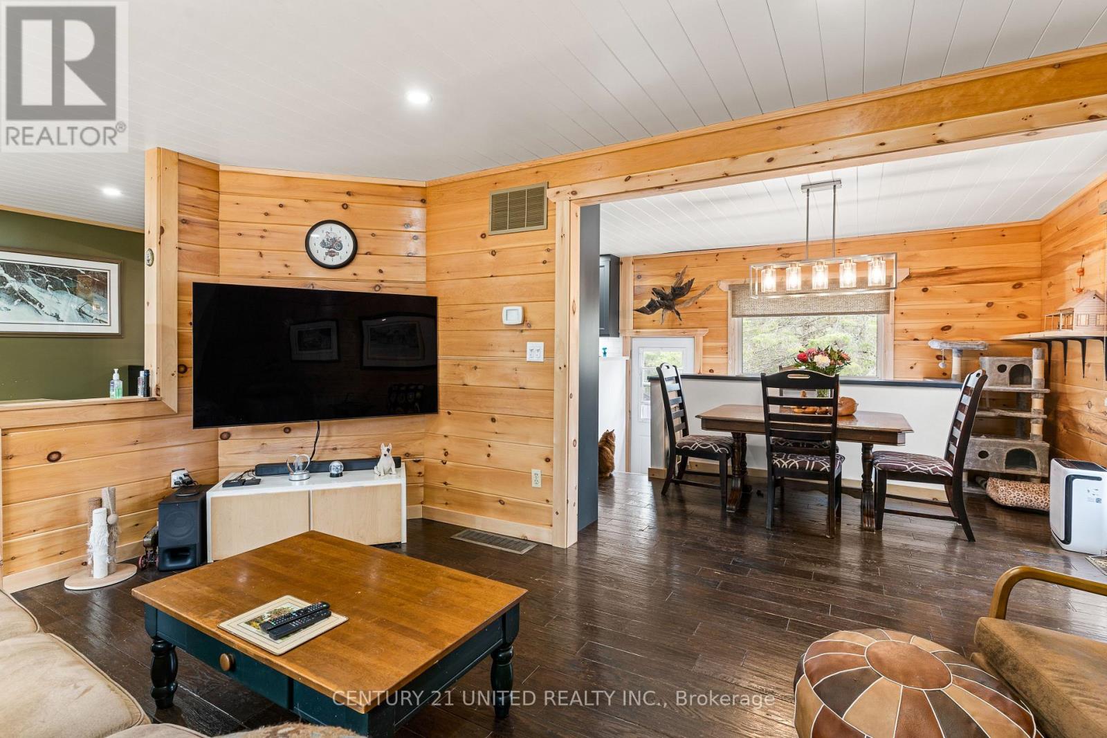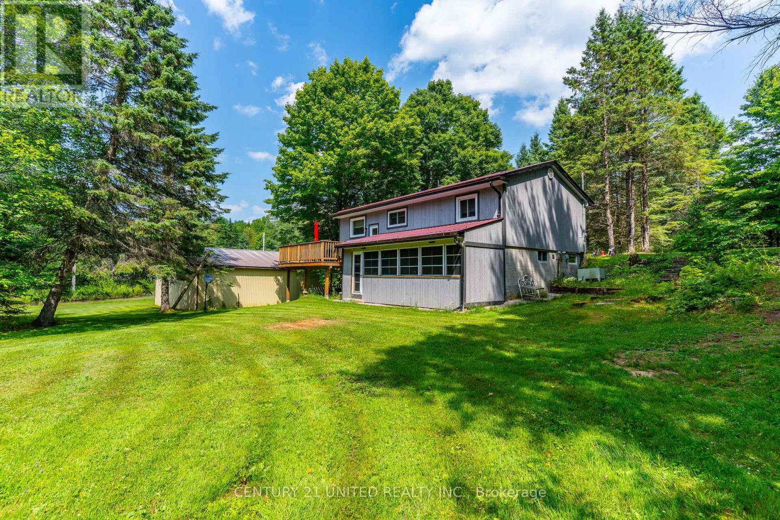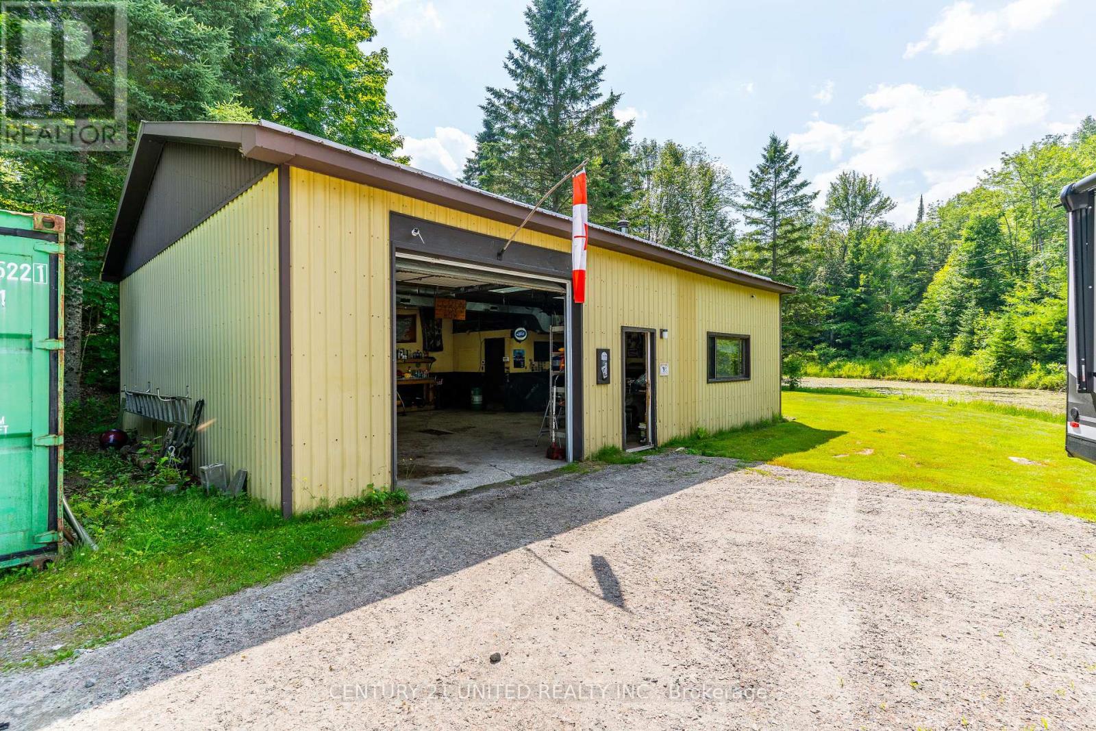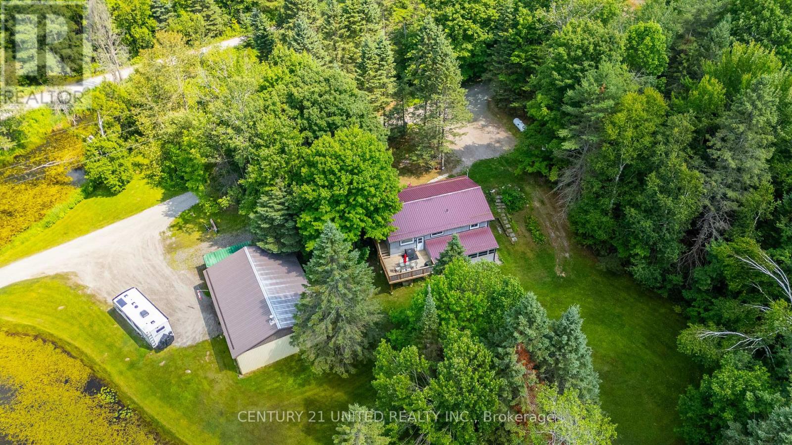 Welcome to your Highlands East escape-where country living meets lake lifestyle. Set on a private 1.37-acre pie-shaped lot, this updated, well-kept 2+1 bedroom bungalow offers deeded access to beautiful Tamarack Lake with a sandy beach perfect for swimming, paddling, and enjoying summer days. Inside, the home offers a bright and comfortable layout with an inviting living room, spacious dining area, updated kitchen, two main floor bedrooms, and a full bath. The finished walkout lower level adds excellent flexibility with a family room, third bedroom, laundry area, powder room, and kitchenette-ideal for guests, extended family, or potential in-law setup. Outside is where this property truly shines. Surrounded by trees and nature, the grounds feature a private pond, deck, porch, and plenty of room to roam. The impressive detached 4-car garage is perfect for hobbyists, contractors, toy storage, or anyone needing serious workspace, with additional parking for guests and recreational vehicles. Enjoy year-round living with propane forced air heat, central air, drilled well, septic system, and a wired-in Generac generator that powers the home during outages. High-speed internet is available, and the property is conveniently located a short drive to Haliburton with endless nearby lakes, trails, and recreation. A rare opportunity to enjoy privacy, space, and deeded lake access-all in one affordable package. (id:43681)