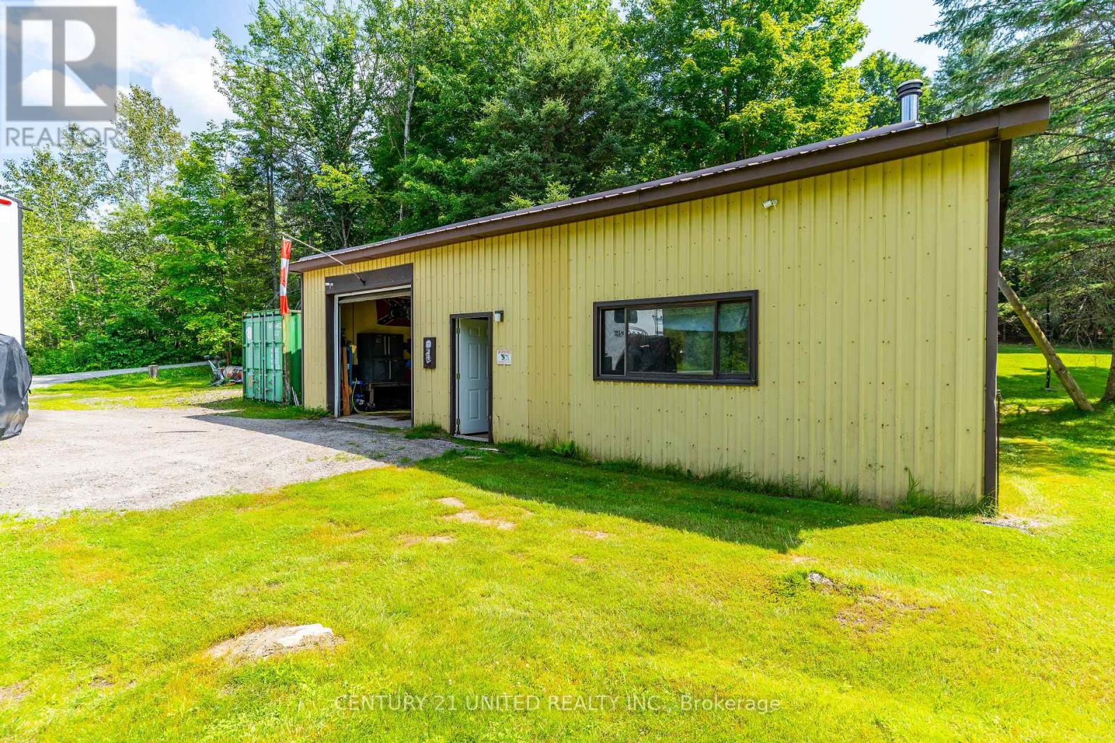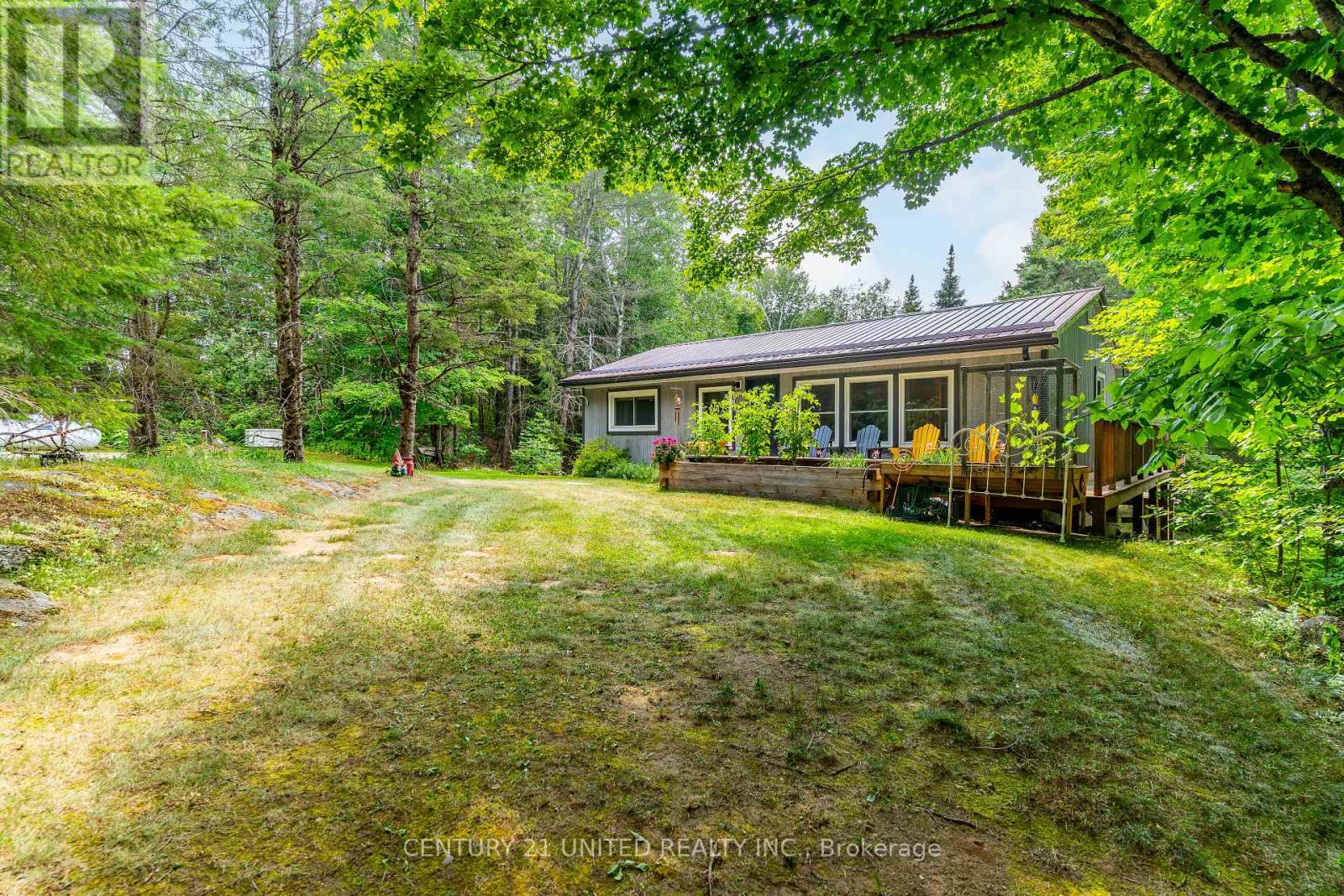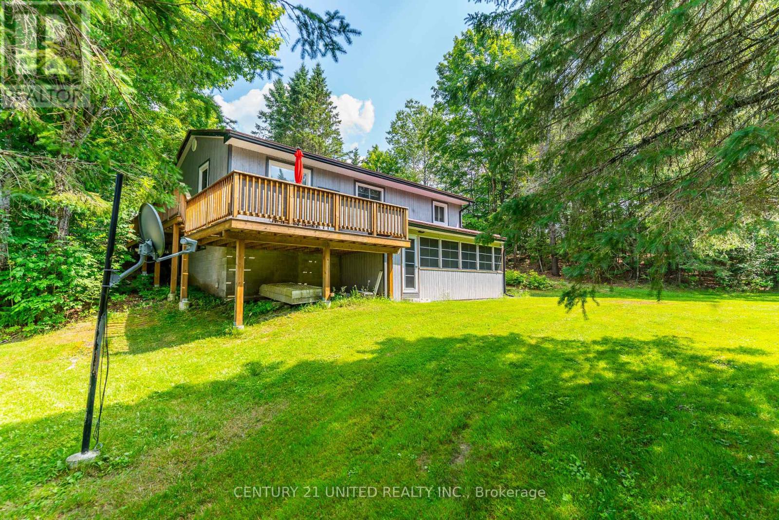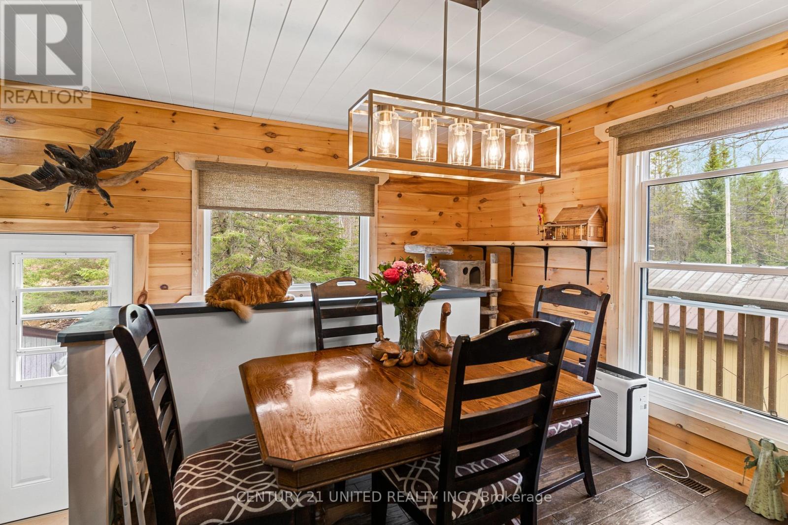 Welcome to your Highlands East escape-where country living meets lake lifestyle. Set on a private 1.37-acre pie-shaped lot, this updated, well-kept 2+1 bedroom bungalow offers deeded access to beautiful Tamarack Lake with a sandy beach perfect for swimming, paddling, and enjoying summer days. Inside, the home offers a bright and comfortable layout with an inviting living room, spacious dining area, updated kitchen, two main floor bedrooms, and a full bath. The finished walkout lower level adds excellent flexibility with a family room, third bedroom, laundry area, powder room, and kitchenette-ideal for guests, extended family, or potential in-law setup. Outside is where this property truly shines. Surrounded by trees and nature, the grounds feature a private pond, deck, porch, and plenty of room to roam. The impressive detached 4-car garage is perfect for hobbyists, contractors, toy storage, or anyone needing serious workspace, with additional parking for guests and recreational vehicles. Enjoy year-round living with propane forced air heat, central air, drilled well, septic system, and a wired-in Generac generator that powers the home during outages. High-speed internet is available, and the property is conveniently located a short drive to Haliburton with endless nearby lakes, trails, and recreation. A rare opportunity to enjoy privacy, space, and deeded lake access-all in one affordable package. (id:43681)