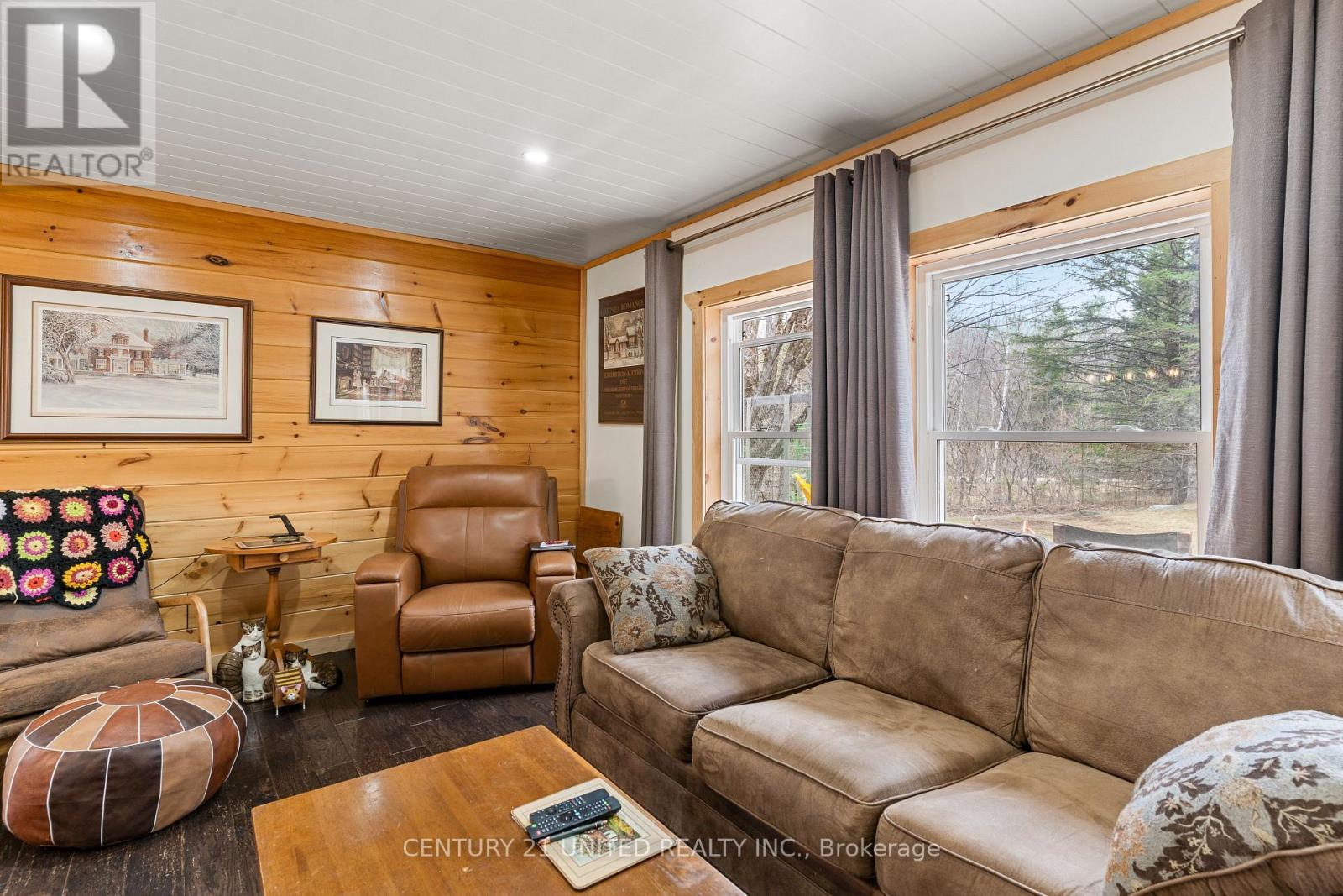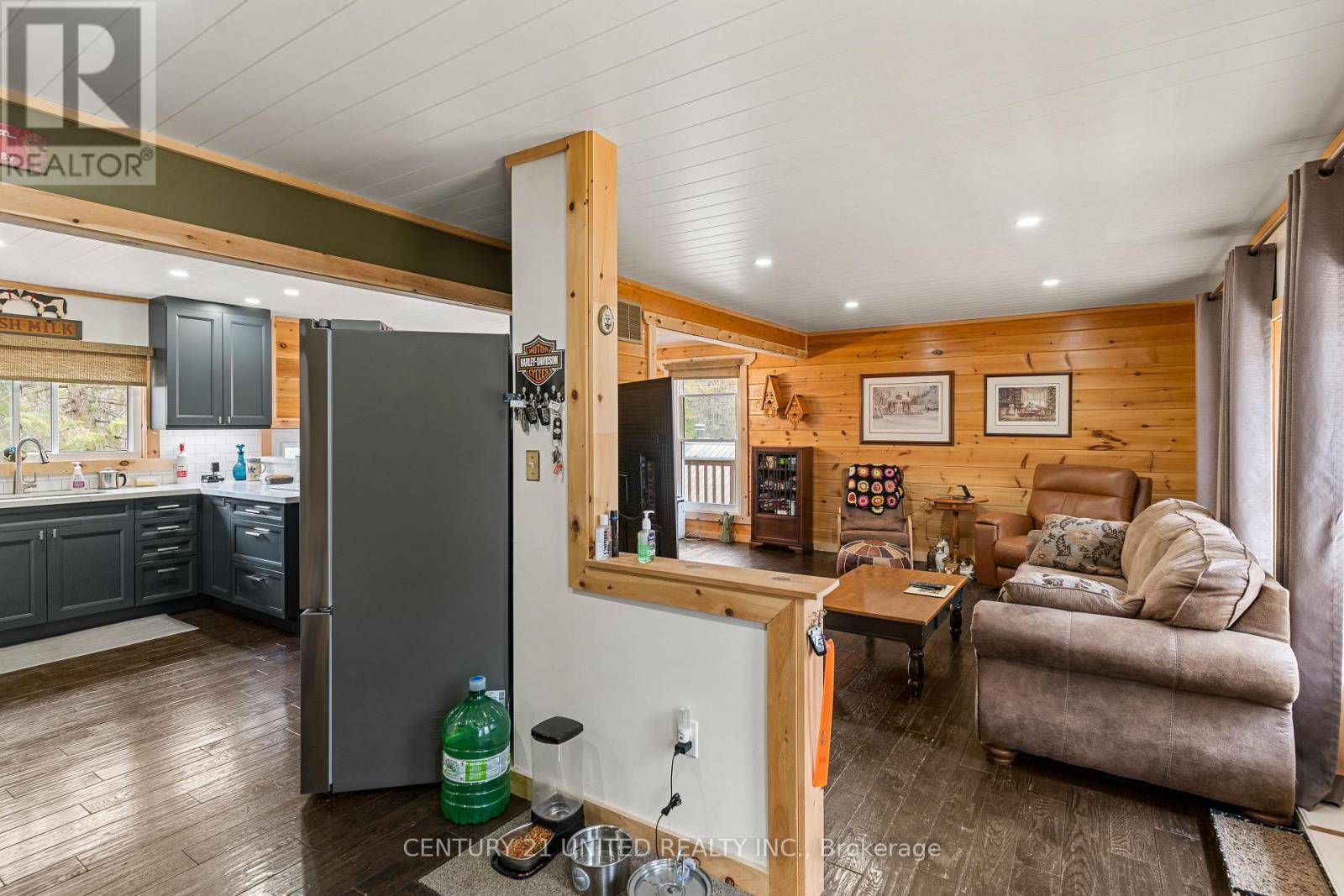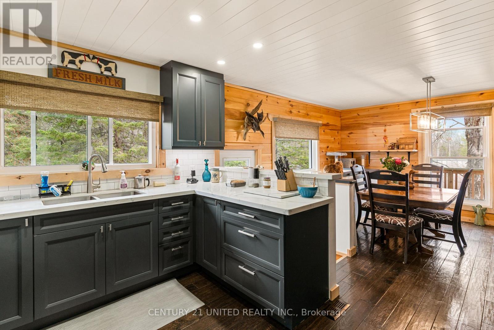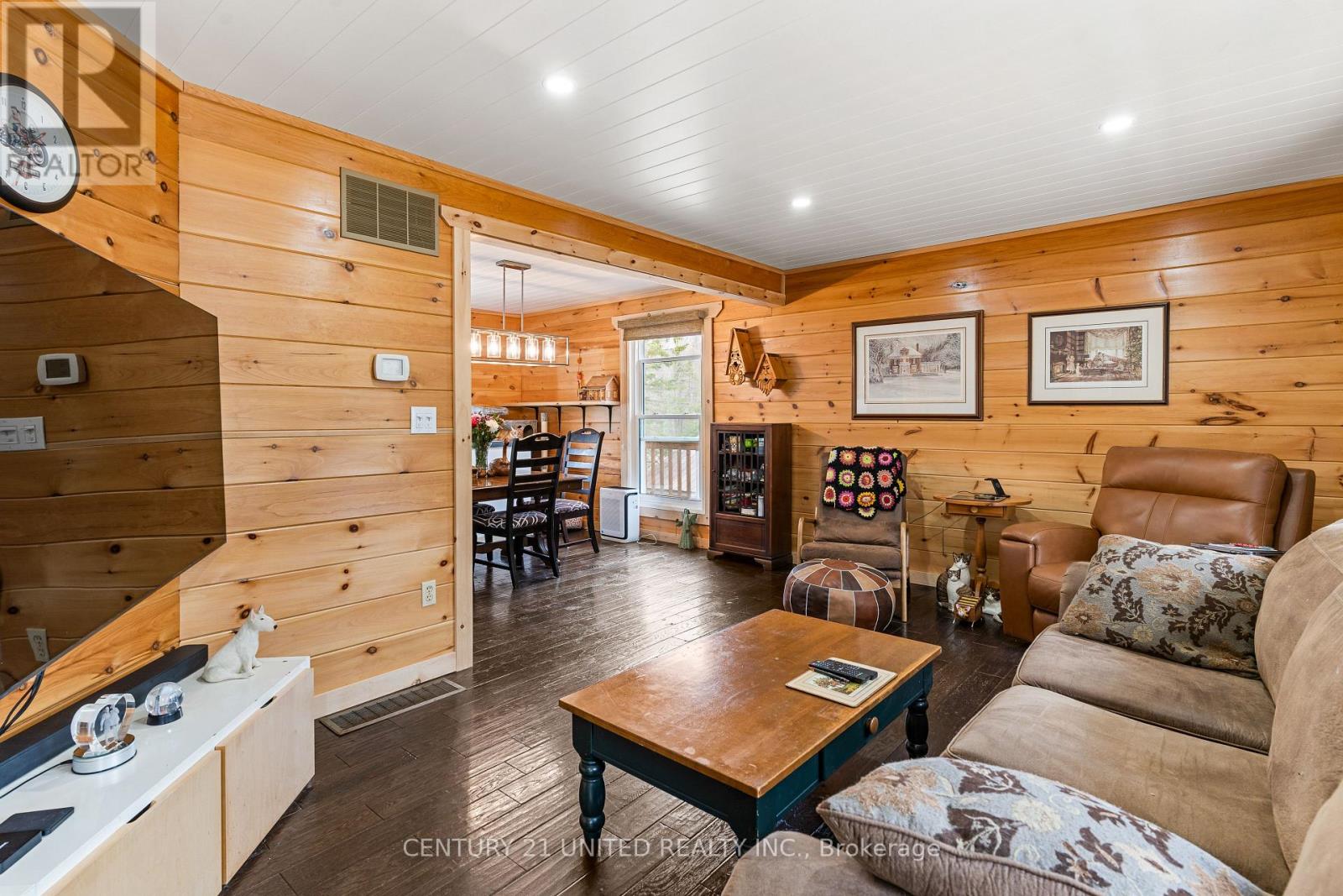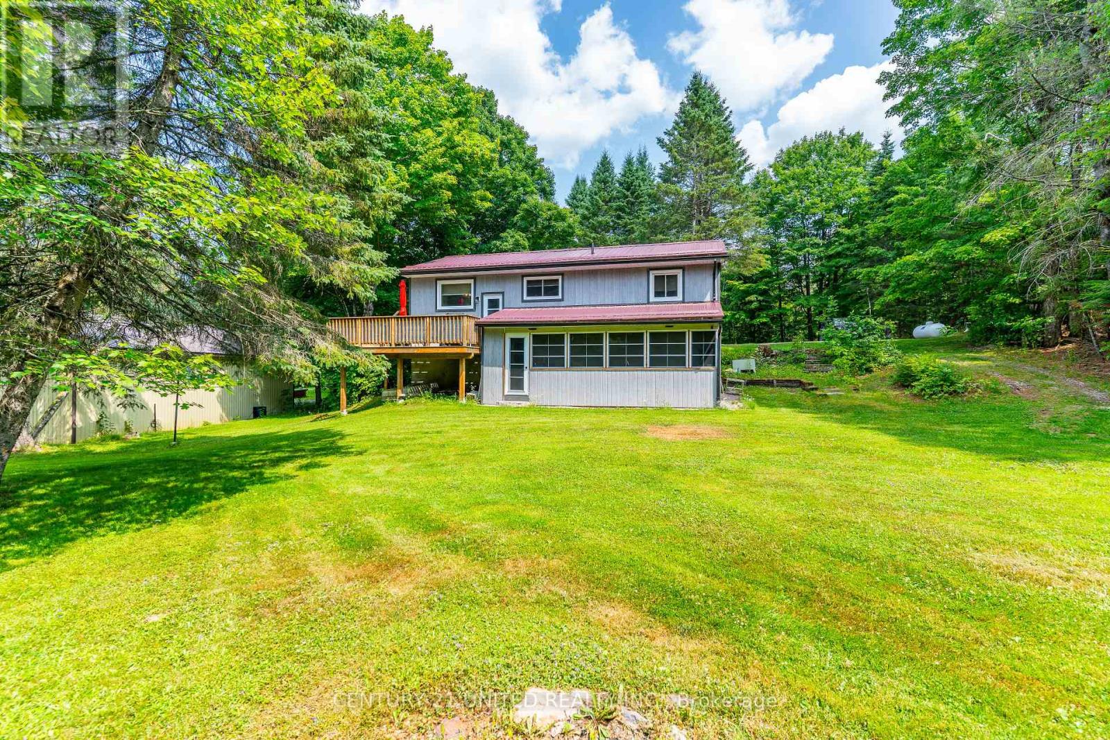 Welcome to your Highlands East escape-where country living meets lake lifestyle. Set on a private 1.37-acre pie-shaped lot, this updated, well-kept 2+1 bedroom bungalow offers deeded access to beautiful Tamarack Lake with a sandy beach perfect for swimming, paddling, and enjoying summer days. Inside, the home offers a bright and comfortable layout with an inviting living room, spacious dining area, updated kitchen, two main floor bedrooms, and a full bath. The finished walkout lower level adds excellent flexibility with a family room, third bedroom, laundry area, powder room, and kitchenette-ideal for guests, extended family, or potential in-law setup. Outside is where this property truly shines. Surrounded by trees and nature, the grounds feature a private pond, deck, porch, and plenty of room to roam. The impressive detached 4-car garage is perfect for hobbyists, contractors, toy storage, or anyone needing serious workspace, with additional parking for guests and recreational vehicles. Enjoy year-round living with propane forced air heat, central air, drilled well, septic system, and a wired-in Generac generator that powers the home during outages. High-speed internet is available, and the property is conveniently located a short drive to Haliburton with endless nearby lakes, trails, and recreation. A rare opportunity to enjoy privacy, space, and deeded lake access-all in one affordable package. (id:43681)