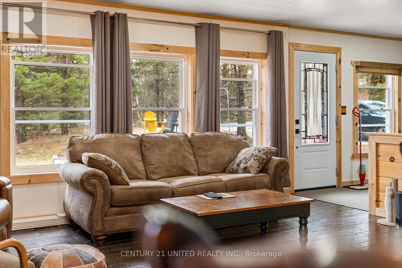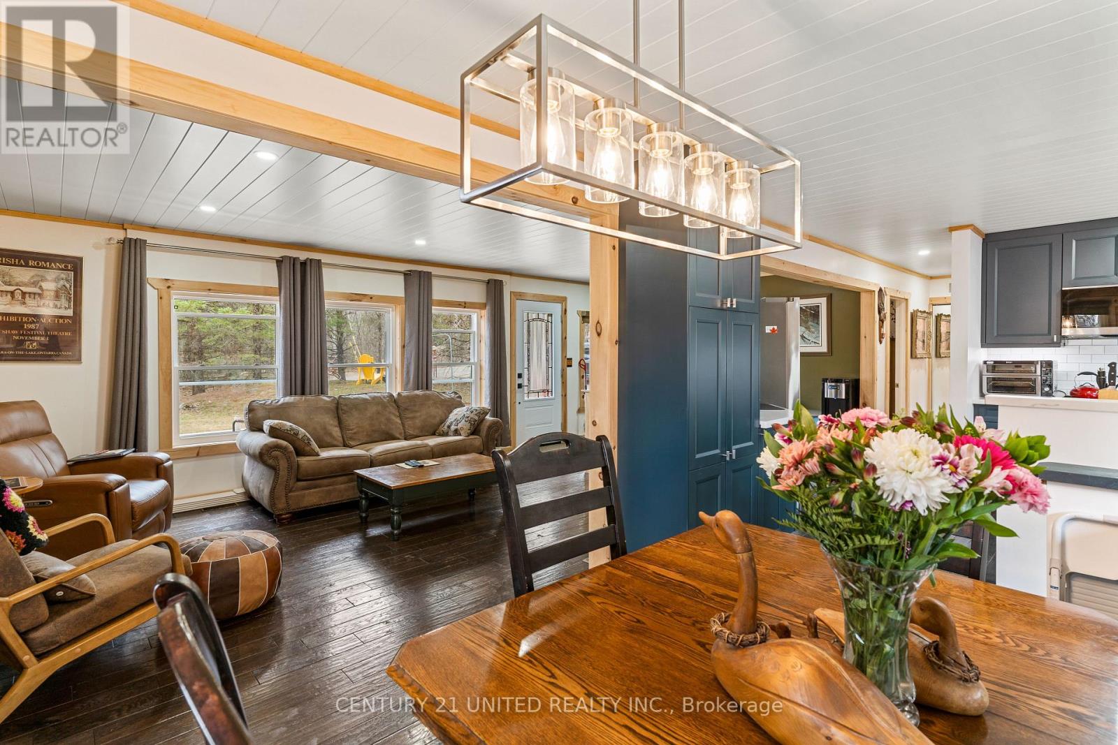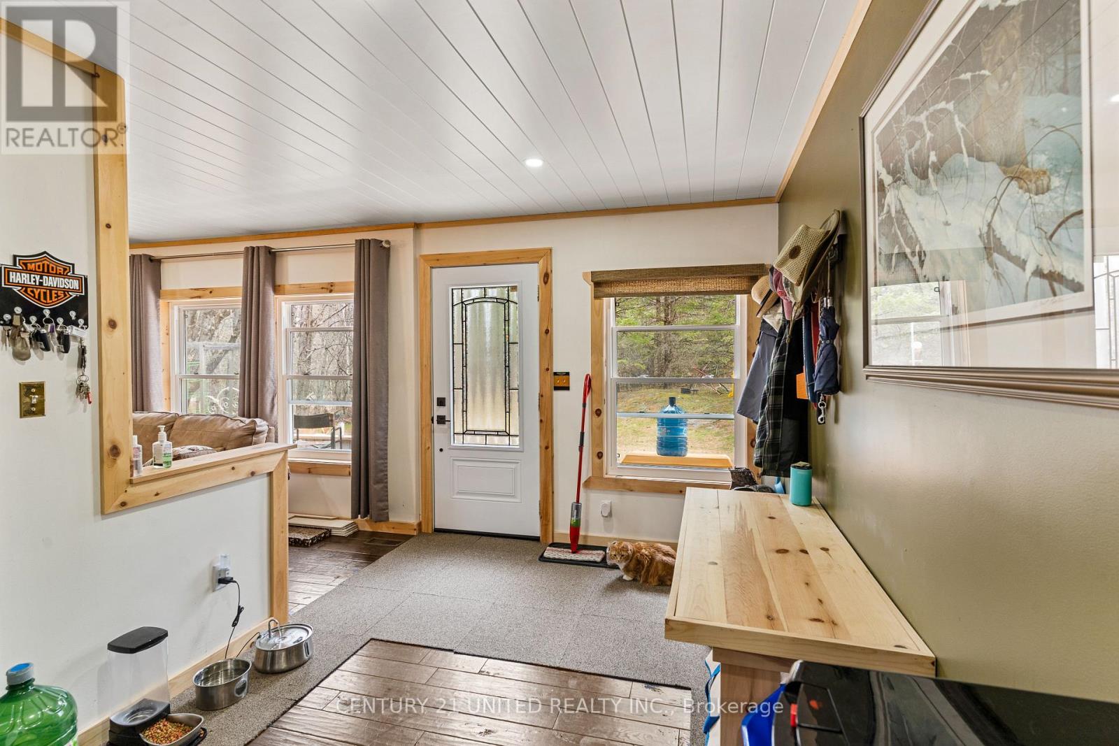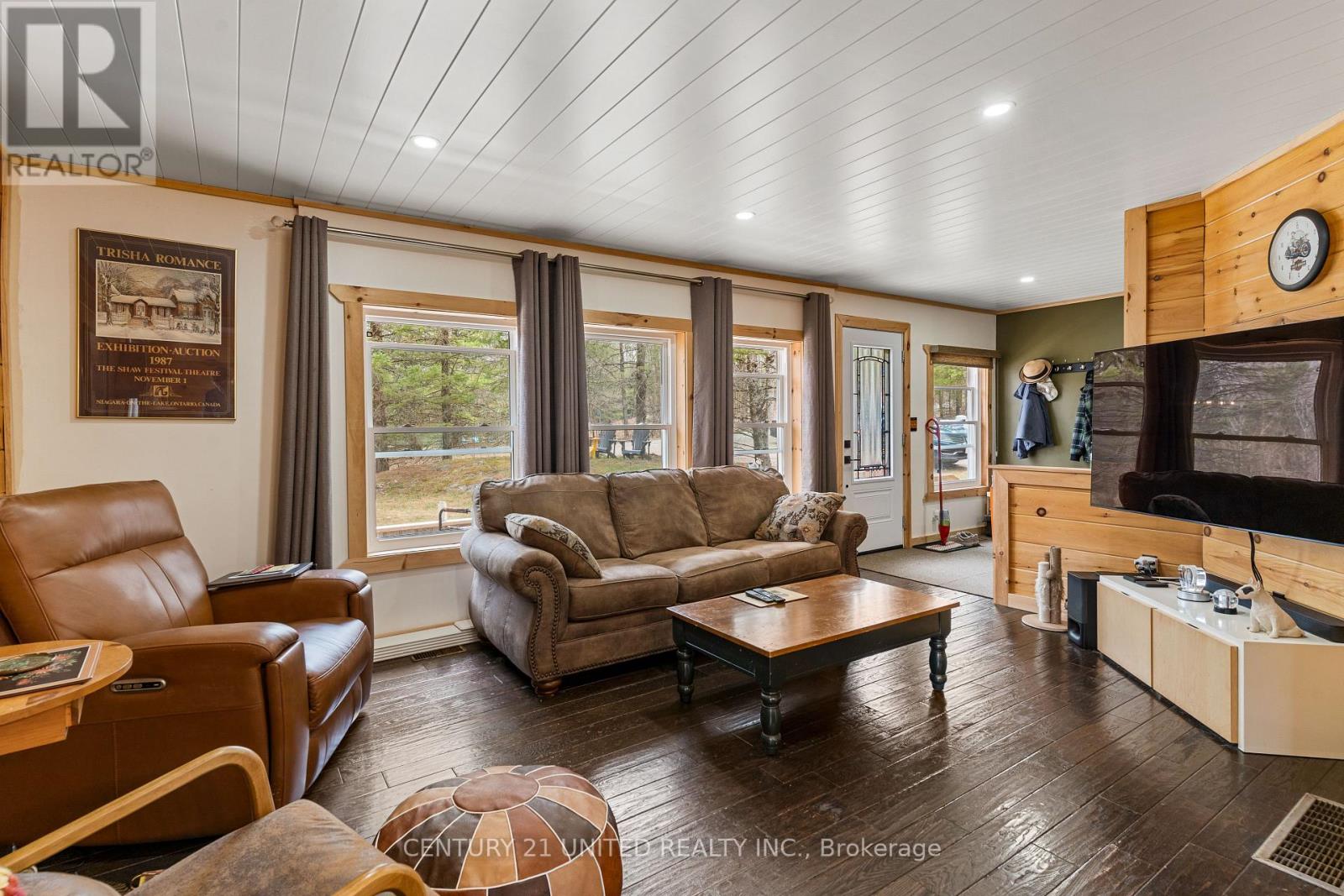 Welcome to your Highlands East escape-where country living meets lake lifestyle. Set on a private 1.37-acre pie-shaped lot, this updated, well-kept 2+1 bedroom bungalow offers deeded access to beautiful Tamarack Lake with a sandy beach perfect for swimming, paddling, and enjoying summer days. Inside, the home offers a bright and comfortable layout with an inviting living room, spacious dining area, updated kitchen, two main floor bedrooms, and a full bath. The finished walkout lower level adds excellent flexibility with a family room, third bedroom, laundry area, powder room, and kitchenette-ideal for guests, extended family, or potential in-law setup. Outside is where this property truly shines. Surrounded by trees and nature, the grounds feature a private pond, deck, porch, and plenty of room to roam. The impressive detached 4-car garage is perfect for hobbyists, contractors, toy storage, or anyone needing serious workspace, with additional parking for guests and recreational vehicles. Enjoy year-round living with propane forced air heat, central air, drilled well, septic system, and a wired-in Generac generator that powers the home during outages. High-speed internet is available, and the property is conveniently located a short drive to Haliburton with endless nearby lakes, trails, and recreation. A rare opportunity to enjoy privacy, space, and deeded lake access-all in one affordable package. (id:43681)