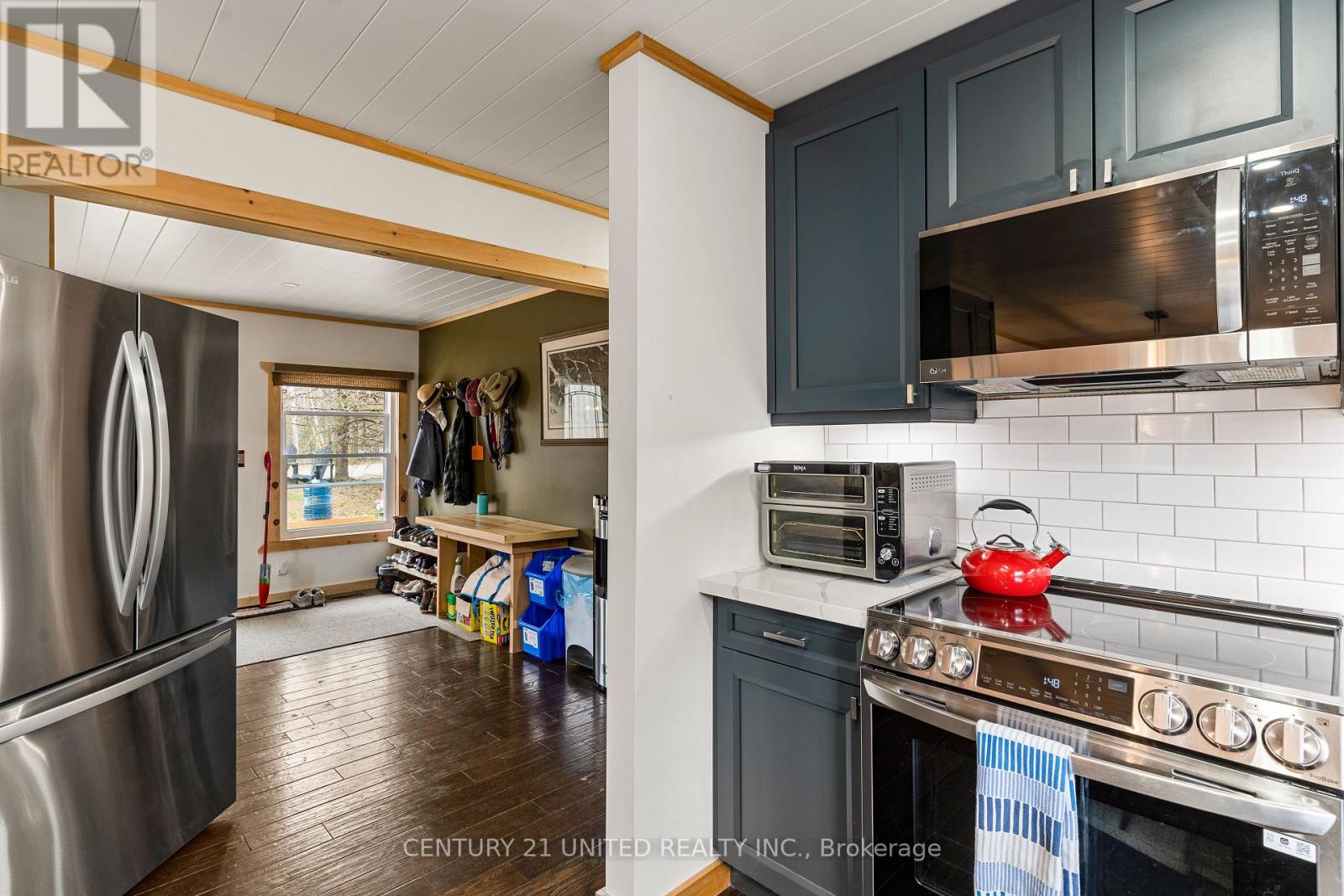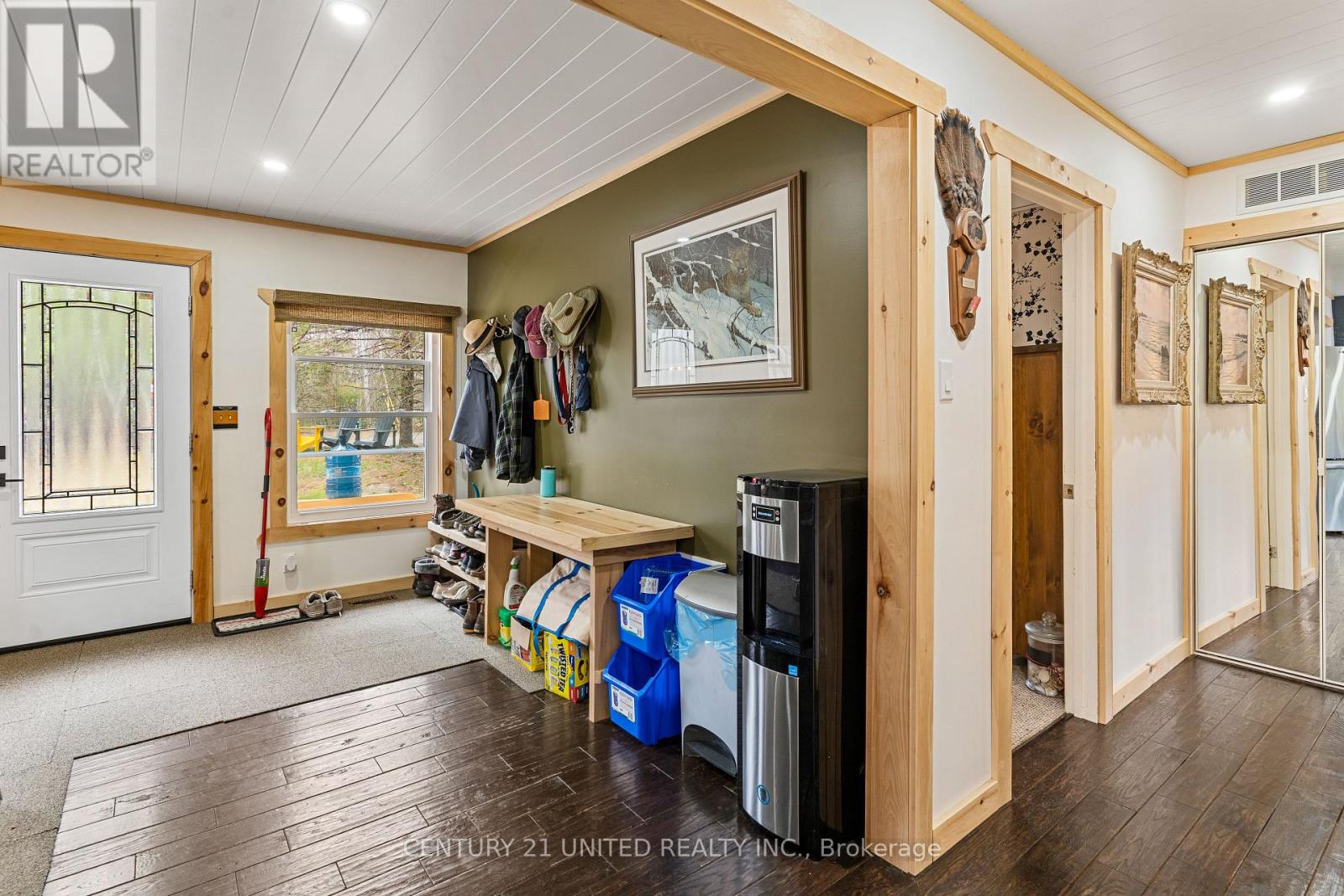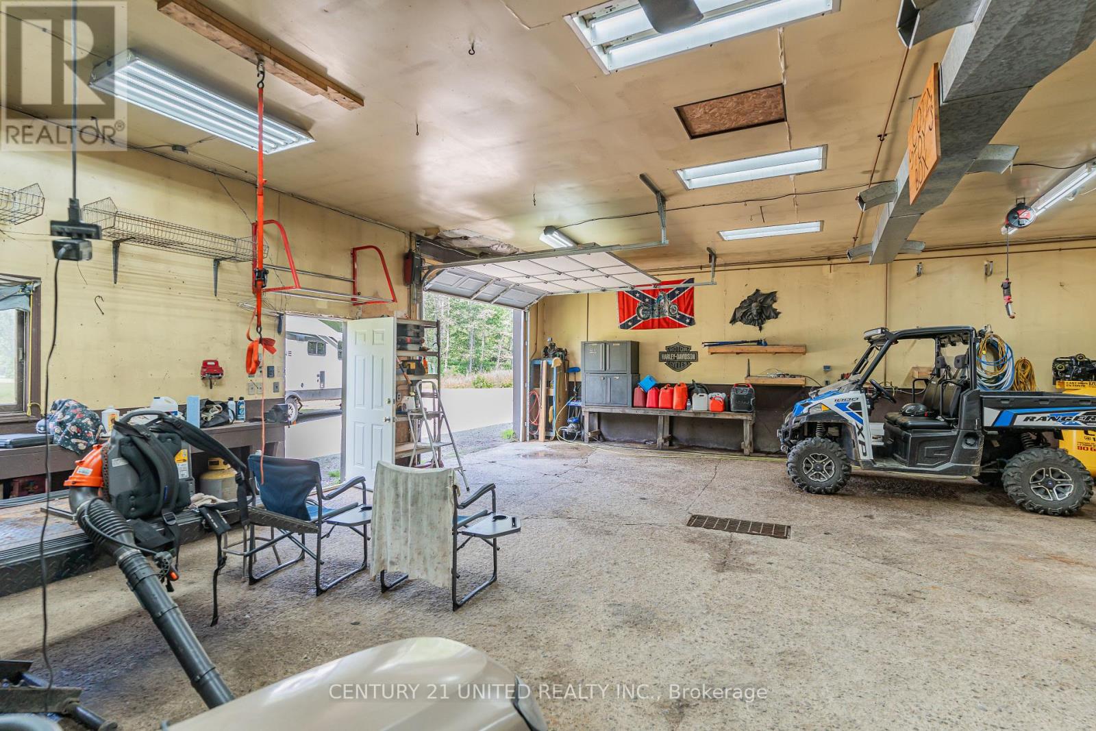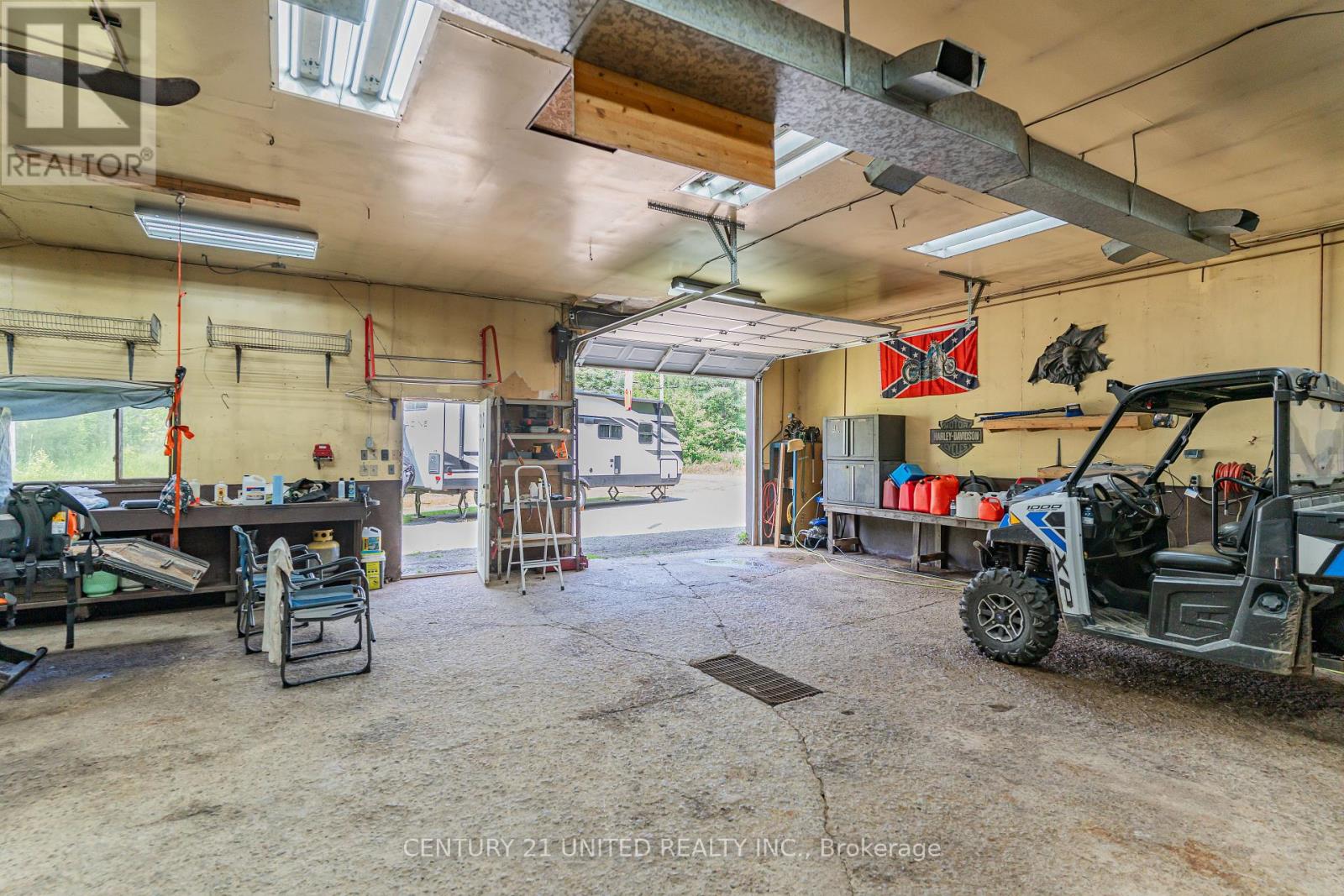 Welcome to your Highlands East escape-where country living meets lake lifestyle. Set on a private 1.37-acre pie-shaped lot, this updated, well-kept 2+1 bedroom bungalow offers deeded access to beautiful Tamarack Lake with a sandy beach perfect for swimming, paddling, and enjoying summer days. Inside, the home offers a bright and comfortable layout with an inviting living room, spacious dining area, updated kitchen, two main floor bedrooms, and a full bath. The finished walkout lower level adds excellent flexibility with a family room, third bedroom, laundry area, powder room, and kitchenette-ideal for guests, extended family, or potential in-law setup. Outside is where this property truly shines. Surrounded by trees and nature, the grounds feature a private pond, deck, porch, and plenty of room to roam. The impressive detached 4-car garage is perfect for hobbyists, contractors, toy storage, or anyone needing serious workspace, with additional parking for guests and recreational vehicles. Enjoy year-round living with propane forced air heat, central air, drilled well, septic system, and a wired-in Generac generator that powers the home during outages. High-speed internet is available, and the property is conveniently located a short drive to Haliburton with endless nearby lakes, trails, and recreation. A rare opportunity to enjoy privacy, space, and deeded lake access-all in one affordable package. (id:43681)