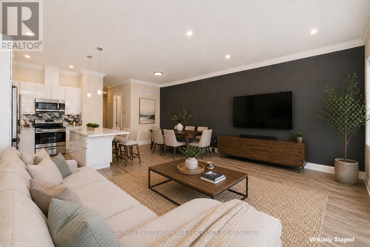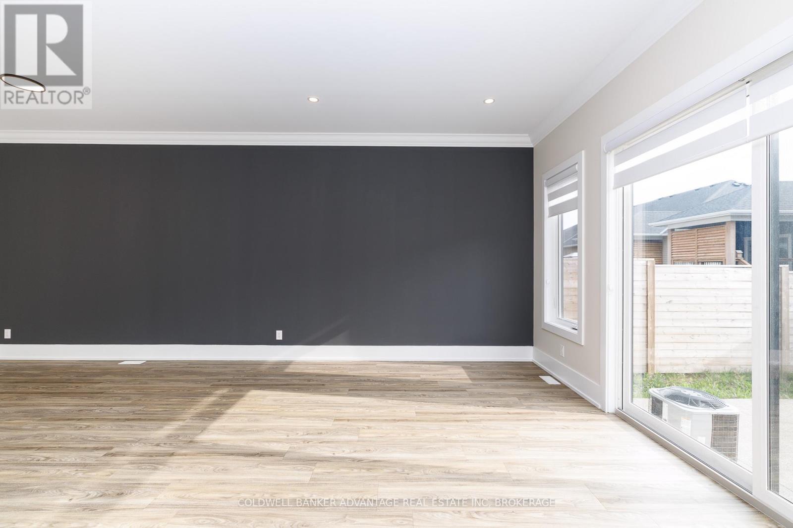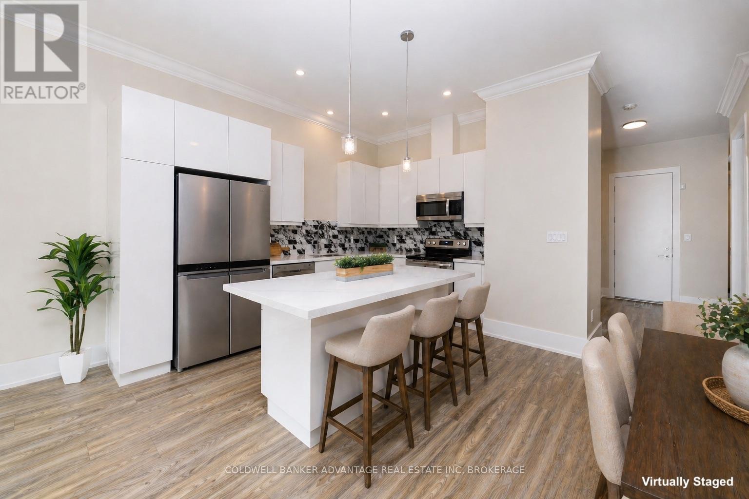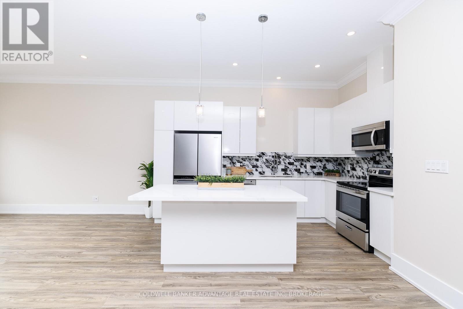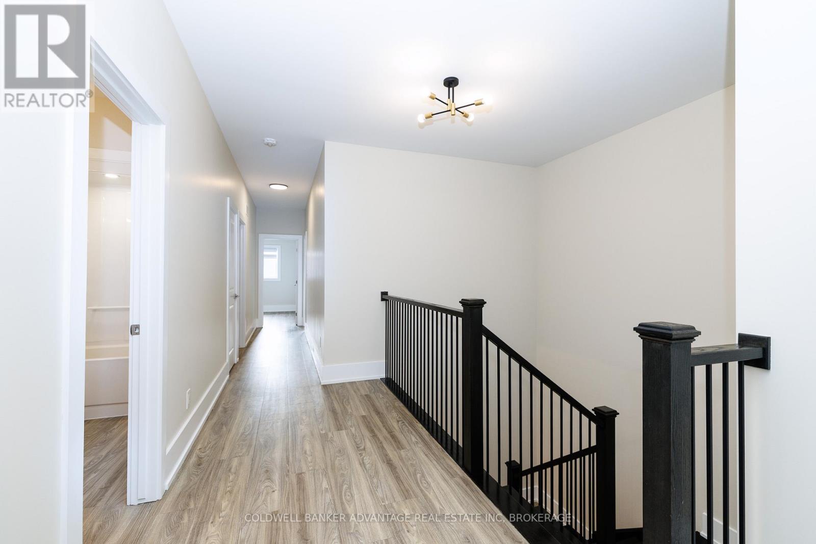 Impressive freehold end-unit townhome with a single attached garage and soaring ceilings, offering over 2,000 sq ft of beautifully finished living space in the highly sought-after Hansler Heights neighbourhood. With its abundance of natural light, this home delivers a true detached like feel. The main floor is designed for modern living, featuring a bright open concept layout centred around a stylish kitchen with quartz countertops, a large island, contemporary cabinetry, and a sleek backsplash. Upgraded finishes throughout include durable vinyl plank flooring, crown moulding, an iron spindle staircase. Enjoy impressive 10 foot ceilings on the main level and 9 foot ceilings upstairs, creating a spacious and airy atmosphere. The upper level offers four generously sized bedrooms, each with ample closet space. The primary suite features a walk-in closet and a well-appointed 4-piece ensuite. Added convenience comes with second floor laundry and an additional full 4-piece bathroom. The basement offers excellent future potential with high ceilings, egress windows, and a separate exterior entrance, ideal for an in-law suite or income generating opportunity.Step outside to a fully fenced backyard, perfect for relaxing or entertaining. Located close to parks, schools, shopping, and everyday amenities, with quick access to Highway 406 for an easy commute. (id:43681)