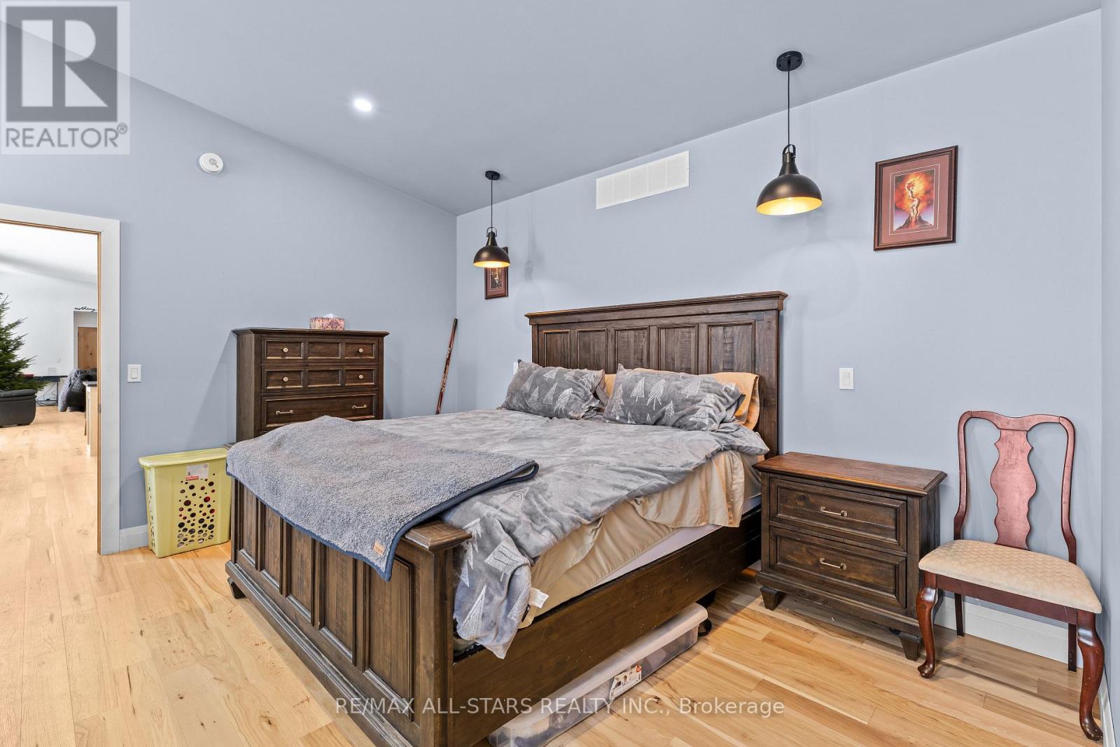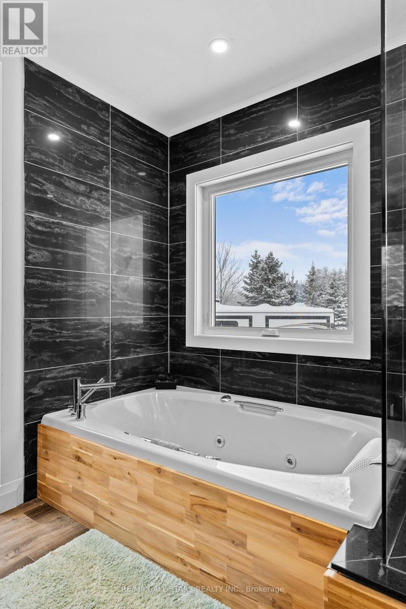 Beautifully built in 2023, this modern bungalow offers stylish living and a detached 1.5-car garage. Step into the welcoming front foyer, where heated tile floors extend seamlessly into the kitchen for added comfort and luxury. The bright living room features a cozy propane fireplace, creating a warm and inviting space to relax. The open-concept kitchen and dining area are perfect for entertaining, complete with a sleek island, ample counter space. The main floor also includes a convenient laundry room, a 2-piece bath, and a spacious primary bedroom with a walk-in closet and a luxurious 5-piece en-suite featuring a soaker tub. The fully finished walkout basement provides exceptional additional living space, offering a large recreation room, a utility room, two generous bedrooms-each with its own walk-in closet-and a 3-piece bath. Outdoors, enjoy a large deck overlooking the above-ground pool, built-in BBQ, fire pit, and a charming chicken coop. Located close to ATV trails, this property is ideal for outdoor enthusiasts seeking both comfort and adventure. (id:43681)