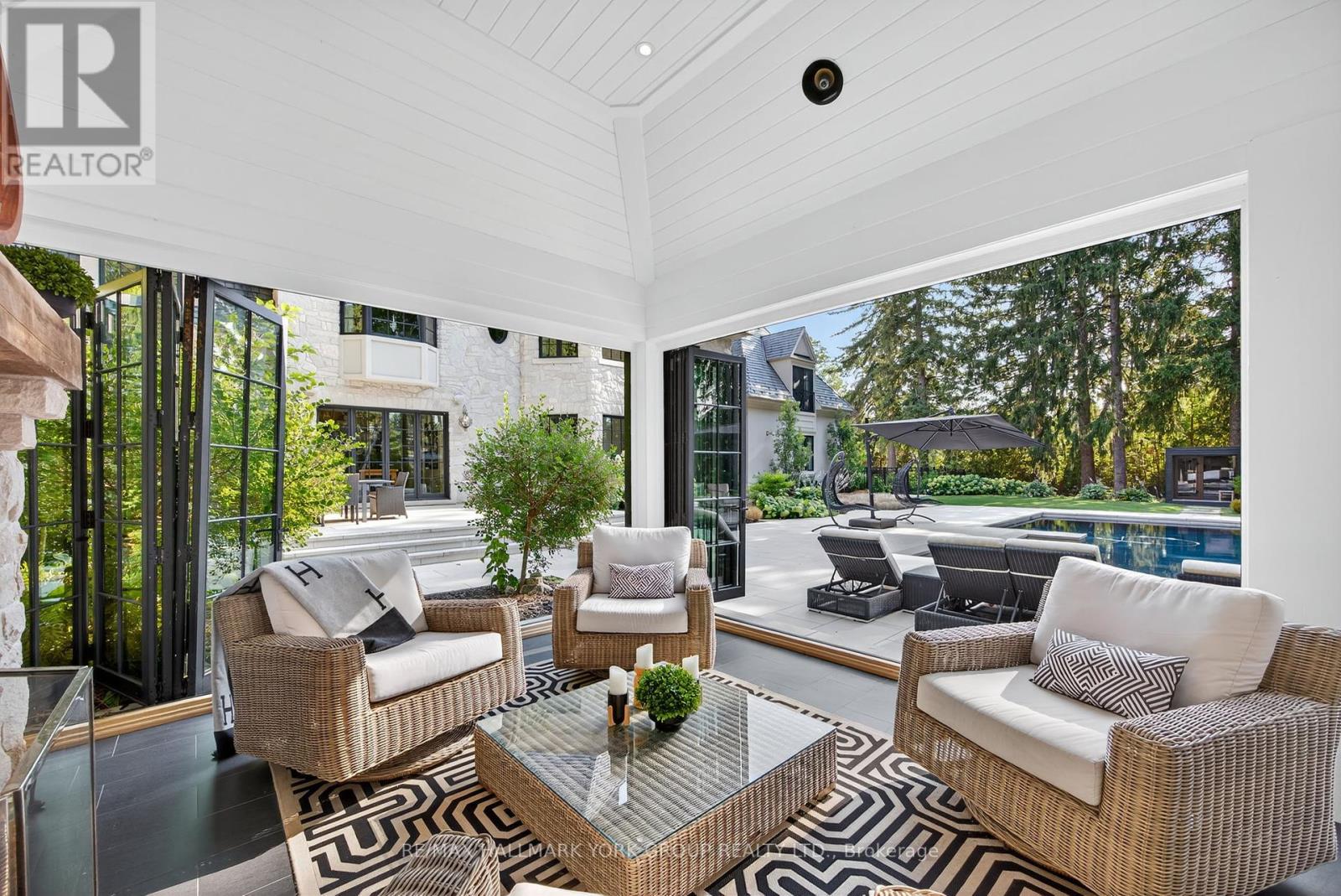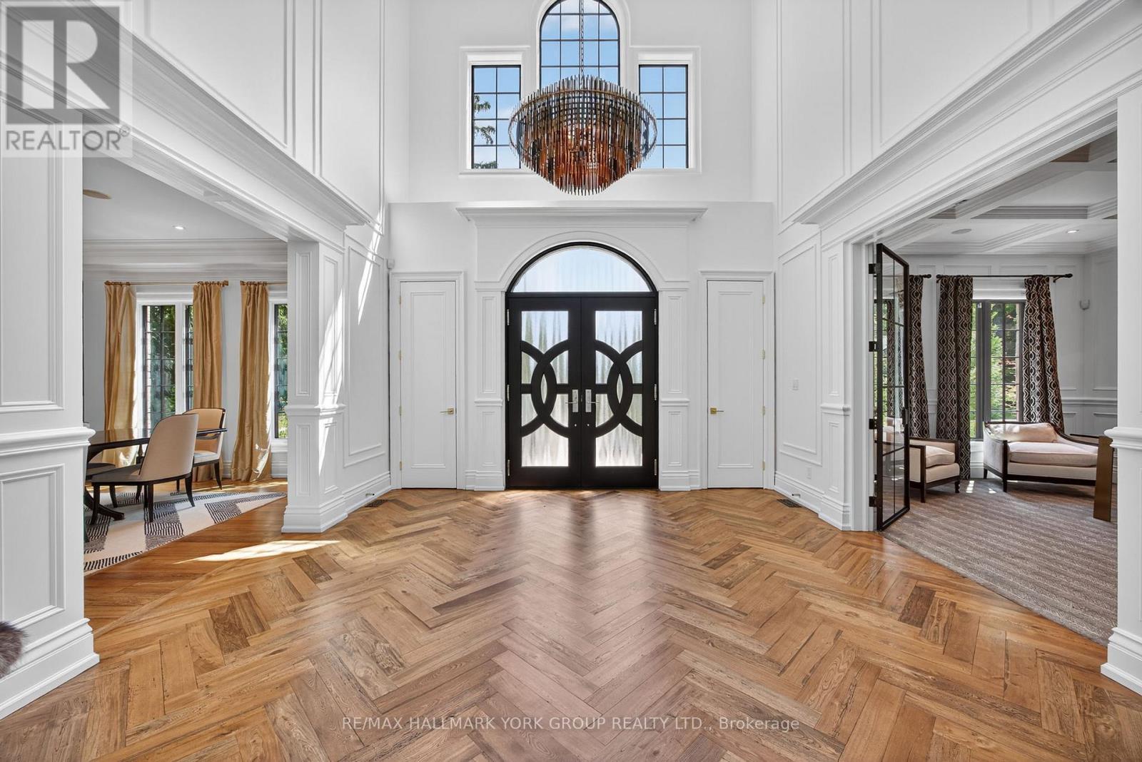 An Iconic Estate on Prestigious Kennedy Street West. Set on 1.18 private acres in the heart of Old Aurora, this one-of-a-kind residence embodies refined elegance and modern glamour. Behind its timeless façade, interiors are curated with a designers eye, wide-plank custom elm hardwoods, exquisite chandeliers, and architectural ceiling heights that flood the home with natural light. At the centre, the show-stopping Cameo Kitchen blends luxury and function with bespoke cabinetry, professional-grade appliances, and statement finishes worthy of a magazine spread. Formal and casual spaces alike are anchored by multiple fireplaces, creating warmth and sophistication throughout. The upper level boasts four bedrooms, highlighted by a lavish primary suite with a custom walk-in dressing room and spa-inspired ensuite retreat. On the lower level, two additional bedrooms, a dramatic stone fireplace, a wet bar designed as a secondary kitchen, and a private gym extend the homes lifestyle experience. Outdoors, the grounds transform into a resort-worthy escape: a glistening pool framed by multiple terraces, a designer outdoor kitchen, a custom designed cabana with retractable doors for seamless indoor-outdoor entertaining, floor to ceiling stone fireplace, 2 pc ensuite, wet bar and a stand-alone sauna that elevates relaxation to art form. A four-car garage with handcrafted wood doors, lead in to from a custom mudroom with walnut floor to ceiling cabinetry, completes this rare offering. This is more than a home, it is a statement of prestige, privacy, and unparalleled design in one of Auroras most coveted enclaves. (id:43681)