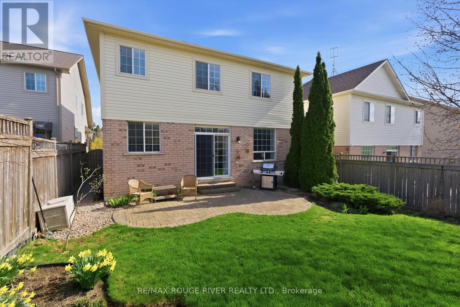 Welcome to this beautifully updated home offering privacy, style, and functional living space throughout. With no neighbours behind and backing directly onto a school, this property provides a peaceful and open backyard setting. An interlocking front entryway leads to the double door entrance, opening into a bright, welcoming foyer that sets the tone for the home. The main floor showcases new laminate flooring throughout, creating a seamless and modern feel. The kitchen has been beautifully updated to blend style and functionality, featuring elegant quartz countertops, a modern backsplash, a convenient pantry for added storage and a centre island with breakfast bar that provides additional seating. A walkout to the patio seamlessly extends your living area outdoors, making it ideal for casual meals, morning coffee, or hosting family and friends. The family room is warm and inviting with a fireplace and large window overlooking the backyard, offering plenty of natural light. Separate living and dining rooms provide additional space for hosting, with the dining room highlighted by elegant French doors, a feature wall and a large window. Upstairs, the spacious primary bedroom features a walk-in closet and an updated four piece ensuite complete with a double vanity and stunning curb-less walk-in shower. Additional bedrooms are well-sized with ample closet space, including a fourth bedroom with its own three piece ensuite, ideal for guests or extended family. A convenient upper level laundry room adds everyday ease. The unfinished basement offers a blank canvas, ready for your personal touch and future customization to suit your needs. Step outside to a fully fenced backyard complete with an interlocking patio, offering a private and low maintenance outdoor space ideal for relaxing or entertaining. Located in a family-friendly neighbourhood close to schools, parks, and everyday amenities, this home offers comfort, convenience, and a great setting for growing families. (id:43681)
