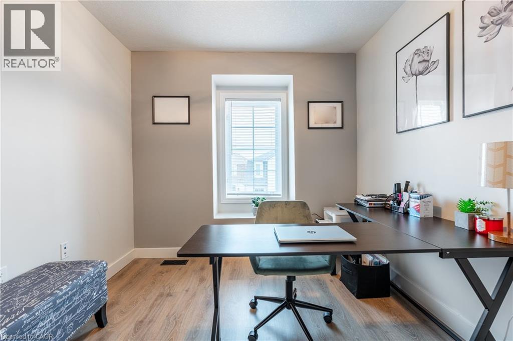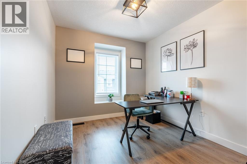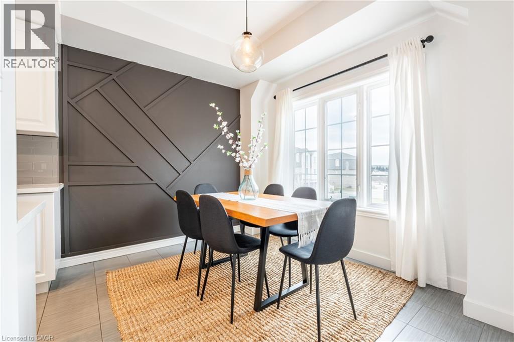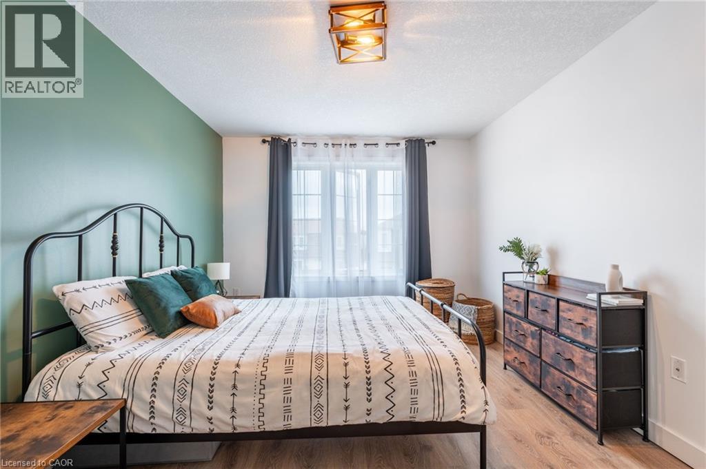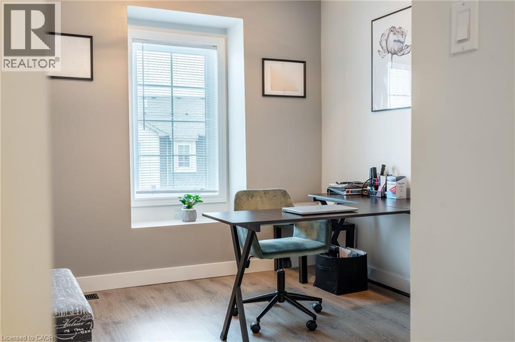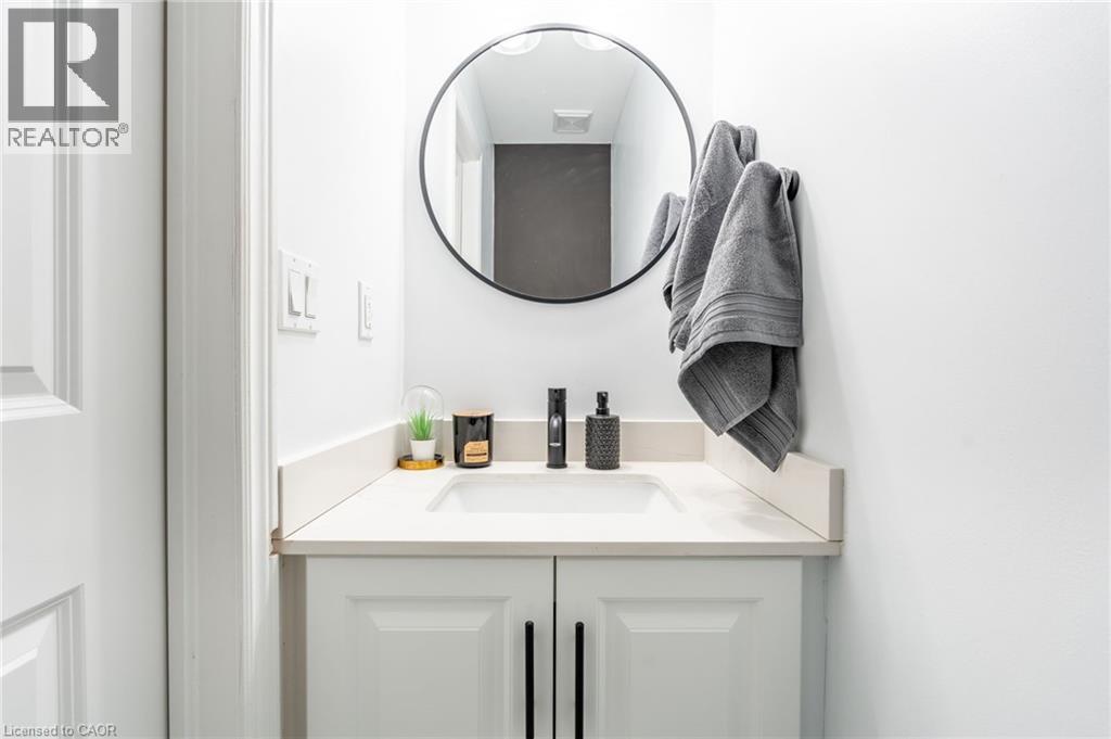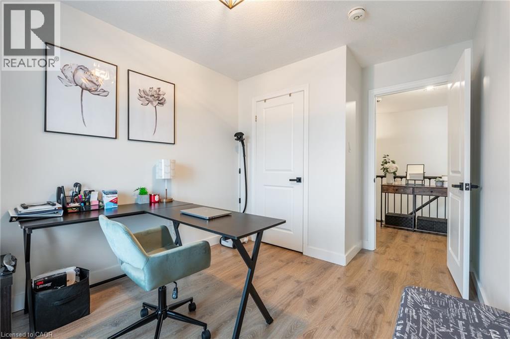Feel immediately at home. This thoughtfully designed entryway sets the tone with its charcoal accent wall and bright natural light streaming through flanking windows. Cool-toned tile flooring flows underfoot, while a built-in nook offers the perfect spot to drop your keys and settle in. Every detail speaks to the care and attention invested in this Stoney Creek gem. Laminate floors stretch across this sun-filled living space, creating an open canvas for your daily life. The built-in media niche with its contrasting accent wall becomes a natural gathering point, while sculptural pendant lighting adds character overhead. Balcony access invites fresh air and natural light to flow freely, making this the kind of space where you'll actually want to spend your evenings unwinding. The dining room transforms ordinary meals into occasions worth savouring. The accent wall with geometric panelling creates an intimate backdrop, while expansive windows frame neighbourhood views and flood the space with daylight. Positioned perfectly between kitchen and windows, this spot becomes the heart of your home—where morning coffee tastes better and dinner conversations last longer. Stunning kitchen delivers everything you need without the fuss. Crisp white shaker cabinets pair with stainless steel appliances and gleaming quartz countertops, while grey subway tile backsplash adds subtle sophistication. Modern black hardware and thoughtful recessed lighting make meal prep a pleasure, and the open connection to your dining area means you're never cooking alone. Your primary bedroom wraps you in calm with its soothing sage green accent wall and warm laminate underfoot. The walk-in closet keeps everything organized and out of sight, while layered window treatments let you control the light exactly how you want it. Clean, functional, and thoughtfully updated bathrooms make daily routines feel less like chores. This one stands out from the rest - not to be overlooked! (id:43681)