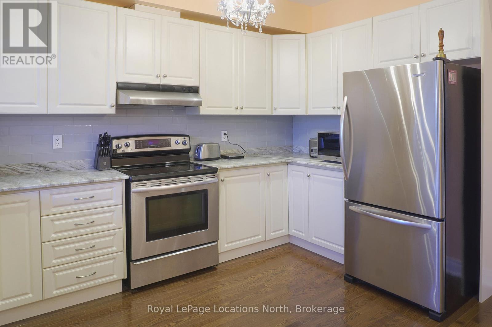 Spacious 3-bed Townhome with high ceilings and double garage ( 24'10" x 17' 2") has room for 2 cars plus tools and storage. parking for 4 cars plus visitor parking nearby. Total of 1902 st ft finished. New kitchen includes granite counter tops. Walk-out to balcony from kitchen, with views of ever-changing sunsets. Living room has a gas fireplace and an outdoor balcony. Primary bedroom has en-suite and walk in closet. The ground level bedroom can be converted to a home office. Hardwood floors on 2nd level. Smoke and pet-free home. Gas hook up for BBQ . Stonebridge by the Bay is an active and caring community with a recreational lifestyle and plenty of social activities. Common Elements include shared use of salt water pool, Zen Garden and waterfront beach house. Snow clearing on a private road. Good walk score to nearby services and just a 5 minute walk to Walmart. Easy access to beaches and golf courses. Short drive to Collingwood, Blue Mountain and Barrie. (id:43681)