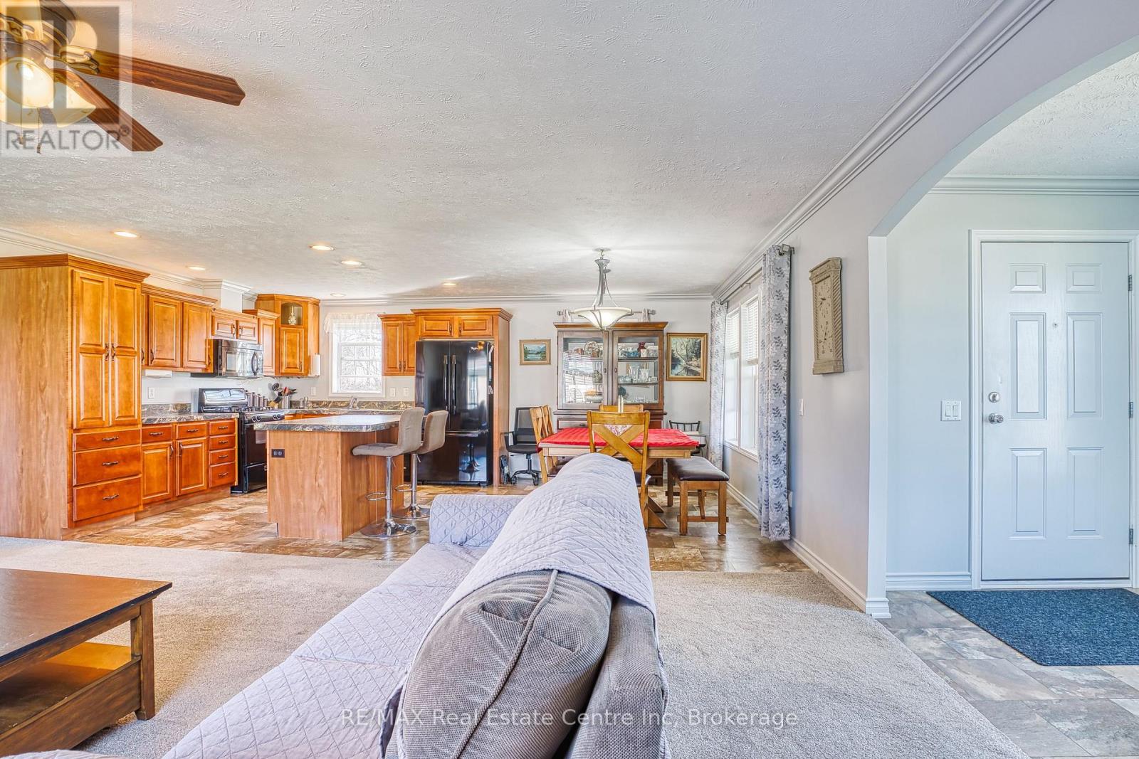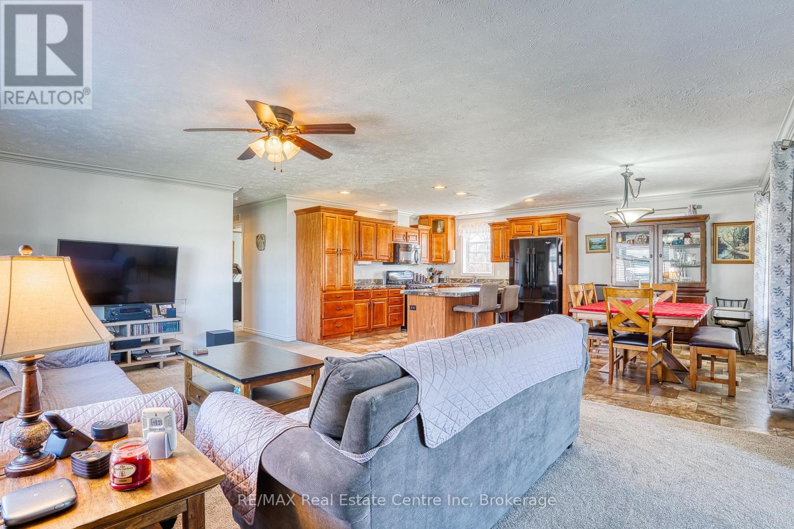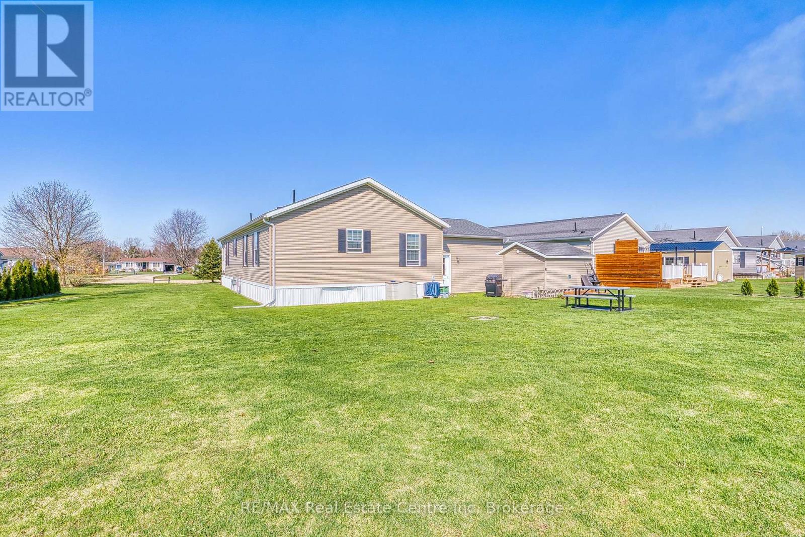 Welcome to this beautifully maintained 2013 built modular home located in the affordable and desirable land lease community of Conestoga Estates. This home offers a bright and spacious open-concept layout featuring a comfortable living and dining area flowing into a large kitchen complete with an island and ample counter and cupboard space-perfect for cooking, entertaining, and everyday living. All appliances are included, making this home truly move-in ready. The home features 2 bedrooms, including a generous primary bedroom with a large walk-in closet and private ensuite. The second bedroom offers his and her closets, and an additional 4-piece bathroom is conveniently located in the hallway. A single attached garage is accessible through the hallway near the laundry/utility room, adding extra convenience and storage. Outside, enjoy a large reverse pie-shaped lot with no neighbours behind, offering extra privacy and space to relax. A great opportunity for affordable living in a welcoming community-don't miss it! (id:43681)