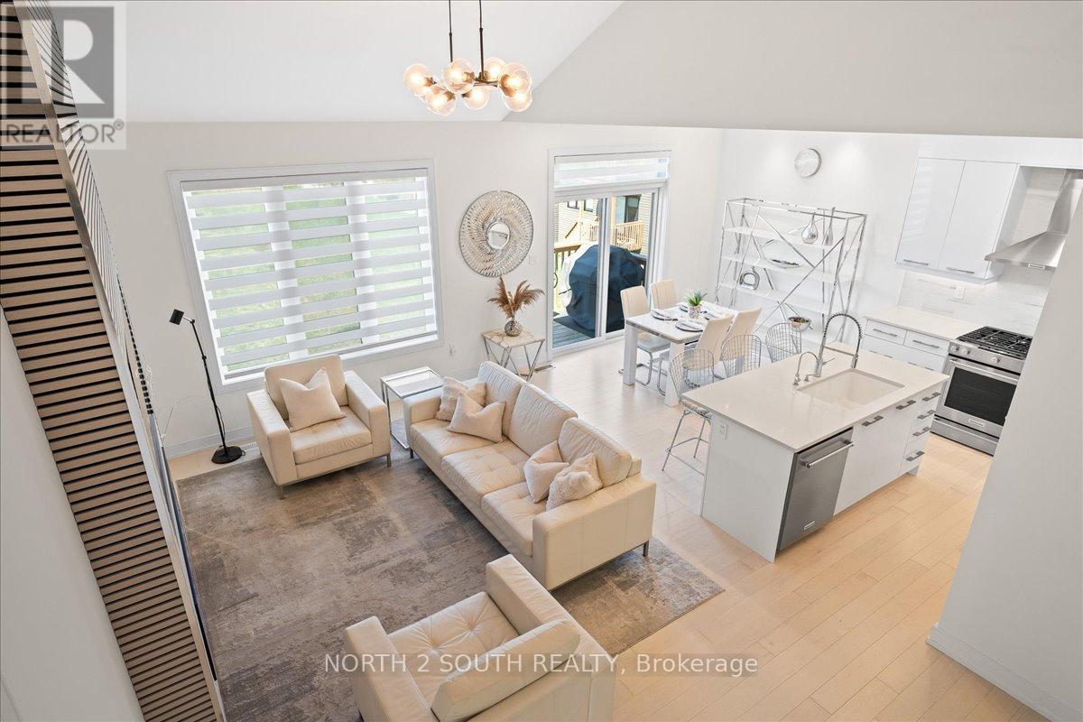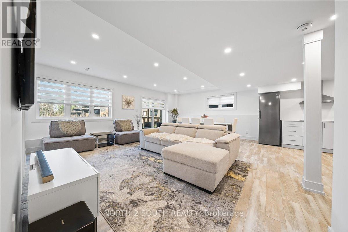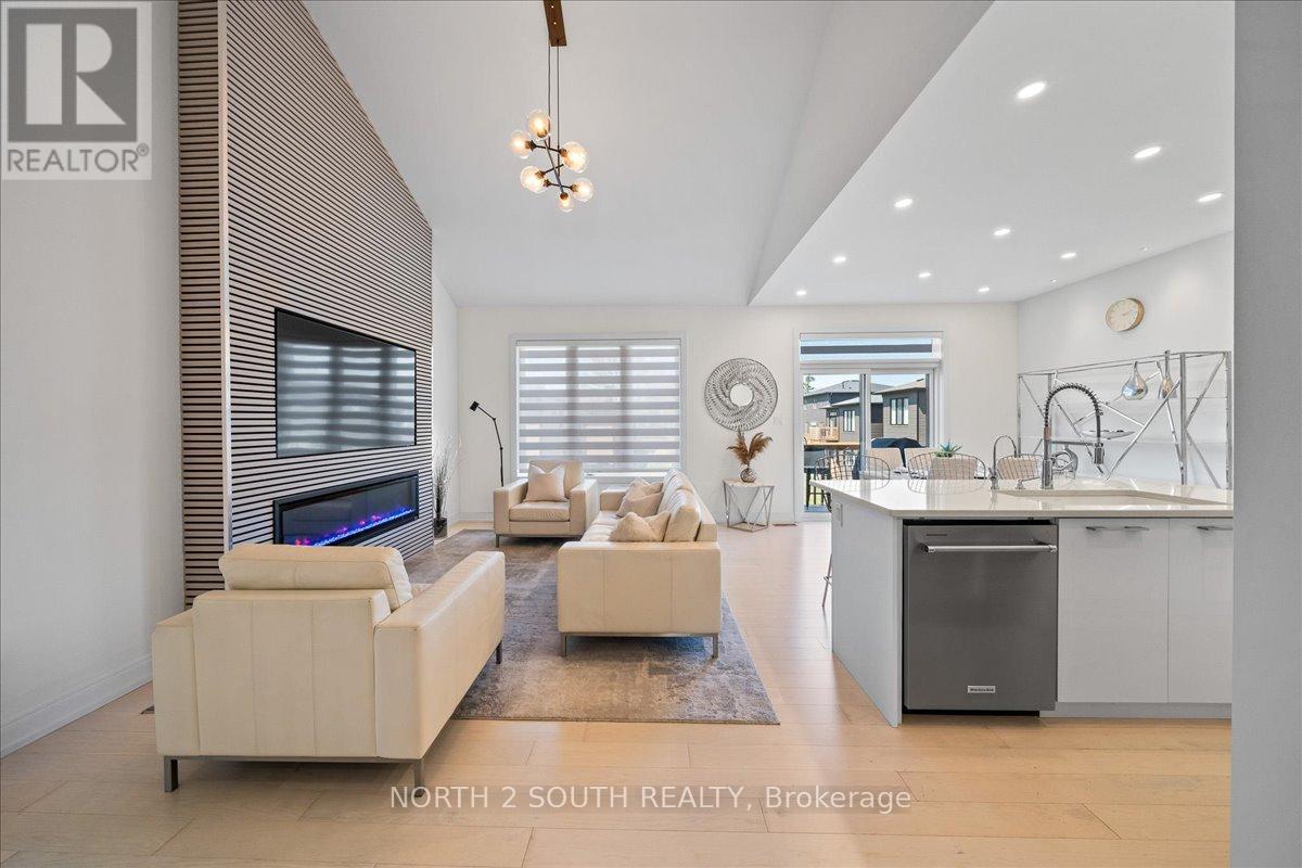 This upgraded bungalow-loft offers a practical layout with well-finished spaces throughout. The main level features a spacious primary bedroom with a 5-piece ensuite-soaker tub, glass shower, double sinks, and a walk-in closet-along with an additional bedroom and a full 4-piece bathroom, ideal for guests or flexible use.The kitchen is modern and functional, equipped with stainless steel appliances (including a gas stove), granite countertops, a large double sink with reverse-osmosis filtration, and extended cabinetry with under-cabinet lighting. It opens into a bright living area with 9-foot sloped ceilings, pot lights, and hardwood flooring. Upstairs, the open loft overlooks the main living space and works well as an office or sitting area, along with two additional bedrooms and a full bathroom.The finished walk-out basement adds flexibility, offering two bedrooms, a 3-piece bathroom, a sauna, storage, and a second kitchen. With direct access to the backyard and rough-in for another laundry, it's well suited for extended family or separate use. Additional features include central vacuum, water softener, security system, EV charger, and Tarion warranty. Located just a 5-minute drive to Beach Area 1. (id:43681)