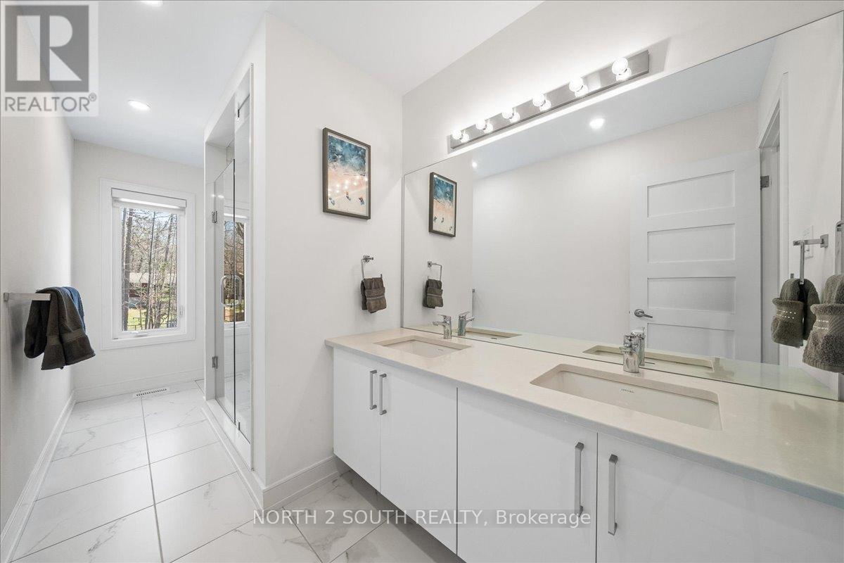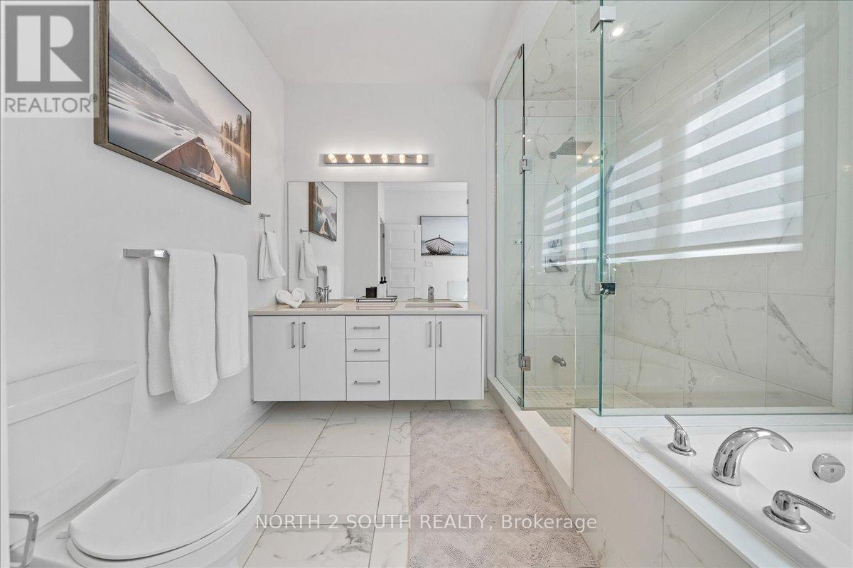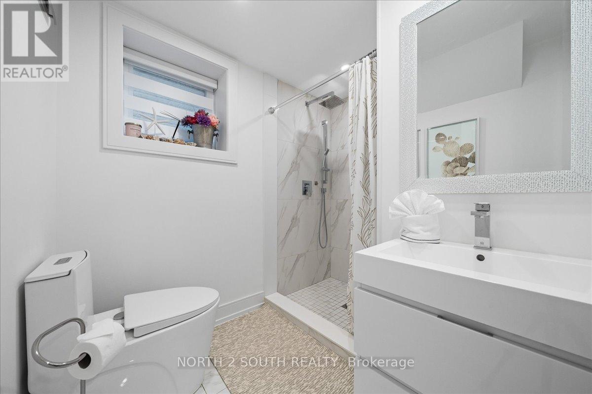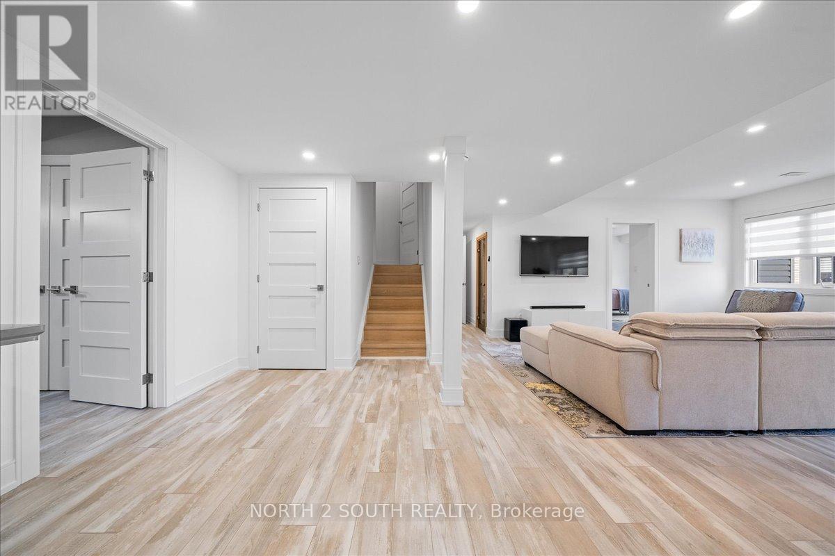 This upgraded bungalow-loft offers a practical layout with well-finished spaces throughout. The main level features a spacious primary bedroom with a 5-piece ensuite-soaker tub, glass shower, double sinks, and a walk-in closet-along with an additional bedroom and a full 4-piece bathroom, ideal for guests or flexible use.The kitchen is modern and functional, equipped with stainless steel appliances (including a gas stove), granite countertops, a large double sink with reverse-osmosis filtration, and extended cabinetry with under-cabinet lighting. It opens into a bright living area with 9-foot sloped ceilings, pot lights, and hardwood flooring. Upstairs, the open loft overlooks the main living space and works well as an office or sitting area, along with two additional bedrooms and a full bathroom.The finished walk-out basement adds flexibility, offering two bedrooms, a 3-piece bathroom, a sauna, storage, and a second kitchen. With direct access to the backyard and rough-in for another laundry, it's well suited for extended family or separate use. Additional features include central vacuum, water softener, security system, EV charger, and Tarion warranty. Located just a 5-minute drive to Beach Area 1. (id:43681)