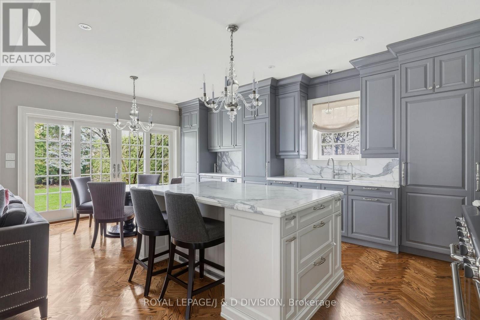 Set on a private lot in Lytton Park, this beautifully renovated 6+1 bedroom, 5-bathroom home blends timeless elegance with thoughtful, modern updates. Sunlight pours through oversized windows while herringbone oak floors lie underfoot. The main floor features a bright, inviting living room with a wood-burning fireplace, a proper dining room that comfortably seats 10, and a stunning chef's kitchen with a marble slate island, Sub-Zero fridge/freezer, Miele speed oven and microwave, Miele dishwasher, an 8-burner Capital Culinarian gas range, custom cabinetry and a large pantry. French doors open from the family room to a private backyard patio - perfect for summer dinners outside. A chic marble powder room completes the level. Upstairs, the 2nd floor offers 3 spacious bedrooms, including a serene primary suite with its own gas fireplace, sitting area, walk-through closet, and a spa-like 5-piece ensuite with a soaker tub overlooking the backyard. One of the bedrooms with fireplace is currently being used as a family room and shares a Jack-and-Jill bathroom with the third bedroom. The 3rd floor adds even more flexibility with 3 additional bedrooms, including an impressive 20-foot-wide front room with a walk-in closet and garden views, plus a beautifully finished 3-pc bathroom with hexagonal marble tile and a custom vanity. Downstairs there's a bright games room (or extra bedroom), a cozy media room for movie nights, a massive laundry room, 4 separate storage rooms - including a cedar-lined closet - and a 3-pc bathroom with an infrared sauna for unwinding at the end of the day. The backyard is a peaceful, private escape, and the detached double-car garage, with the private drive, provides a total of 6 parking spots. Just steps to Lytton Park and the shops and restaurants along Avenue Road, in one of Toronto's most sought-after family neighbourhoods, it's not just a beautiful house - it's a place where a large family can truly settle in, spread out, and feel at home. (id:43681)