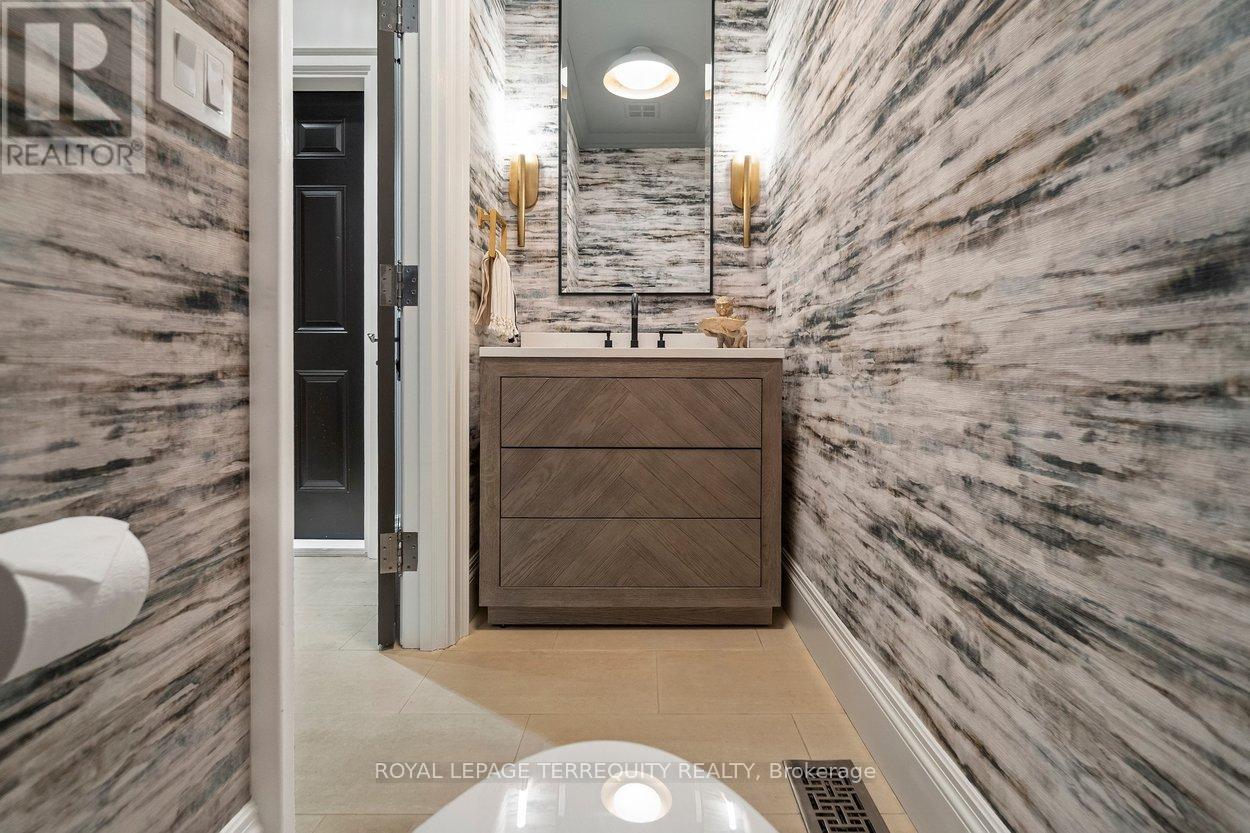 Welcome to 12 Elliott Avenue. This exceptional home delivers a powerful combination of architectural presence, sophisticated design & everyday functionality. From its striking brick & stone facade to its beautifully curated interiors, every inch of this home reflects superior quality, thoughtful planning & outstanding craftsmanship. The open-concept main floor is anchored by a dramatic two-sided, floor-to-ceiling fireplace that seamlessly connects the living and dining rooms, creating a stunning focal point. Rich dark hardwood flooring & soaring 9' ceilings on both the main and second levels enhance the home's bright, expansive feel. At the centre of the home, the elegant kitchen features stylish granite countertops, stainless steel built-in appliances, & generous custom cabinetry. The kitchen, powder room, & primary ensuite have all been professionally designed and updated by Feasby & Bleeks Interior Design, offering a cohesive, elevated aesthetic. The second level offers 4 impressively sized bedrooms with excellent storage & flexibility for growing families. The primary suite is a true retreat, complete with a beautifully remodeled ensuite featuring a steam shower. The finished lower level extends the living space with 8-foot ceilings, a fabulous wet bar, a full 4-piece bath & outstanding versatility for recreation & hosting. Step outside to a beautifully private backyard designed for effortless outdoor living and entertaining. A custom pergola with two removable canvas canopies anchors the space, allowing you to dial in full sun or complete shade as needed. Surrounded by a secluded garden setting, the patio is perfectly suited for lounging & dining, creating a serene, low-maintenance outdoor retreat. All just steps to top-ranked Lambton Kingsway Jr Middle School, parks, pool, skating rink, subway, shopping & restaurants. An exceptional family home in an A++ location. Turn-key, beautifully executed, and truly special. Simply move in and enjoy. (id:43681)