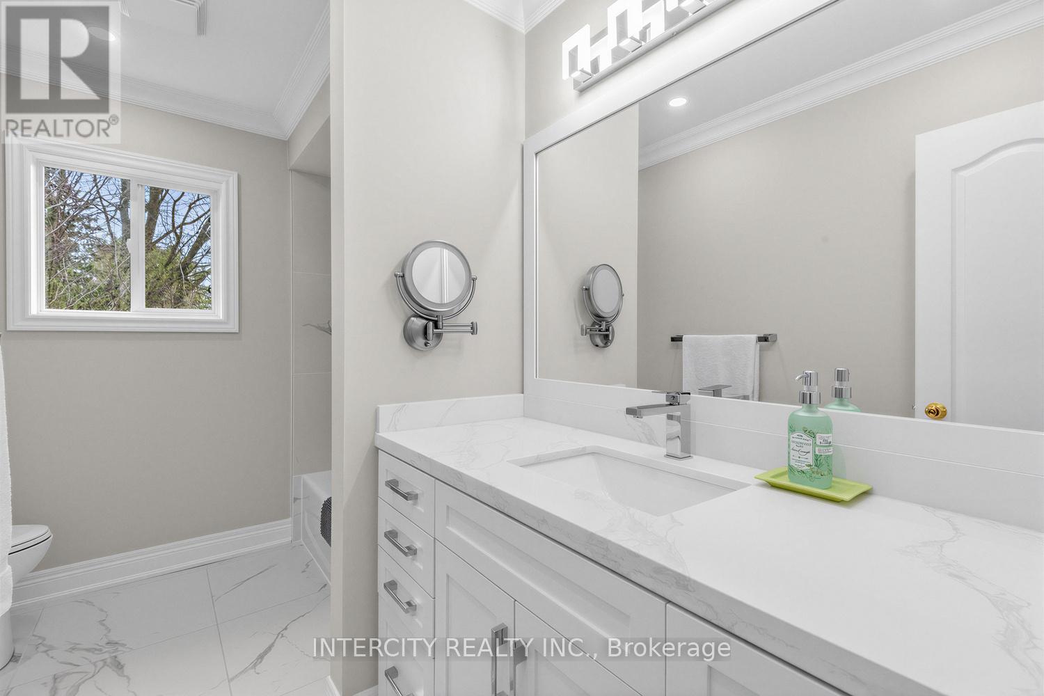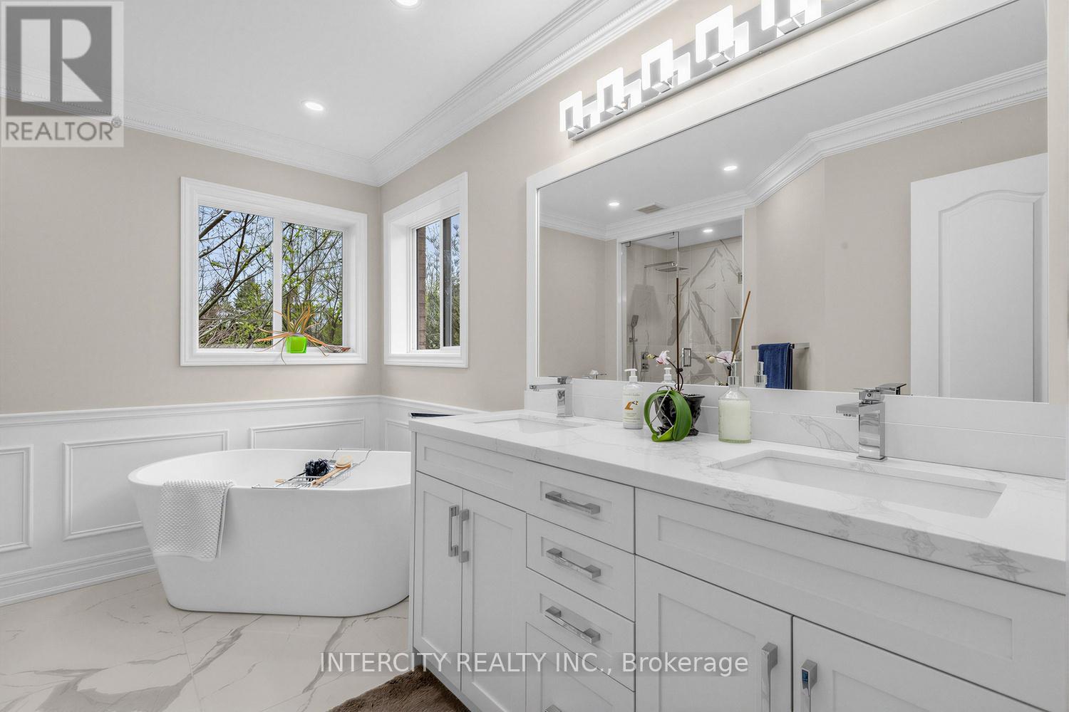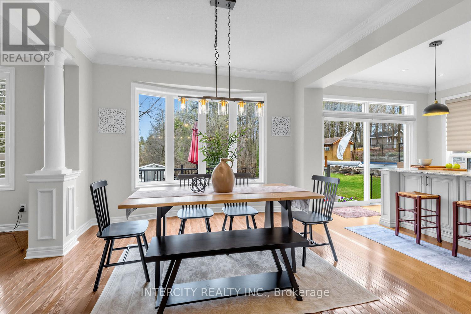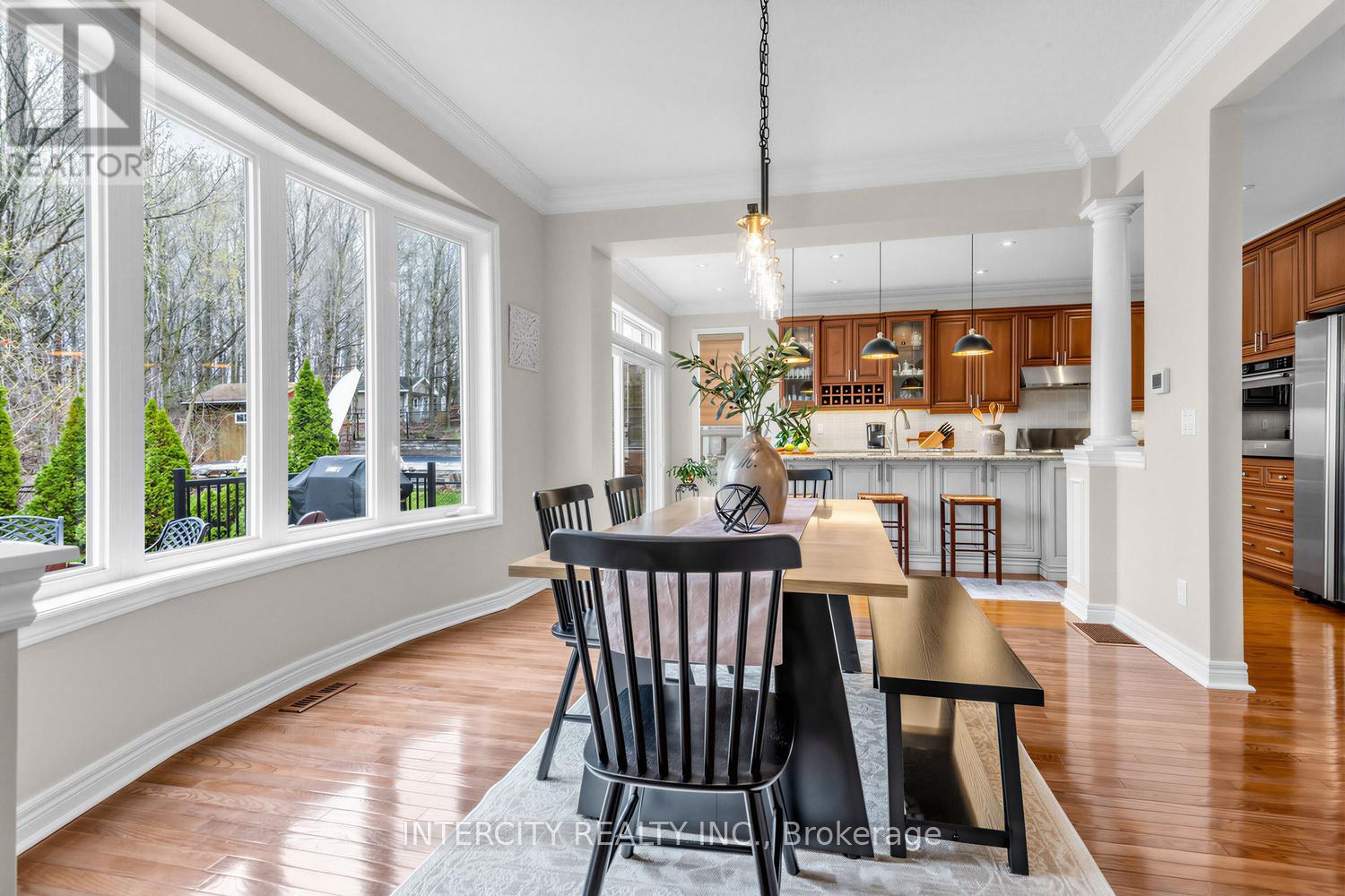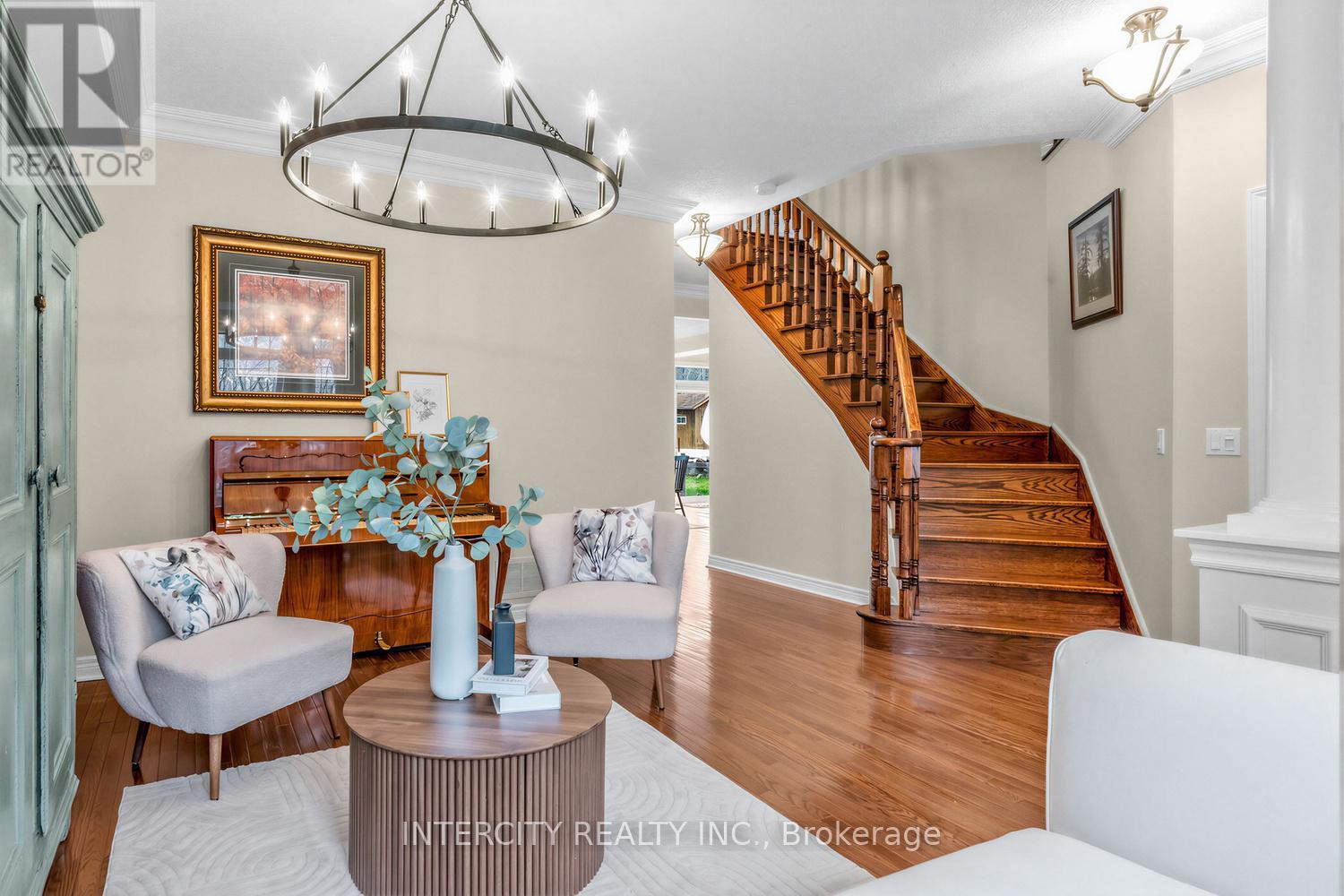 Nestled within lush greenspace and surrounded by mature trees, 12 Sandbanks Drive offers a rare sense of privacy and tranquility in the heart of Richmond Hill. This exceptional residence blends natural beauty with refined living, creating the perfect setting for families and those seeking a peaceful retreat without sacrificing convenience. Step inside to a thoughtfully designed layout featuring solid hardwood floors throughout, adding warmth and timeless elegance across every level. Sun-filled principal rooms provide both comfort and functionality, ideal for everyday living and entertaining. The heart of the home is the upgraded chef's kitchen, showcasing built-in appliances and oven, gas stove, granite countertops, porcelain backsplash, and extended cabinetry with lighting. An oversized island anchors the space-perfect for gathering, hosting, and everyday family living-seamlessly flowing into the dining and living areas. Elegant details such as mouldings and a classic oak staircase elevate the home's character and craftsmanship. Upstairs, generously sized bedrooms provide comfort for the whole family, complemented by beautifully updated bathrooms offering a fresh, modern feel. The primary suite serves as a peaceful retreat with its own ensuite and ample closet space. The outdoor setting is a true highlight-your own private escape framed by mature trees and greenspace, ideal for relaxing evenings or entertaining in a serene natural setting. Situated in a quiet, family-friendly neighbourhood close to top-rated schools, places of worship, Southlake and Mackenzie Health hospital, public transit, Go train, highways, parks, trails, and all amenities, this is a rare opportunity to own a home where lifestyle, comfort, and location come together effortlessly. (id:43681)