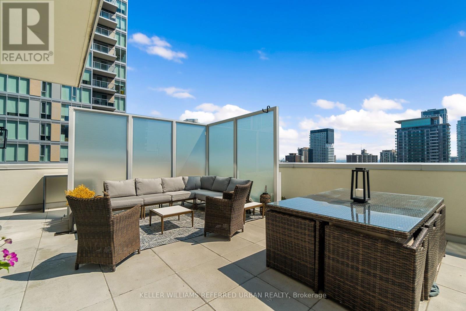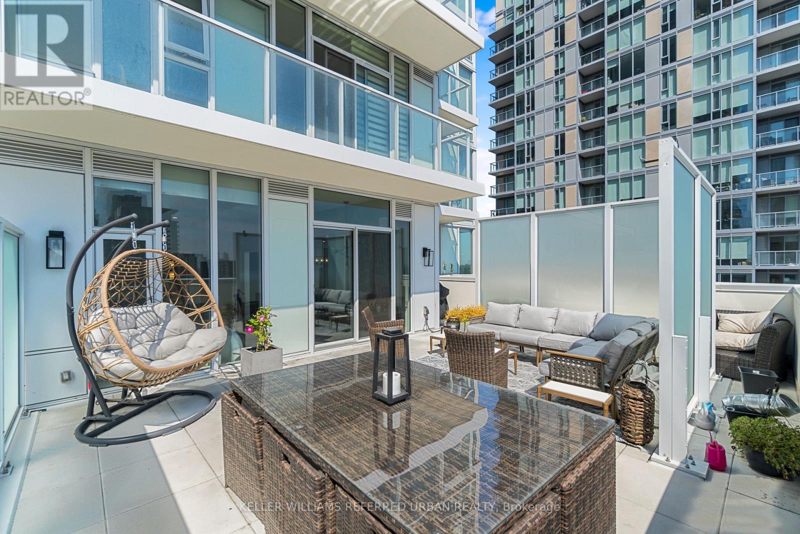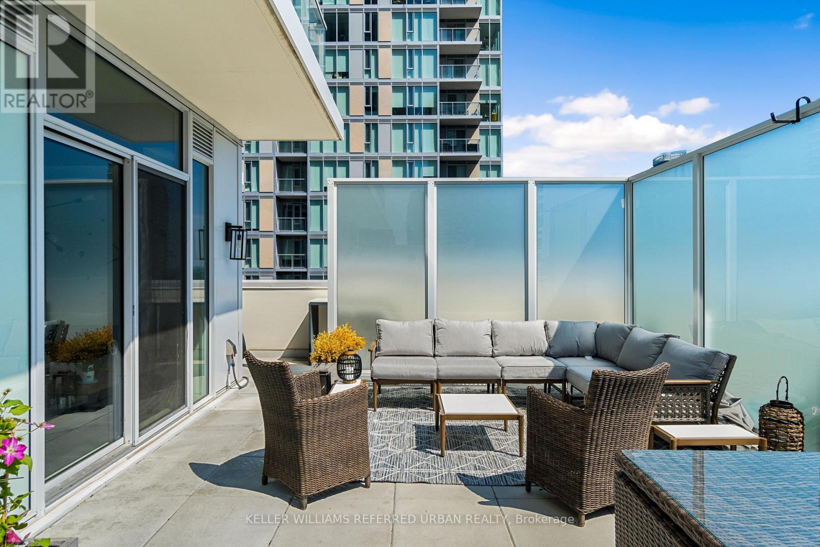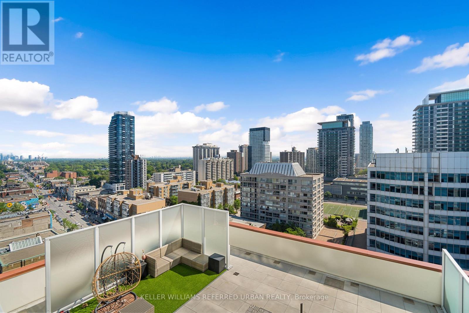 A Rare Midtown Terrace Residence at Yonge & Eglinton Welcome to a truly special offering in the heart of Yonge & Eglinton-a beautifully renovated and fully furnished 2 bedroom + den residence with an extraordinary 513 sq. ft. private terrace and sweeping unobstructed northeast views. From the moment you step inside, the attention to detail is unmistakable. The suite has been completely renovated with elegant wide-plank engineered hardwood flooring throughout and a stunning designer kitchen featuring sleek new cabinetry, Quartz counters, and an impressive 8-foot waterfall island that becomes the natural gathering place for entertaining. The open-concept living space is framed by 10-foot ceilings and floor-to-ceiling windows, allowing natural light to pour in while creating a seamless connection to the spectacular terrace-an outdoor retreat rarely found in city living. Whether hosting summer dinners under the stars or enjoying a quiet morning coffee above the city, this terrace transforms the home into something truly special. The primary suite offers a peaceful escape, complete with a large walk-in closet, additional closet space, and a beautifully appointed 3-piece ensuite. A generous second bedroom and versatile den provide flexibility for guests, a home office, or additional living space. Perfectly positioned steps to the subway, and surrounded by some of Toronto's best restaurants, cafés, shopping, and entertainment, this residence offers the ultimate walkable midtown lifestyle with near-perfect Walk, Transit and Bike Scores. (id:43681)