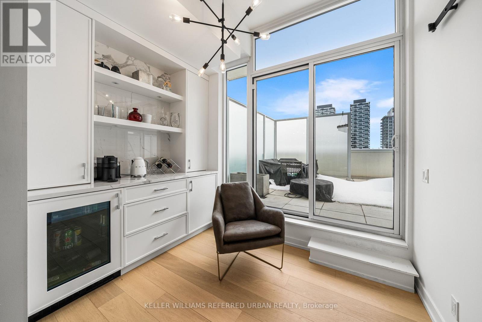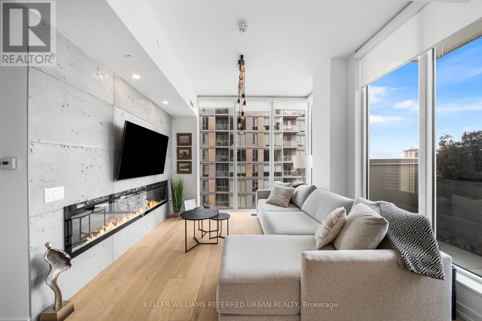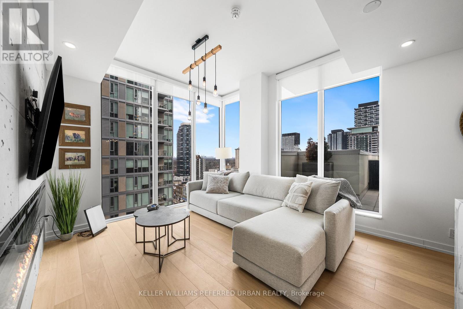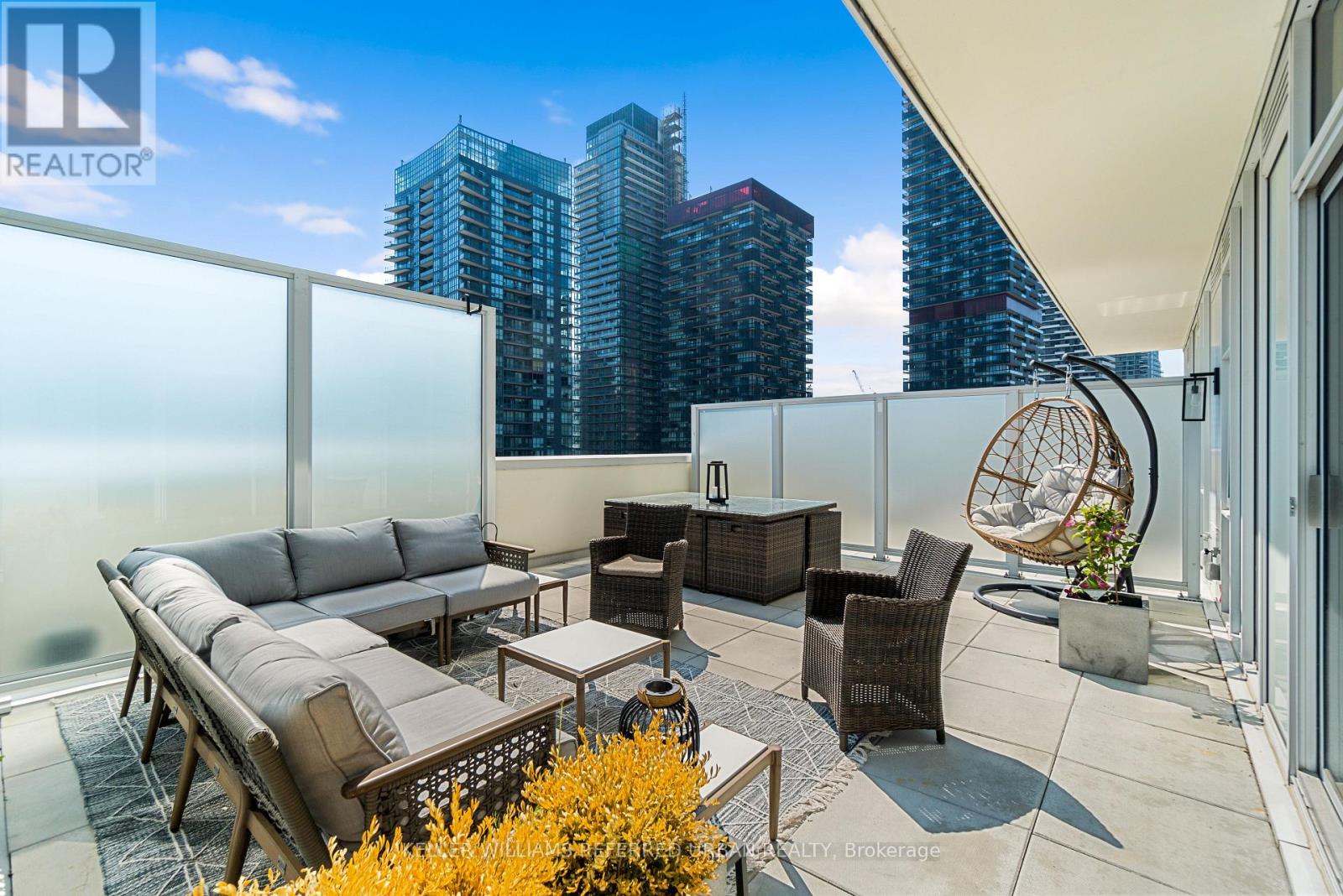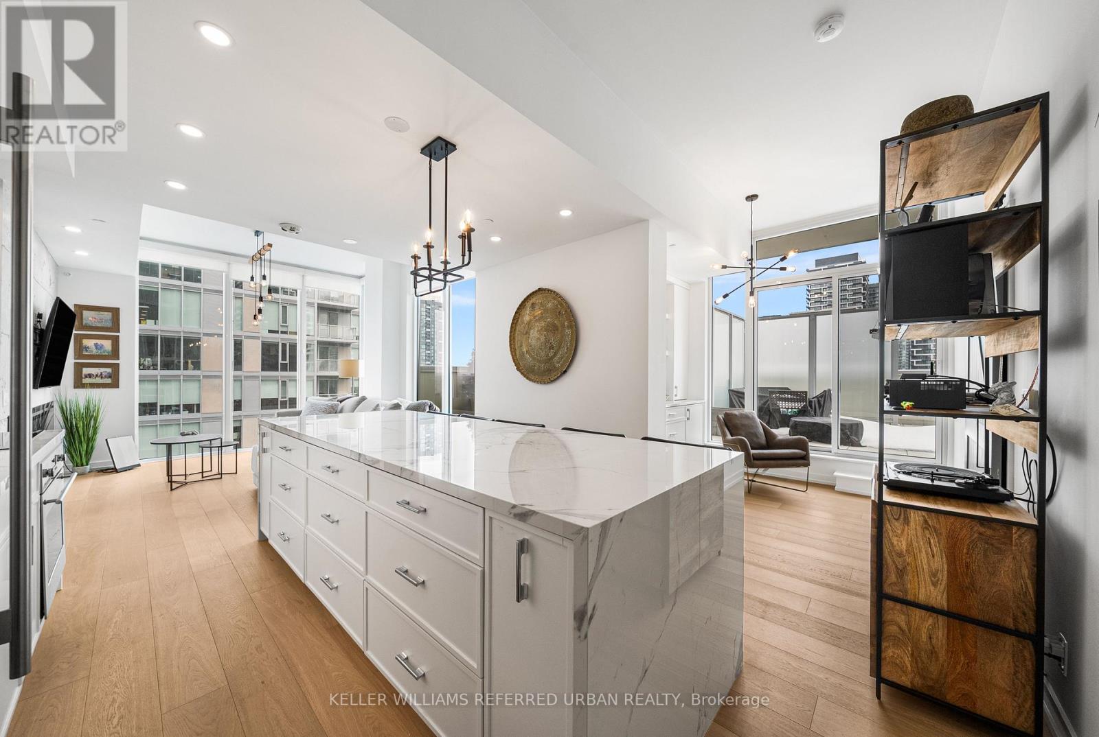A Rare Midtown Terrace Residence at Yonge & Eglinton Welcome to a truly special offering in the heart of Yonge & Eglinton-a beautifully renovated and fully furnished 2 bedroom + den residence with an extraordinary 513 sq. ft. private terrace and sweeping unobstructed northeast views. From the moment you step inside, the attention to detail is unmistakable. The suite has been completely renovated with elegant wide-plank engineered hardwood flooring throughout and a stunning designer kitchen featuring sleek new cabinetry, Quartz counters, and an impressive 8-foot waterfall island that becomes the natural gathering place for entertaining. The open-concept living space is framed by 10-foot ceilings and floor-to-ceiling windows, allowing natural light to pour in while creating a seamless connection to the spectacular terrace-an outdoor retreat rarely found in city living. Whether hosting summer dinners under the stars or enjoying a quiet morning coffee above the city, this terrace transforms the home into something truly special. The primary suite offers a peaceful escape, complete with a large walk-in closet, additional closet space, and a beautifully appointed 3-piece ensuite. A generous second bedroom and versatile den provide flexibility for guests, a home office, or additional living space. Perfectly positioned steps to the subway, and surrounded by some of Toronto's best restaurants, cafés, shopping, and entertainment, this residence offers the ultimate walkable midtown lifestyle with near-perfect Walk, Transit and Bike Scores. (id:43681)
