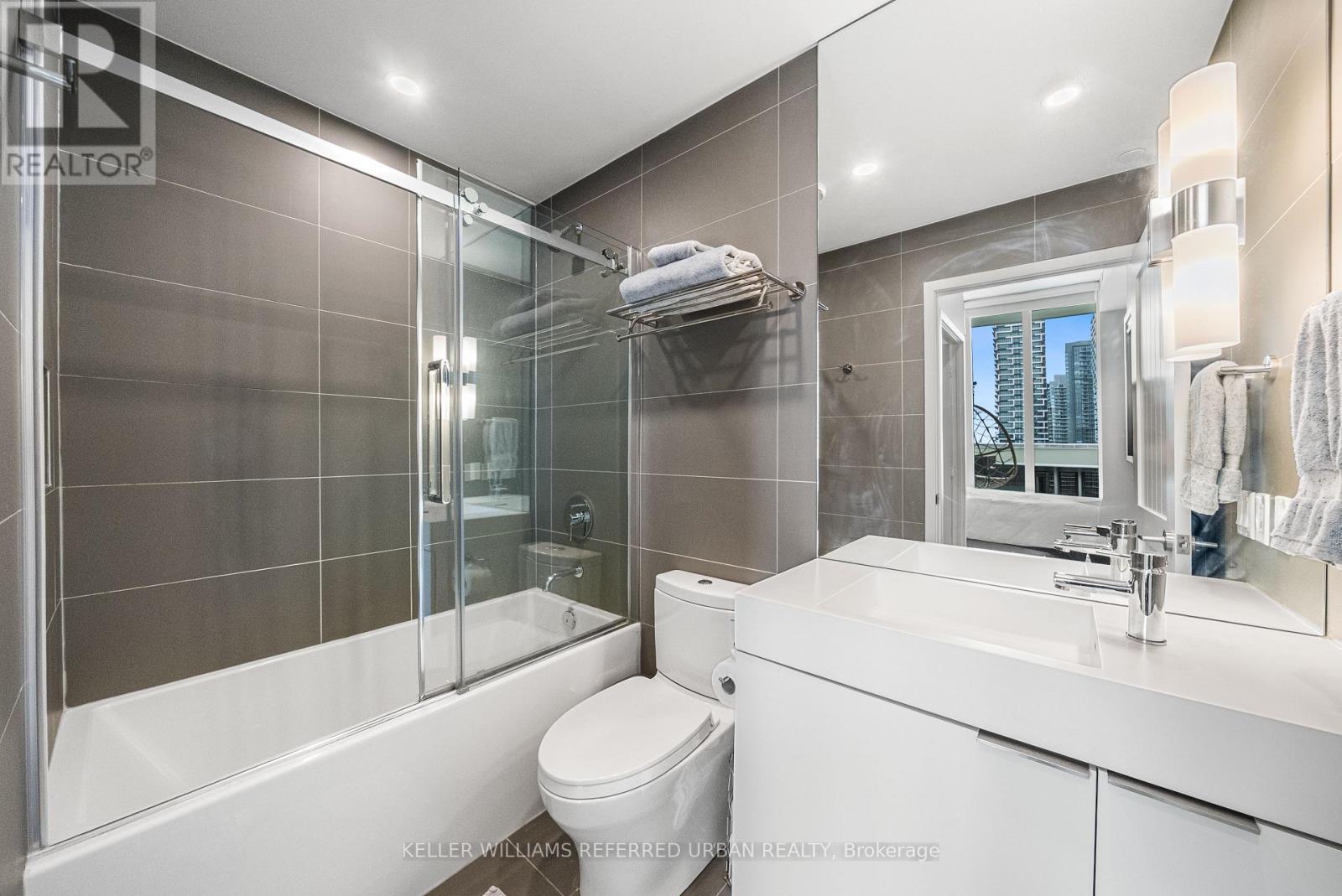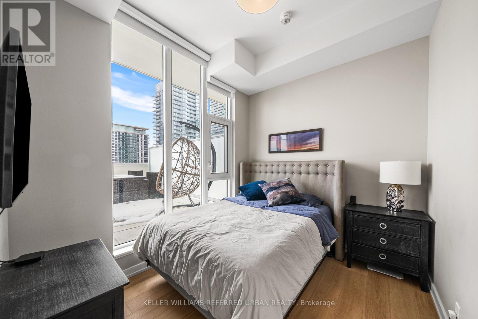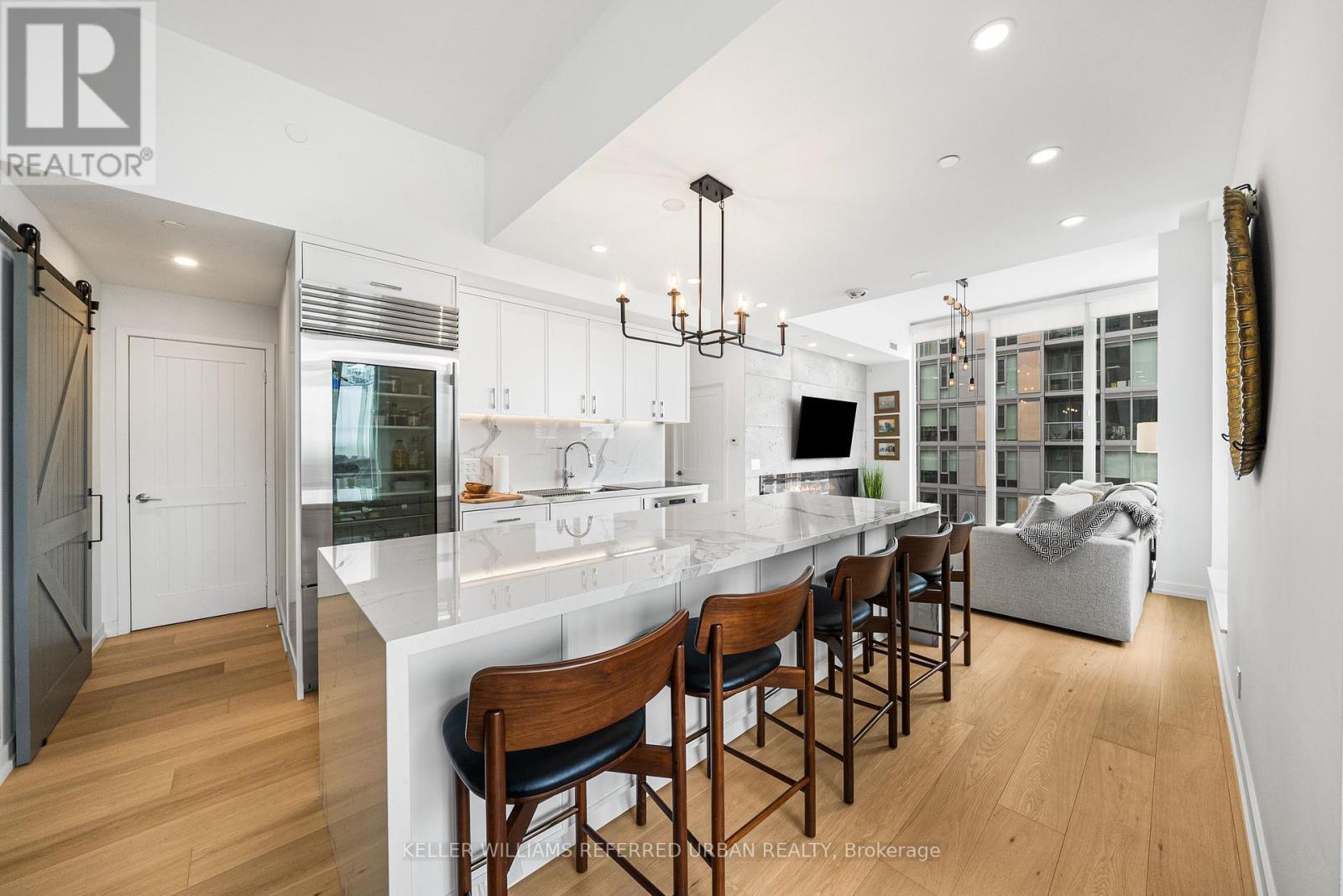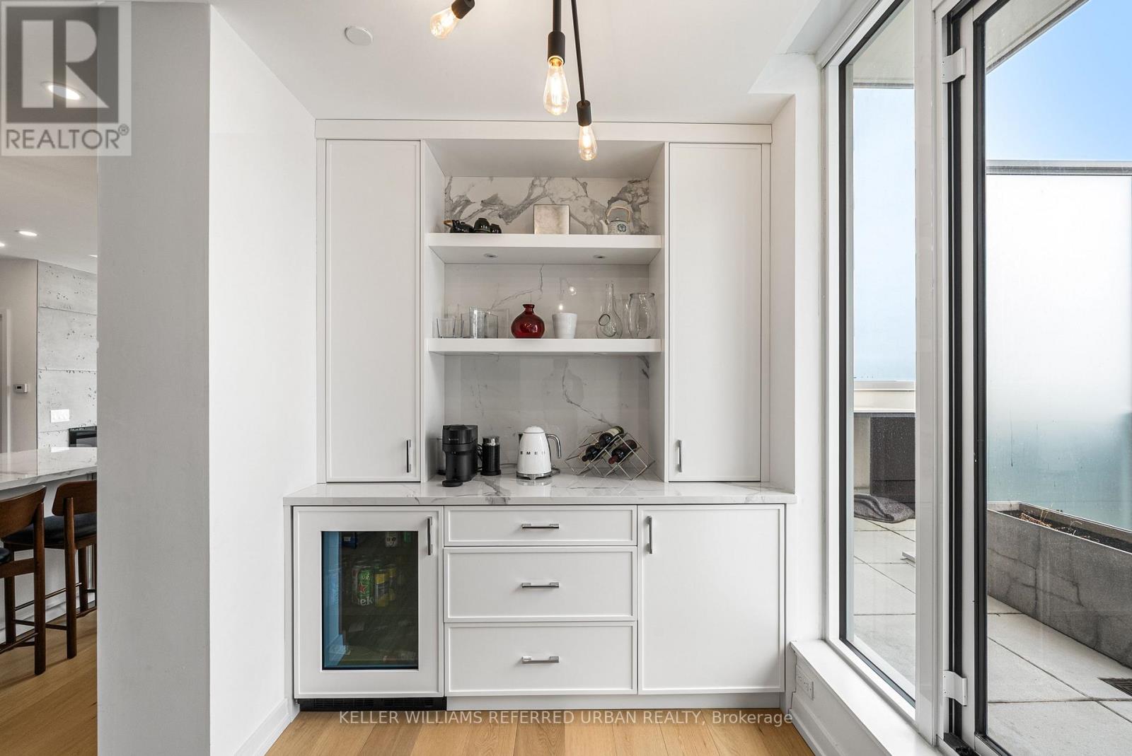 A Rare Midtown Terrace Residence at Yonge & Eglinton Welcome to a truly special offering in the heart of Yonge & Eglinton-a beautifully renovated and fully furnished 2 bedroom + den residence with an extraordinary 513 sq. ft. private terrace and sweeping unobstructed northeast views. From the moment you step inside, the attention to detail is unmistakable. The suite has been completely renovated with elegant wide-plank engineered hardwood flooring throughout and a stunning designer kitchen featuring sleek new cabinetry, Quartz counters, and an impressive 8-foot waterfall island that becomes the natural gathering place for entertaining. The open-concept living space is framed by 10-foot ceilings and floor-to-ceiling windows, allowing natural light to pour in while creating a seamless connection to the spectacular terrace-an outdoor retreat rarely found in city living. Whether hosting summer dinners under the stars or enjoying a quiet morning coffee above the city, this terrace transforms the home into something truly special. The primary suite offers a peaceful escape, complete with a large walk-in closet, additional closet space, and a beautifully appointed 3-piece ensuite. A generous second bedroom and versatile den provide flexibility for guests, a home office, or additional living space. Perfectly positioned steps to the subway, and surrounded by some of Toronto's best restaurants, cafés, shopping, and entertainment, this residence offers the ultimate walkable midtown lifestyle with near-perfect Walk, Transit and Bike Scores. (id:43681)