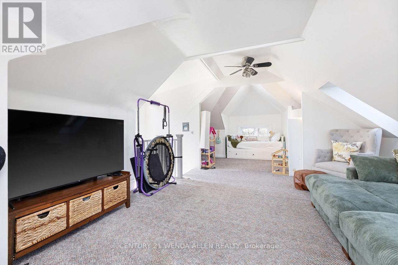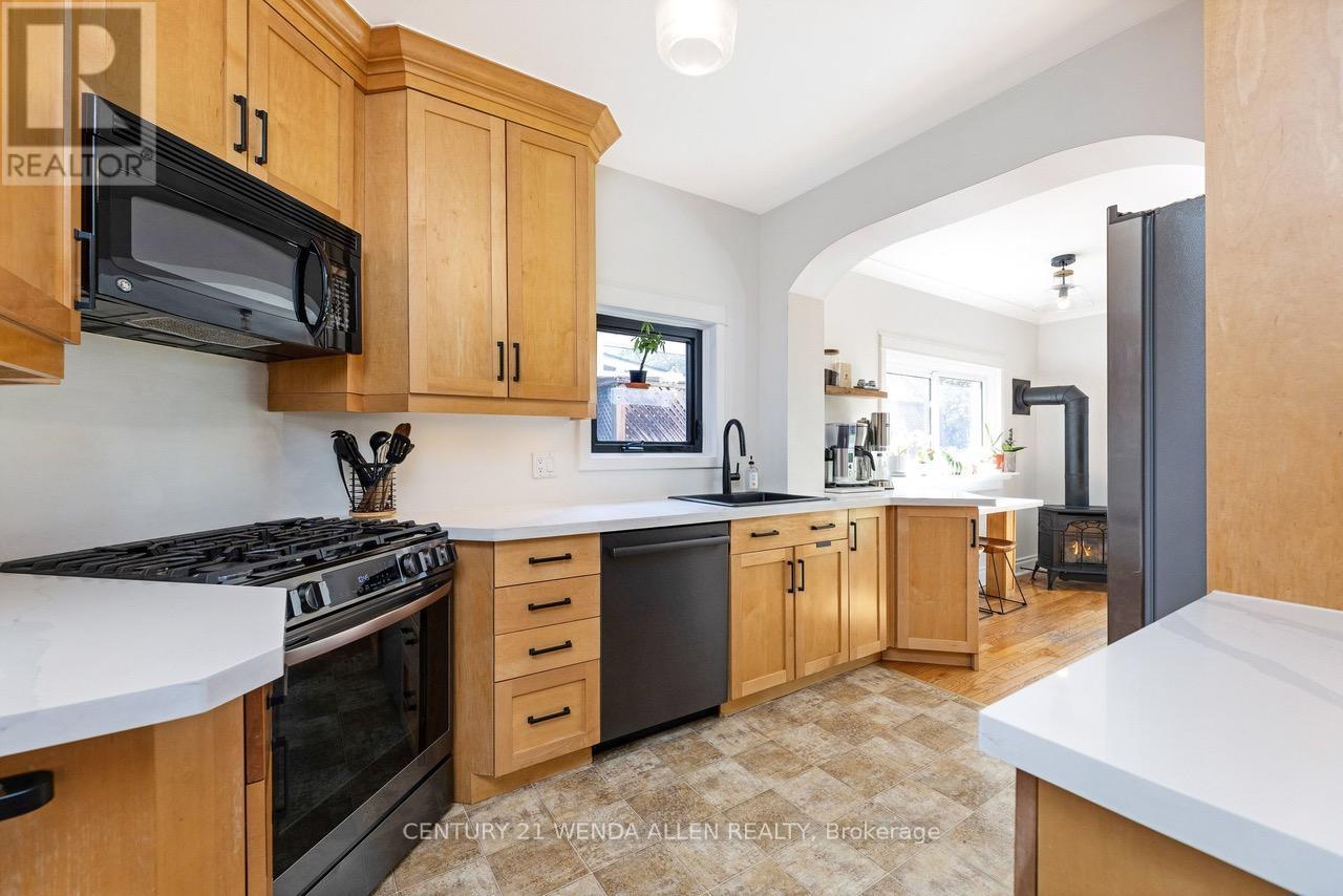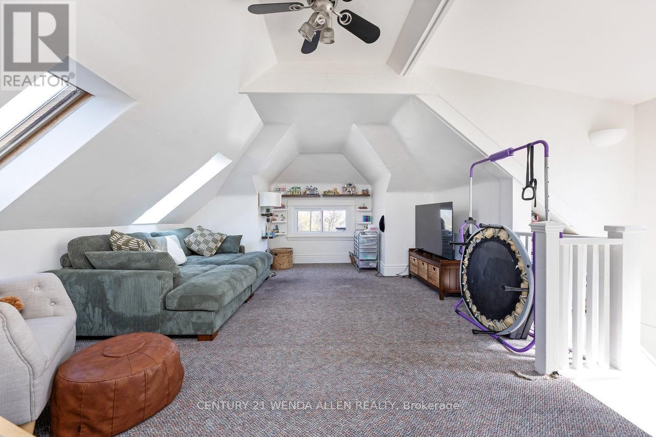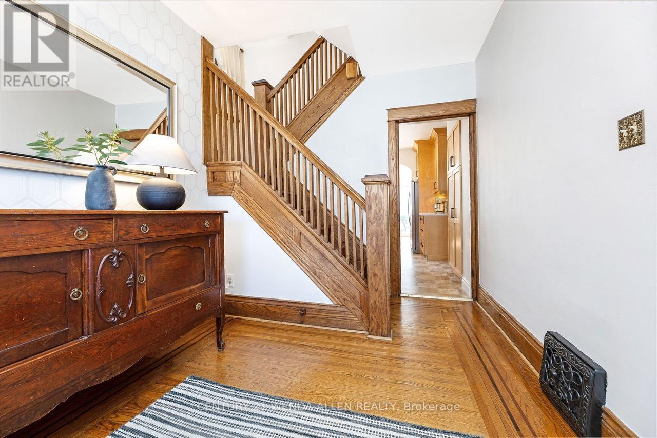 Kirkendall South Escarpment-Edge Home with Sweeping views and unmatched community. Set in sought-after Kirkendall South at the edge of the escarpment, this special home offers city-and-escarpment views from all three floors and a lifestyle that's hard to match. Enjoy one of the best porches in the city, a detached garage backing onto Dundurn and unbeatable access to the outdoors - a stones throw away to the Bruce Trail, a scenic stroll to Chedoke Golf Course and a short Uber ride, brings you to the doorsteps of TD Coliseum. You're perfectly positioned for both nature and city life. Stepping inside you'll find timeless charm and character in this beautifully preserved 1925 century home, where classic craftsmanship meets modern comfort. From the moment you enter, you're greeted by warm natural light pouring through windows that highlight the home's original details-elegant stained glass accents, vintage doorknobs, and stunning rounded archways that create a soft, inviting flow from room to room. The main living spaces feel both refined and welcoming, anchored by a striking coffered ceiling as well as an exposed brick accent wall that adds depth and architectural interest-perfect for cozy evenings or hosting family and friends. Thoughtfully updated with new appliances, the home blends its historic soul with everyday functionality. Upstairs, you'll find three comfortable bedrooms, each offering its own charm, along with a well-appointed four-piece bathroom. A hidden gem awaits above on the third floor-an attic loft space full of potential, ideal for a creative studio, library nook, or private retreat. The partially finished basement extends your living space with a second bathroom, dedicated laundry area, and separate entrance adding convenience and flexibility. A rare blend of character and modern comfort, this light-filled Hamilton century home tells a timeless story through every thoughtful detail. (id:43681)