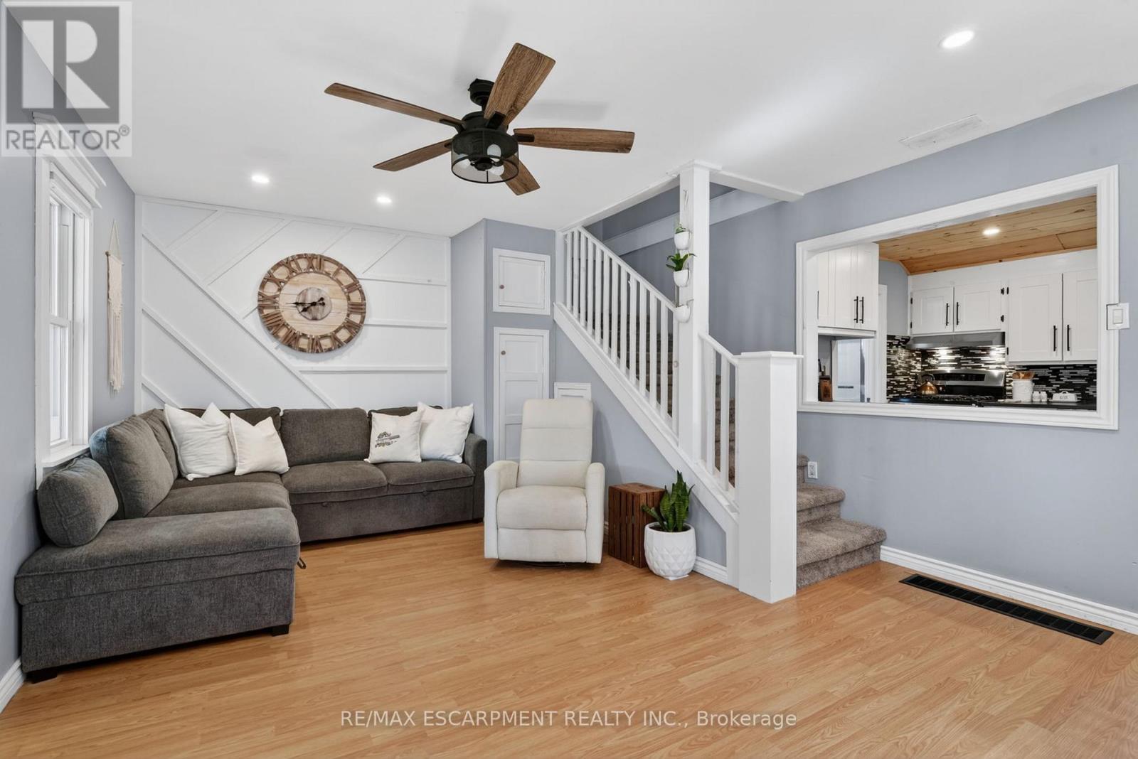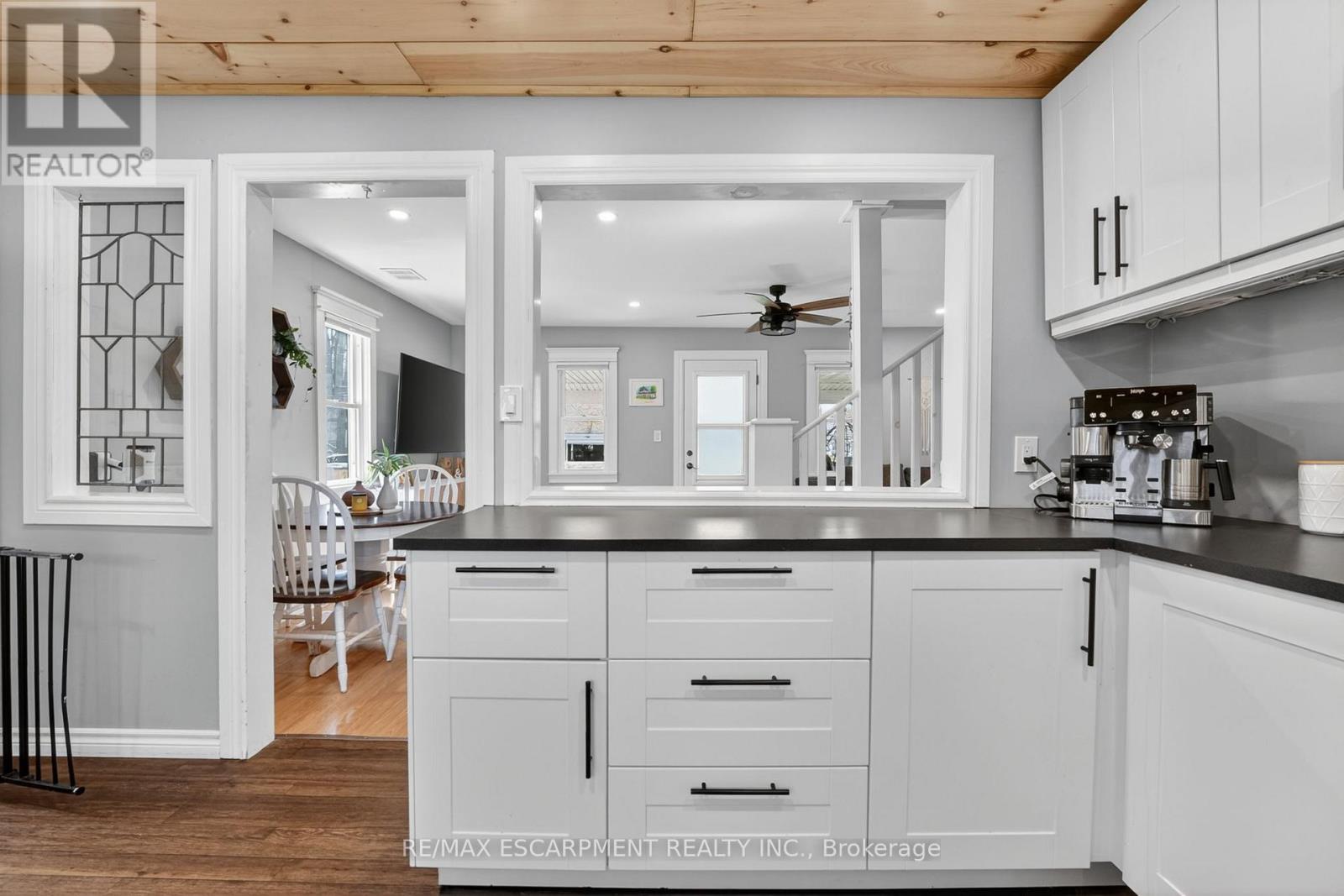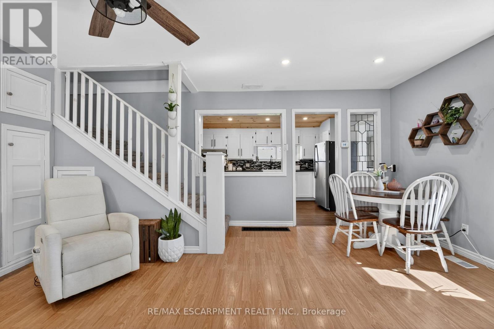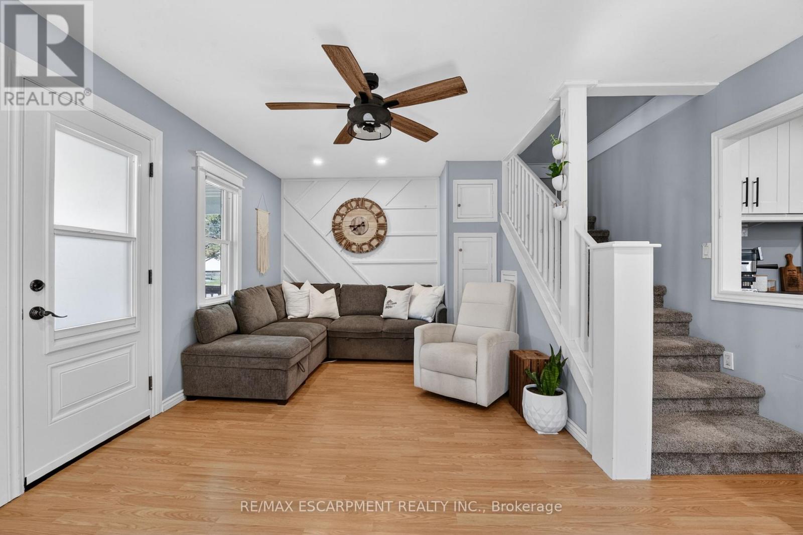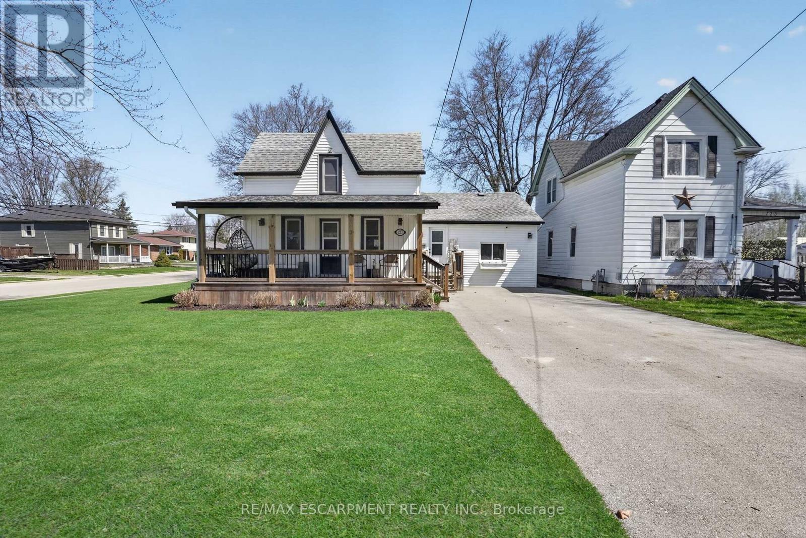 Beautifully updated and exceptionally cared for, this charming storybook home sits on a generous 55' x 165' lot in a prime walk-to-downtown Dunnville location. With a bright, open-concept layout, the main floor features an upgraded white kitchen complete with a farmhouse sink, glass-tile backsplash, stainless steel appliances, and abundant cabinetry. Updated pot lighting, upgraded flooring, and thoughtful built-ins add warmth and character throughout. The main level offers two comfortable bedrooms and a newly renovated, elegant 3-piece bathroom with a glass shower. Convenient main-floor laundry enhances everyday ease. Upstairs, a spacious den provides the perfect opportunity for a dreamy primary suite, home office, or hobby room. Recent windows and exterior doors, a 2019 paved double-wide driveway plus bonus side driveway, and a newly fully fenced backyard all contribute to the home's impressive functionality. Out back, a new concrete patio paired with beautiful outdoor lighting creates an inviting setting for evening dinners, quiet relaxation, or entertaining friends. A large yard and storage shed complete this private outdoor retreat. The welcoming front porch is another standout-ideal for morning coffee or unwinding at the end of the day. Located near the Grand River, where locals enjoy boating, fishing, and winter ice activities, this home blends small-town charm with everyday convenience. Grocery stores, hardware shops, farm stands, and essential amenities are all close by, offering a true country-living feel with walkable access to town. (id:43681)