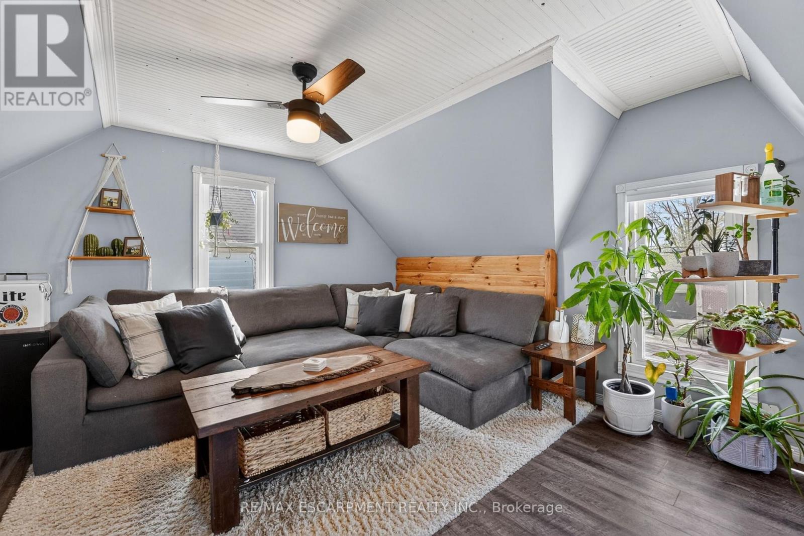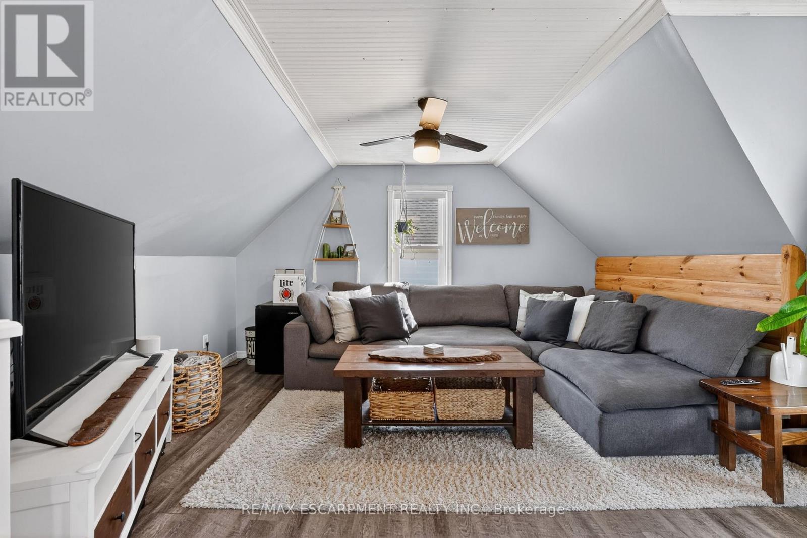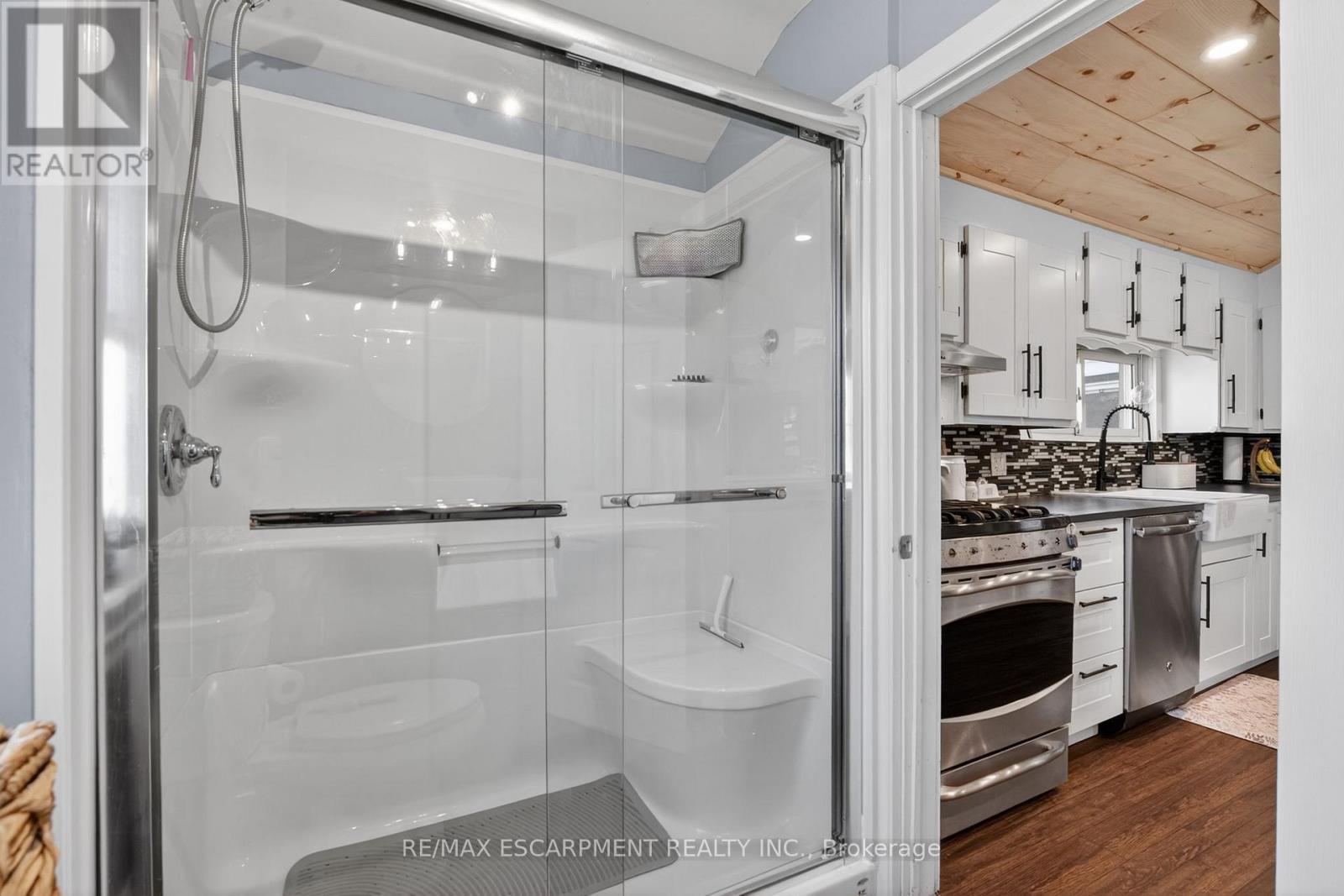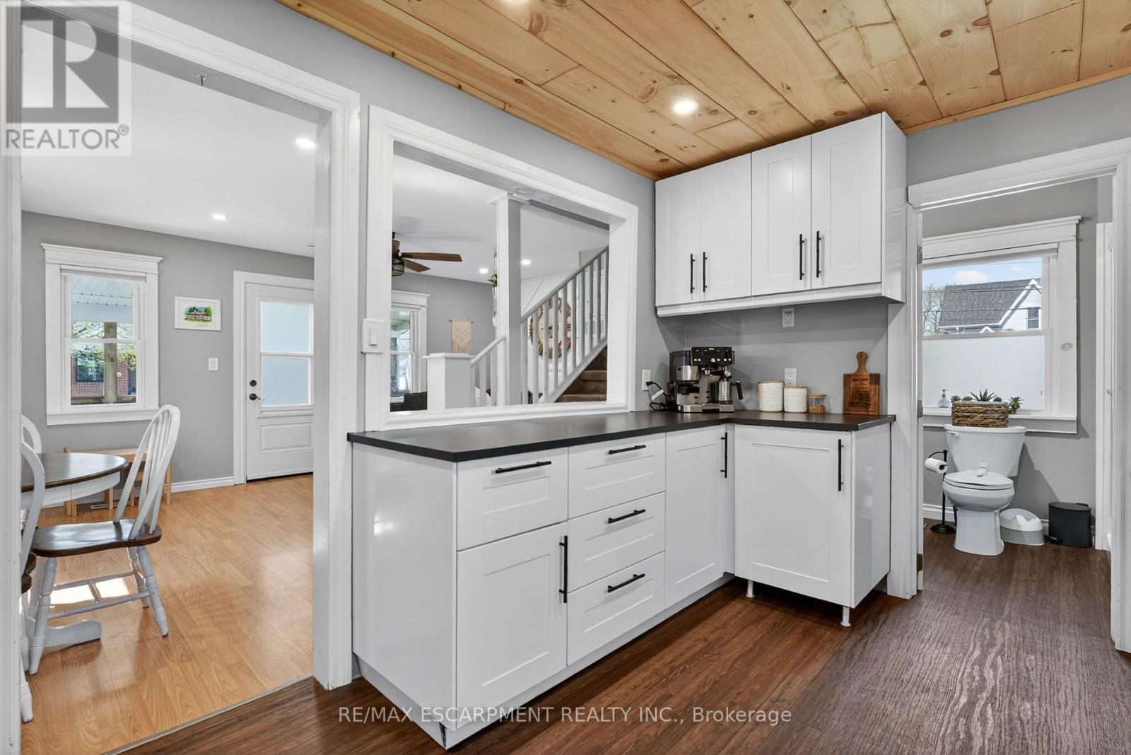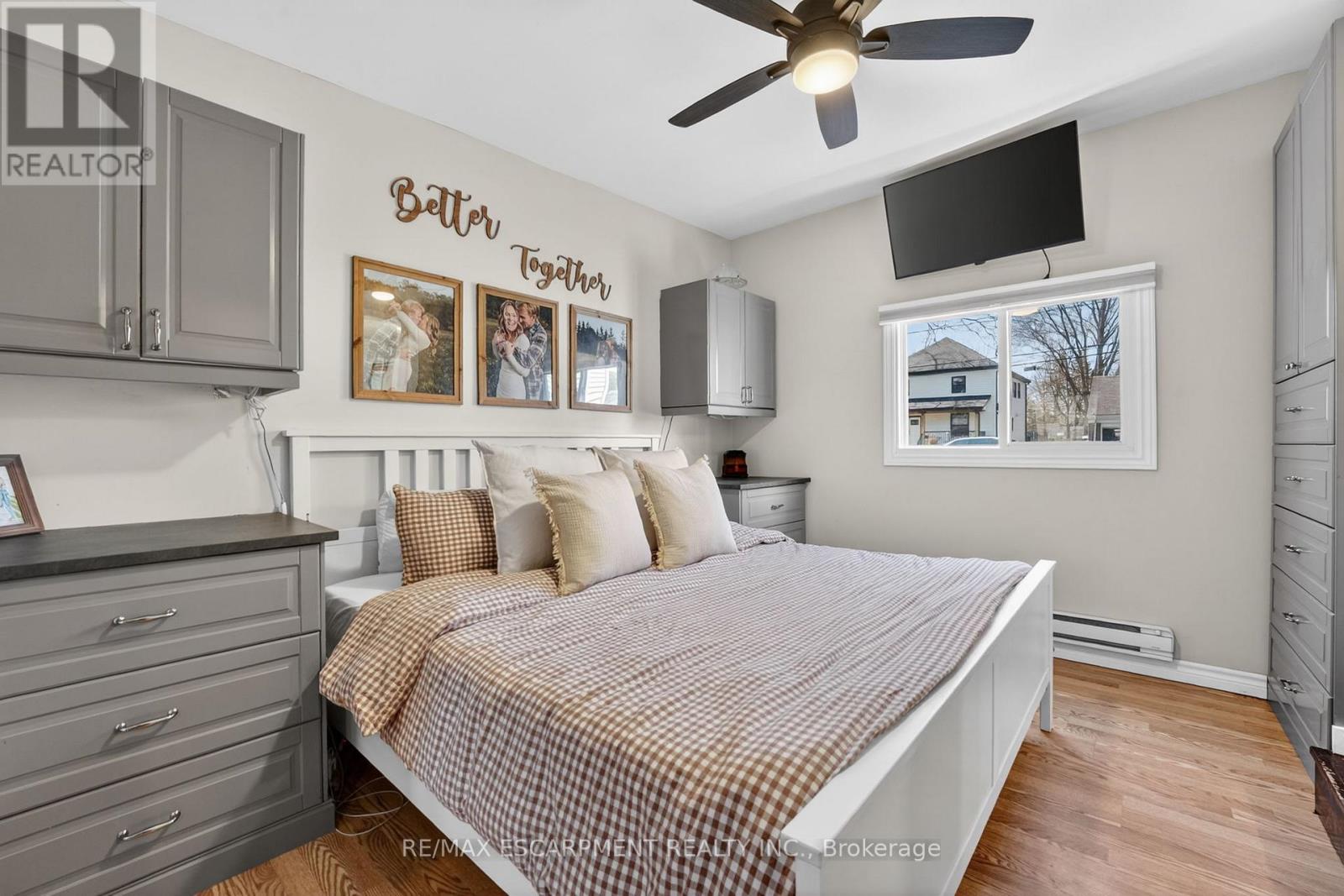 Beautifully updated and exceptionally cared for, this charming storybook home sits on a generous 55' x 165' lot in a prime walk-to-downtown Dunnville location. With a bright, open-concept layout, the main floor features an upgraded white kitchen complete with a farmhouse sink, glass-tile backsplash, stainless steel appliances, and abundant cabinetry. Updated pot lighting, upgraded flooring, and thoughtful built-ins add warmth and character throughout. The main level offers two comfortable bedrooms and a newly renovated, elegant 3-piece bathroom with a glass shower. Convenient main-floor laundry enhances everyday ease. Upstairs, a spacious den provides the perfect opportunity for a dreamy primary suite, home office, or hobby room. Recent windows and exterior doors, a 2019 paved double-wide driveway plus bonus side driveway, and a newly fully fenced backyard all contribute to the home's impressive functionality. Out back, a new concrete patio paired with beautiful outdoor lighting creates an inviting setting for evening dinners, quiet relaxation, or entertaining friends. A large yard and storage shed complete this private outdoor retreat. The welcoming front porch is another standout-ideal for morning coffee or unwinding at the end of the day. Located near the Grand River, where locals enjoy boating, fishing, and winter ice activities, this home blends small-town charm with everyday convenience. Grocery stores, hardware shops, farm stands, and essential amenities are all close by, offering a true country-living feel with walkable access to town. (id:43681)