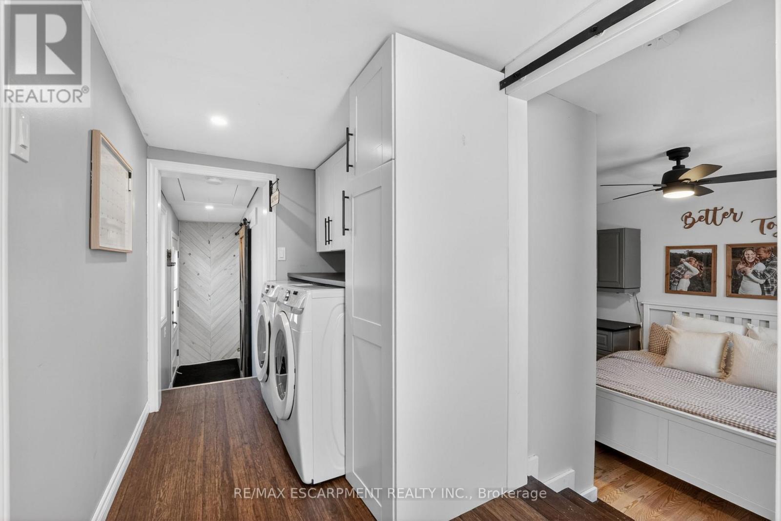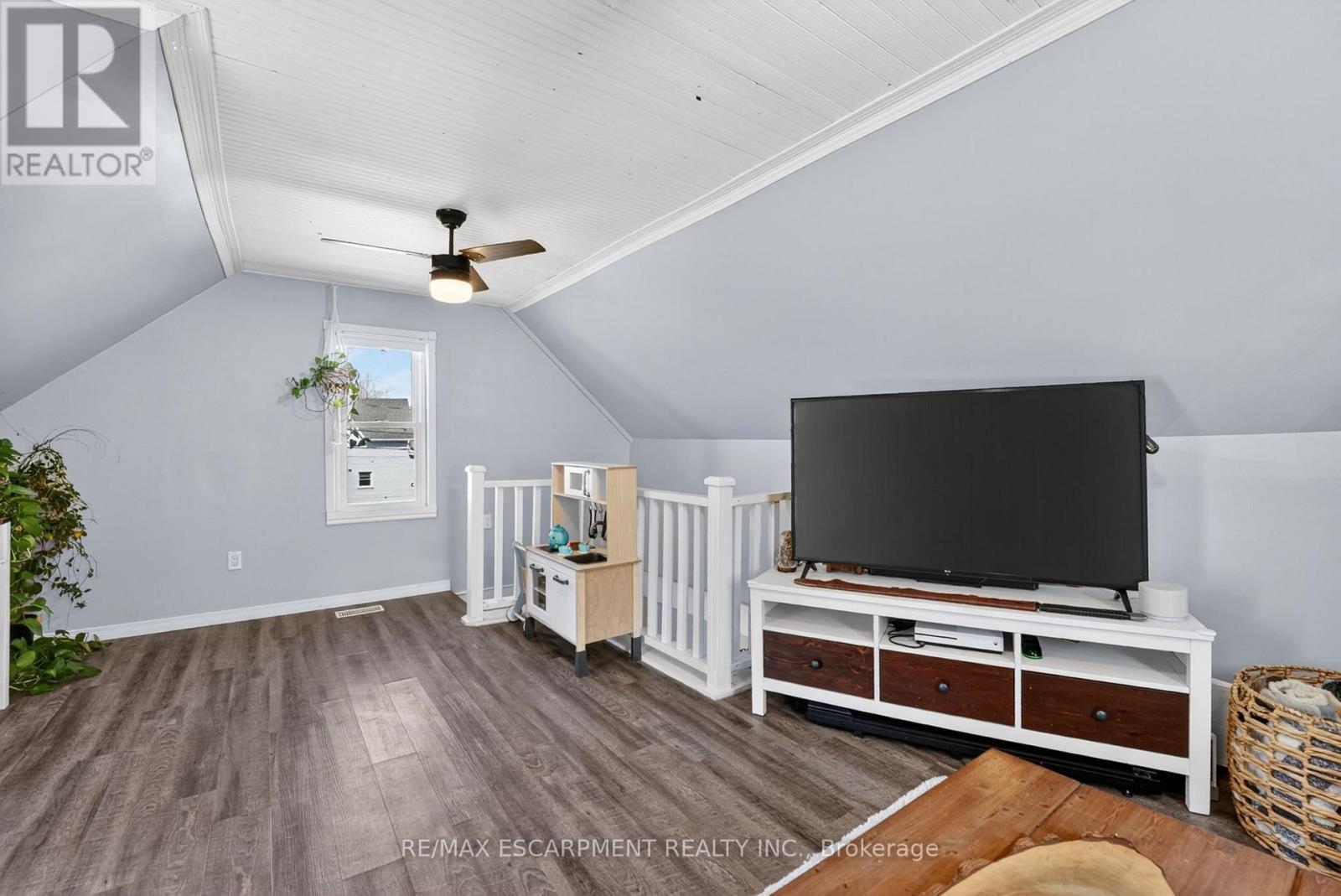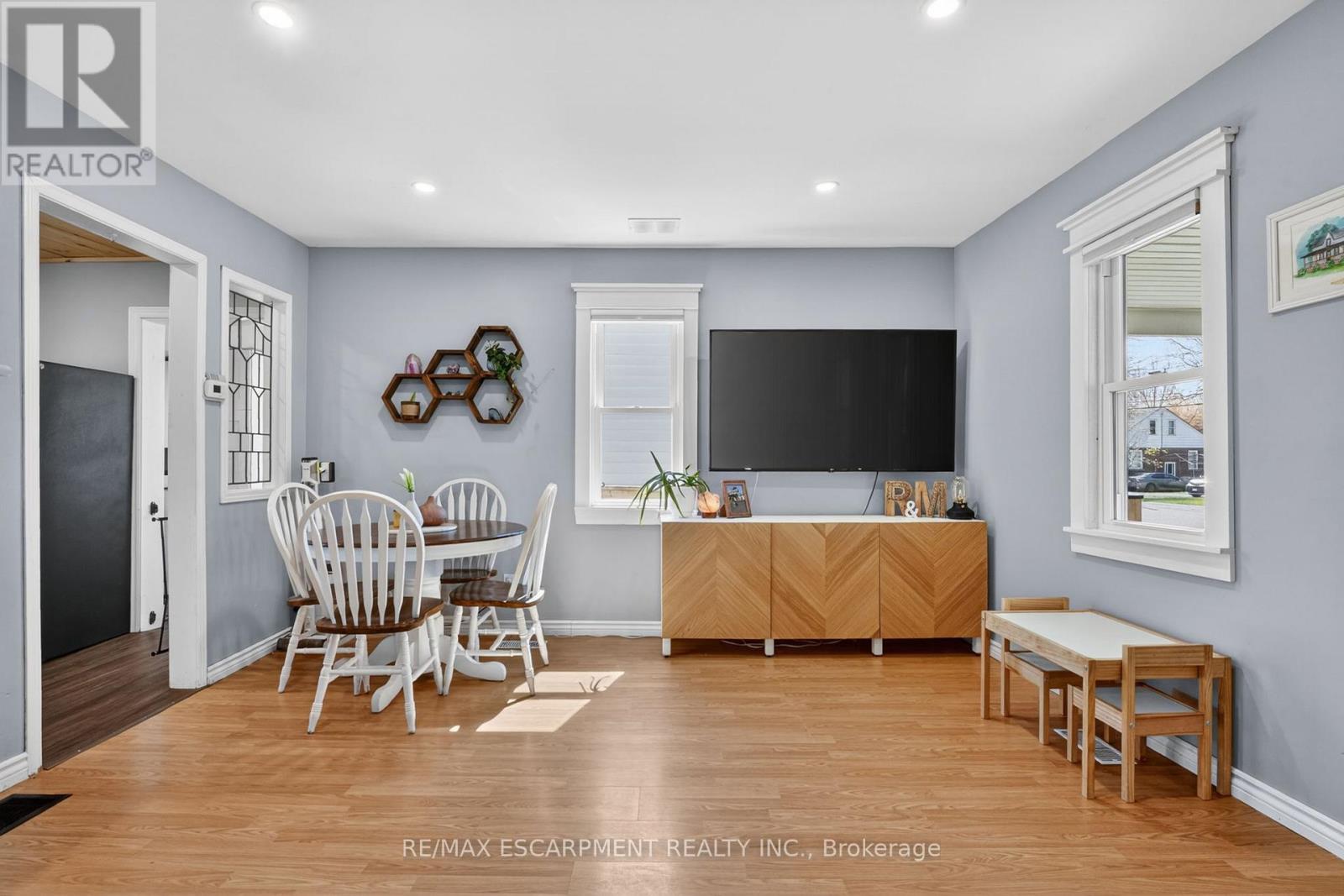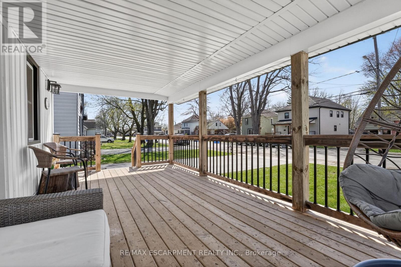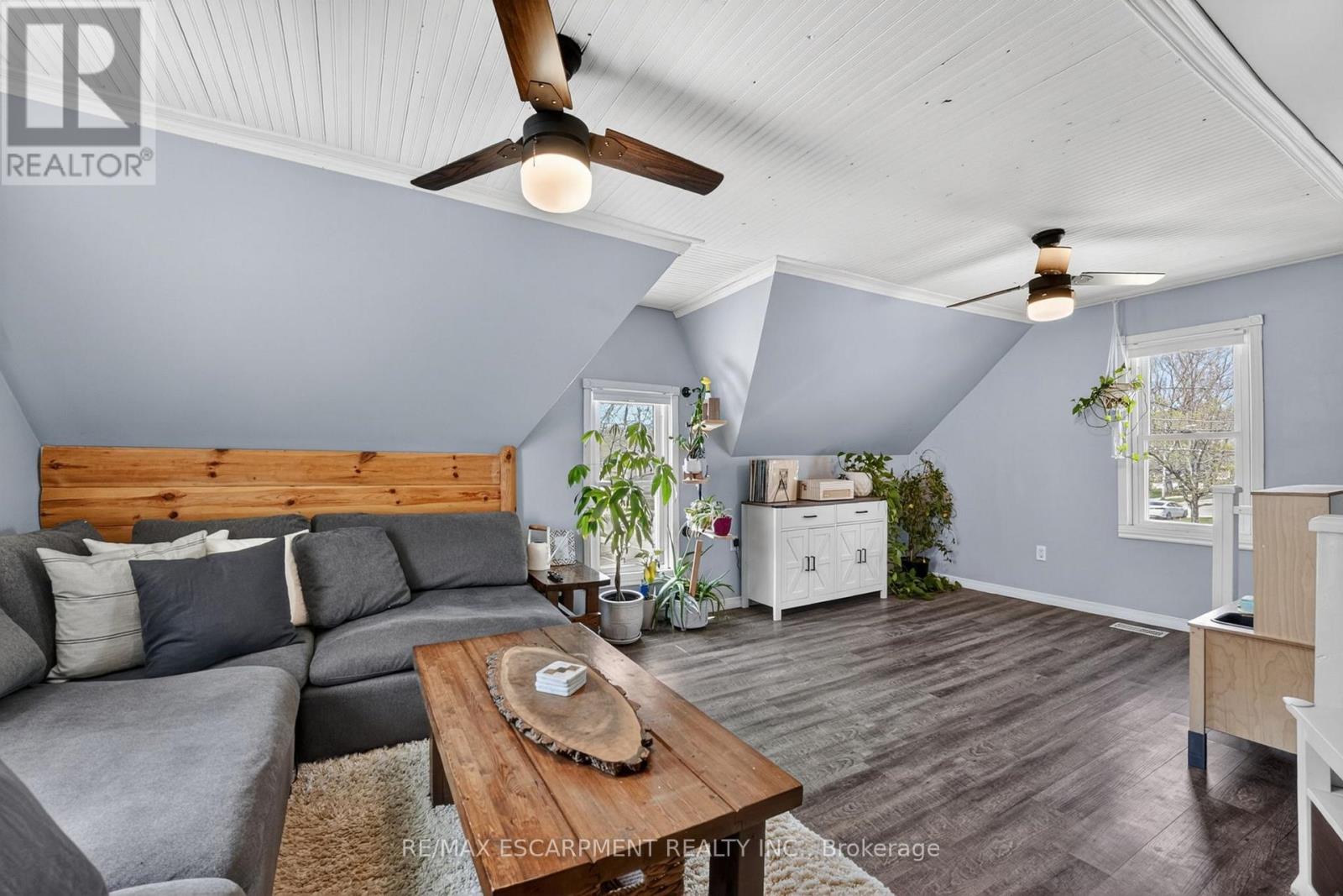 Beautifully updated and exceptionally cared for, this charming storybook home sits on a generous 55' x 165' lot in a prime walk-to-downtown Dunnville location. With a bright, open-concept layout, the main floor features an upgraded white kitchen complete with a farmhouse sink, glass-tile backsplash, stainless steel appliances, and abundant cabinetry. Updated pot lighting, upgraded flooring, and thoughtful built-ins add warmth and character throughout. The main level offers two comfortable bedrooms and a newly renovated, elegant 3-piece bathroom with a glass shower. Convenient main-floor laundry enhances everyday ease. Upstairs, a spacious den provides the perfect opportunity for a dreamy primary suite, home office, or hobby room. Recent windows and exterior doors, a 2019 paved double-wide driveway plus bonus side driveway, and a newly fully fenced backyard all contribute to the home's impressive functionality. Out back, a new concrete patio paired with beautiful outdoor lighting creates an inviting setting for evening dinners, quiet relaxation, or entertaining friends. A large yard and storage shed complete this private outdoor retreat. The welcoming front porch is another standout-ideal for morning coffee or unwinding at the end of the day. Located near the Grand River, where locals enjoy boating, fishing, and winter ice activities, this home blends small-town charm with everyday convenience. Grocery stores, hardware shops, farm stands, and essential amenities are all close by, offering a true country-living feel with walkable access to town. (id:43681)