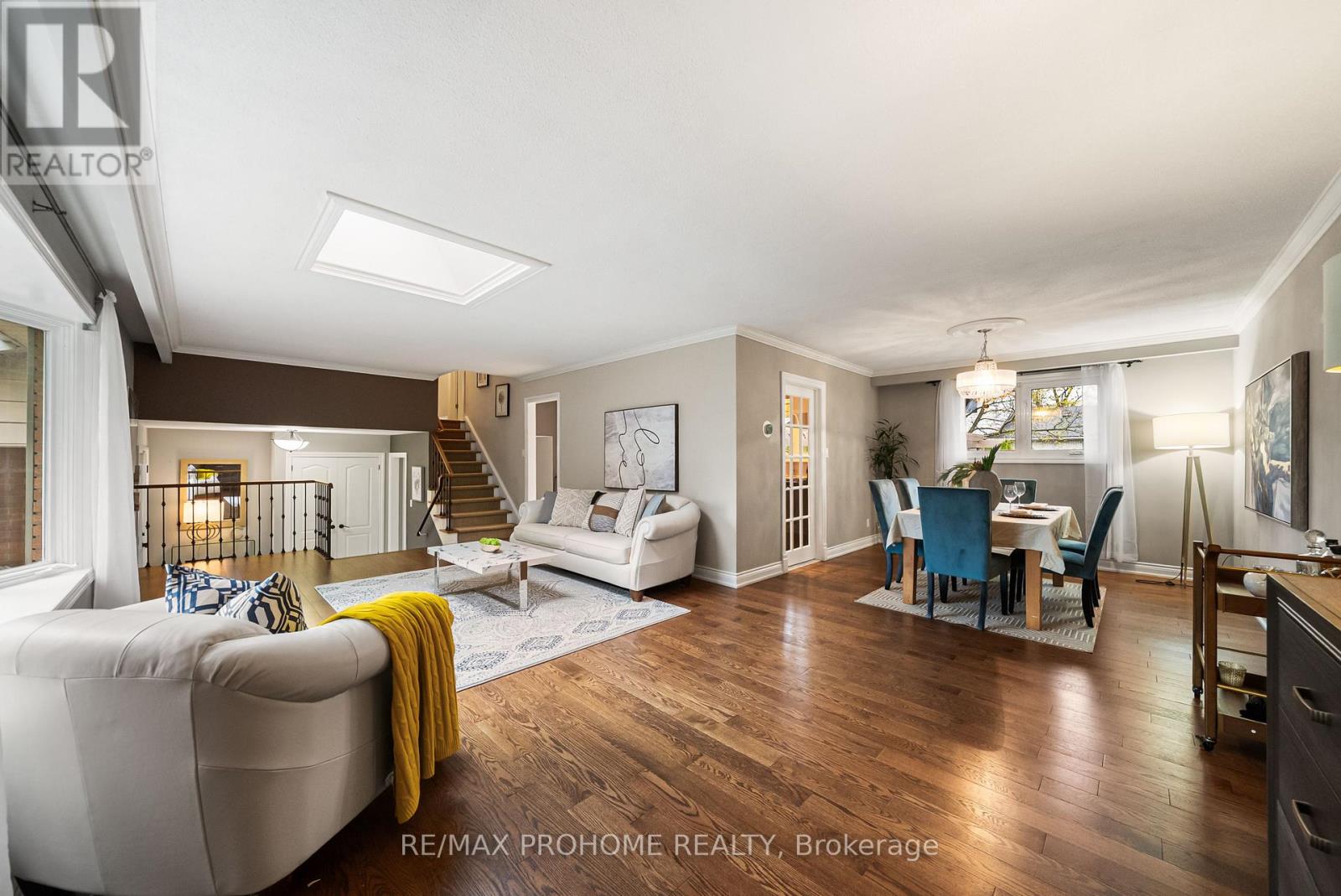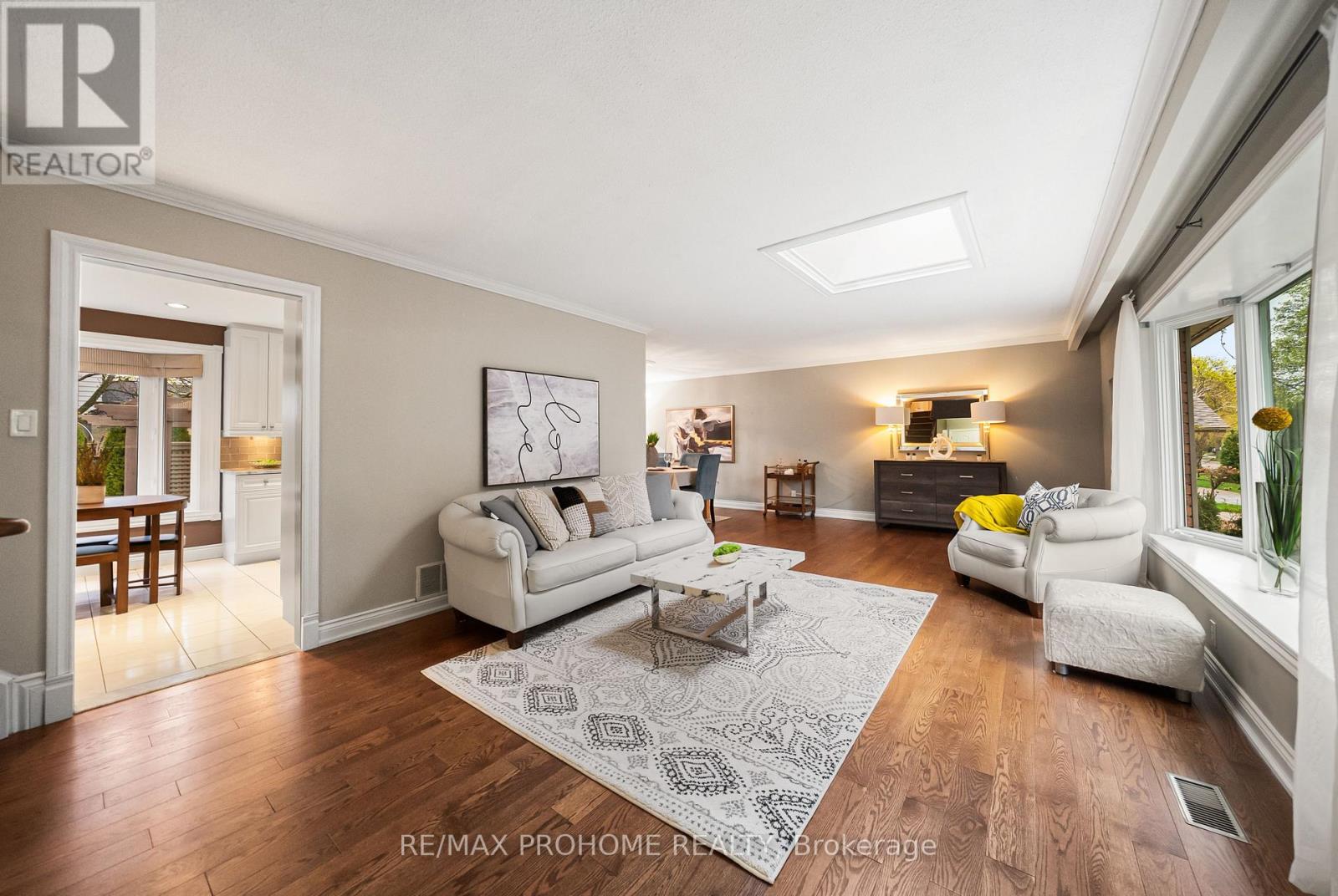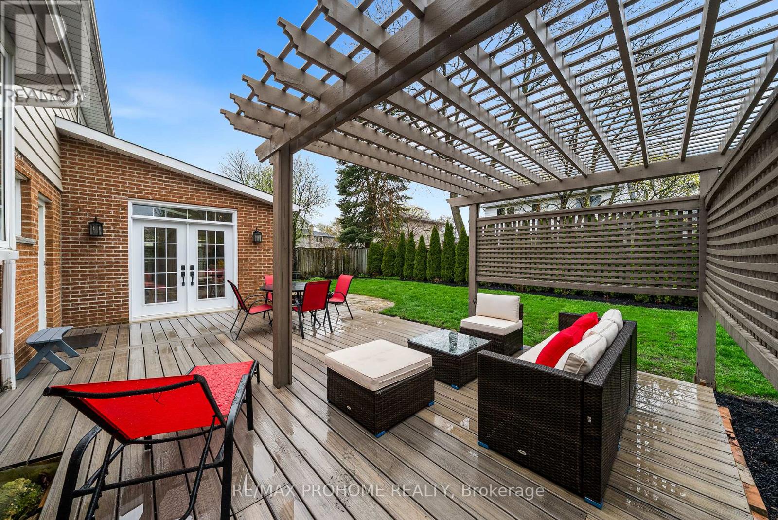 Meticulously Maintained Family Home With Beautiful Curb Appeal, Set On A Professionally Landscaped Lot With Stunning Front & Backyard Gardens In Sought-After Sherwood-Amberglen! Spacious & Sun-Filled Layout Featuring Living & Dining Room With Hardwood Floors, Crown Moulding, Bay Window & Skylight. Updated Gourmet Kitchen With Custom Countertops, S/S Appliances, Undercabinet Lighting, Custom Cabinetry & Bay Window. Designer-Inspired Family Room With Stone Fireplace & Beamed Ceiling. Sun-Soaked Great Room With 3 Skylights, Vaulted Ceiling, Hardwood Floors & Walk-Out To Deck. Primary Bedroom Retreat With Ample Closet Space, Dressing Area & Spa-Like 3Pc Ensuite. Finished Basement With Slate Tile Floor, Custom Entertainment Unit & Plenty Of Storage. Epoxy Garage Floor Adds A Clean & Functional Touch. Private Backyard Oasis With Maintenance-Free Trex Composite Deck, Pergola, New East-Side Fence, Premium Emerald Cedars & Beautiful Landscaping. New Air Conditioning Heat Pump 2024. Prime Location Close To Historic Main Street Markham, Markham Stouffville Hospital, Hwy 407, Library, Parks, Walking Trails, Schools, Shops, Restaurants & All Amenities. 4-Bedroom Home Converted To 3 Bedrooms & Can Be Easily Converted Back. (id:43681)