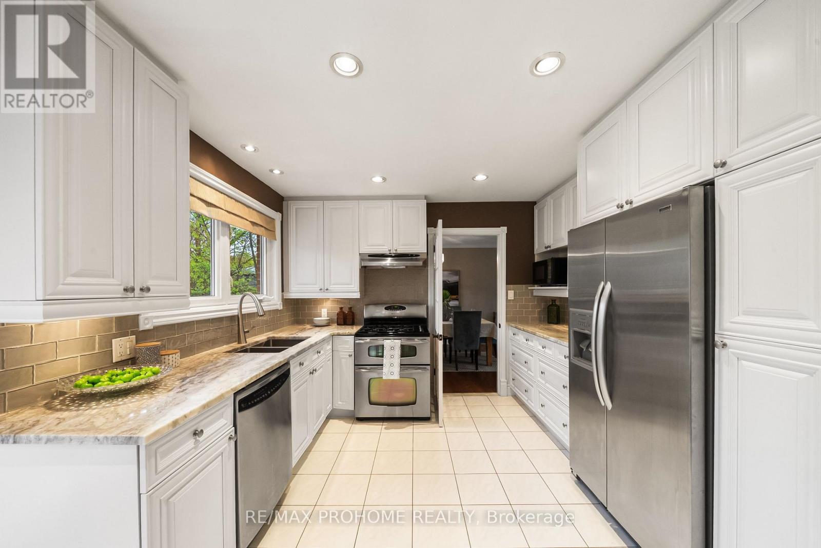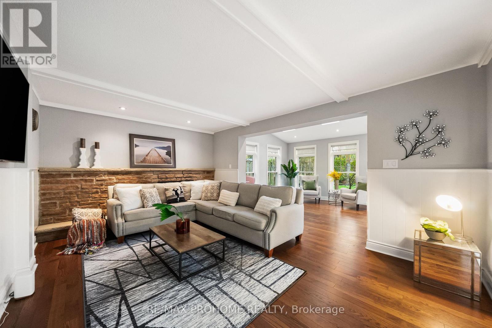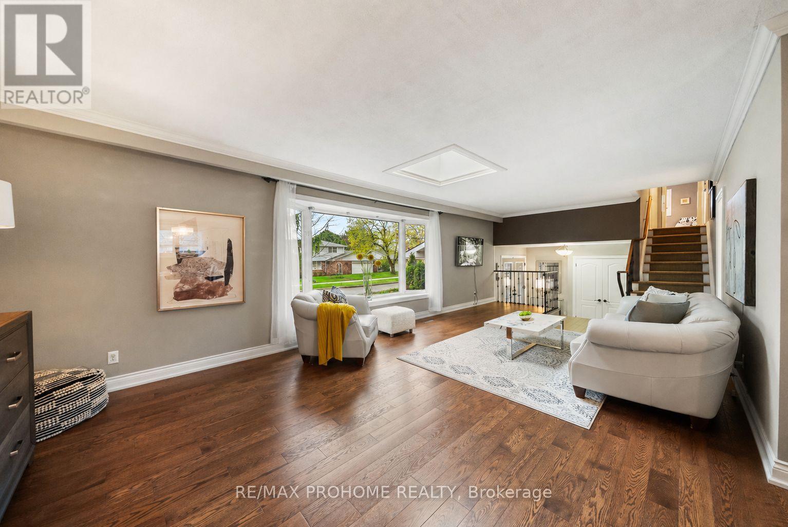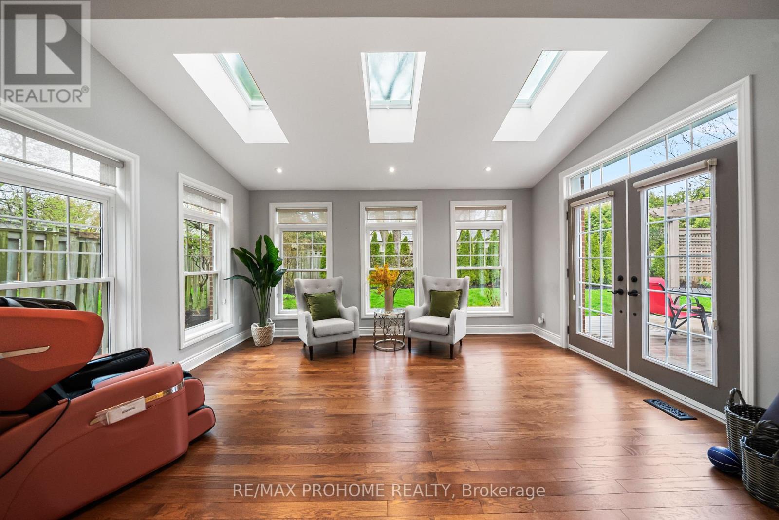 Meticulously Maintained Family Home With Beautiful Curb Appeal, Set On A Professionally Landscaped Lot With Stunning Front & Backyard Gardens In Sought-After Sherwood-Amberglen! Spacious & Sun-Filled Layout Featuring Living & Dining Room With Hardwood Floors, Crown Moulding, Bay Window & Skylight. Updated Gourmet Kitchen With Custom Countertops, S/S Appliances, Undercabinet Lighting, Custom Cabinetry & Bay Window. Designer-Inspired Family Room With Stone Fireplace & Beamed Ceiling. Sun-Soaked Great Room With 3 Skylights, Vaulted Ceiling, Hardwood Floors & Walk-Out To Deck. Primary Bedroom Retreat With Ample Closet Space, Dressing Area & Spa-Like 3Pc Ensuite. Finished Basement With Slate Tile Floor, Custom Entertainment Unit & Plenty Of Storage. Epoxy Garage Floor Adds A Clean & Functional Touch. Private Backyard Oasis With Maintenance-Free Trex Composite Deck, Pergola, New East-Side Fence, Premium Emerald Cedars & Beautiful Landscaping. New Air Conditioning Heat Pump 2024. Prime Location Close To Historic Main Street Markham, Markham Stouffville Hospital, Hwy 407, Library, Parks, Walking Trails, Schools, Shops, Restaurants & All Amenities. 4-Bedroom Home Converted To 3 Bedrooms & Can Be Easily Converted Back. (id:43681)