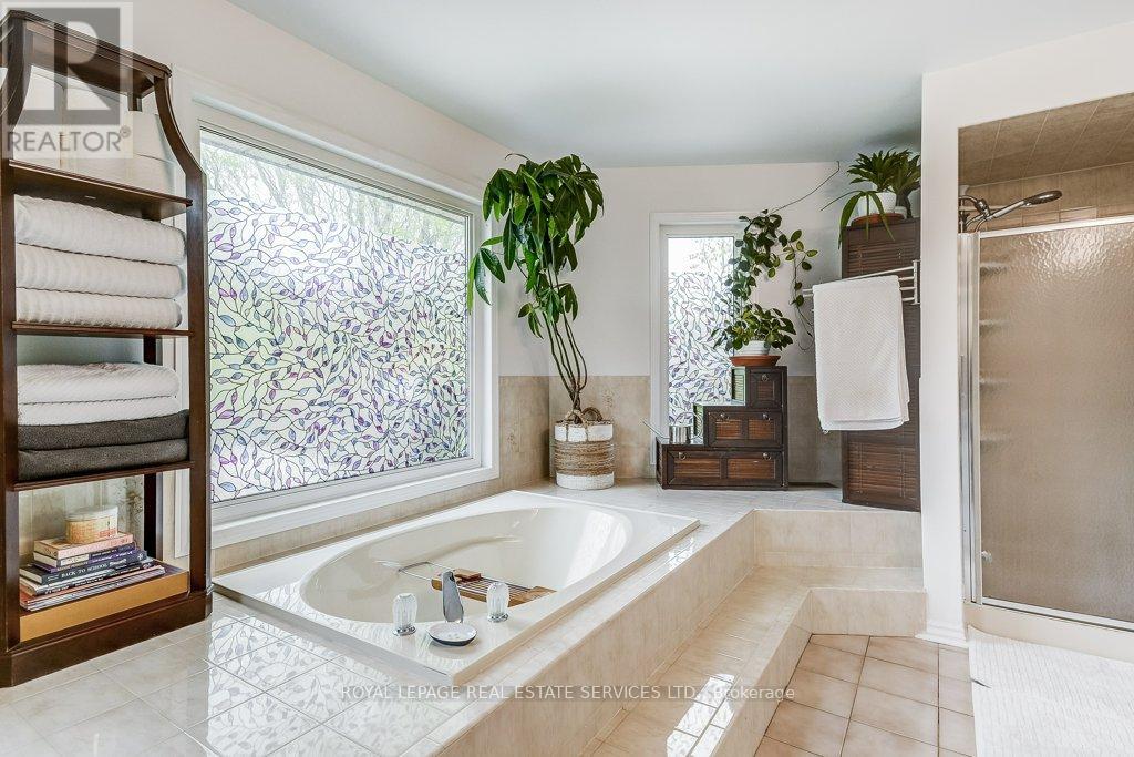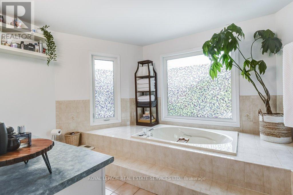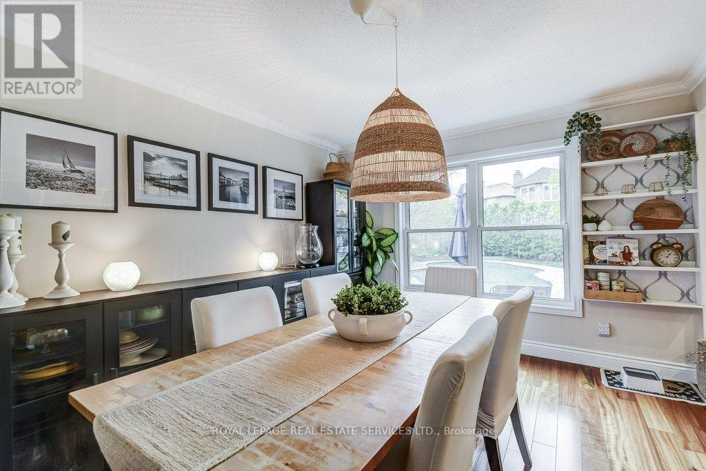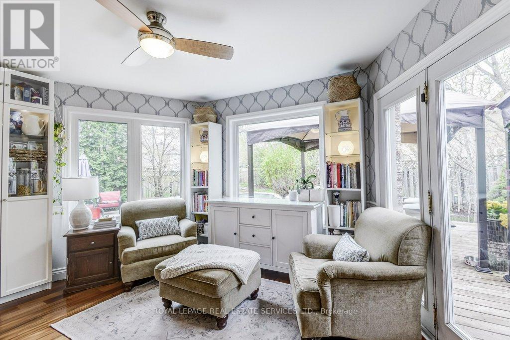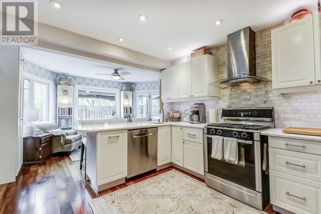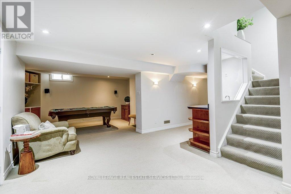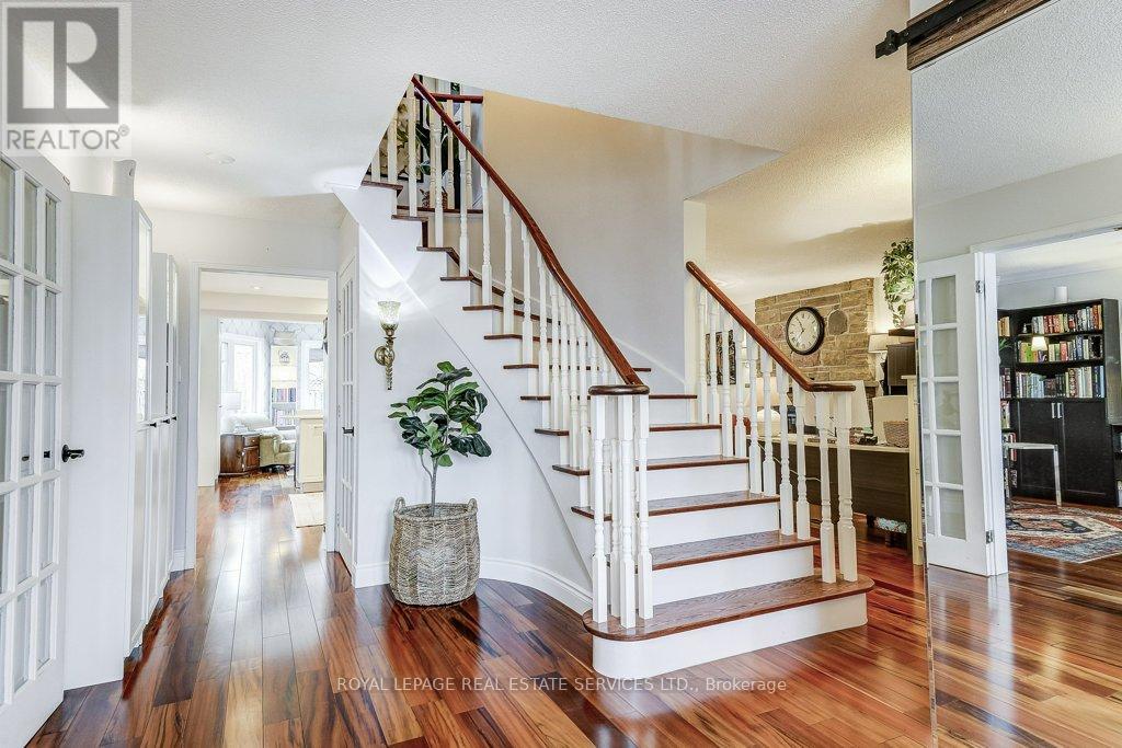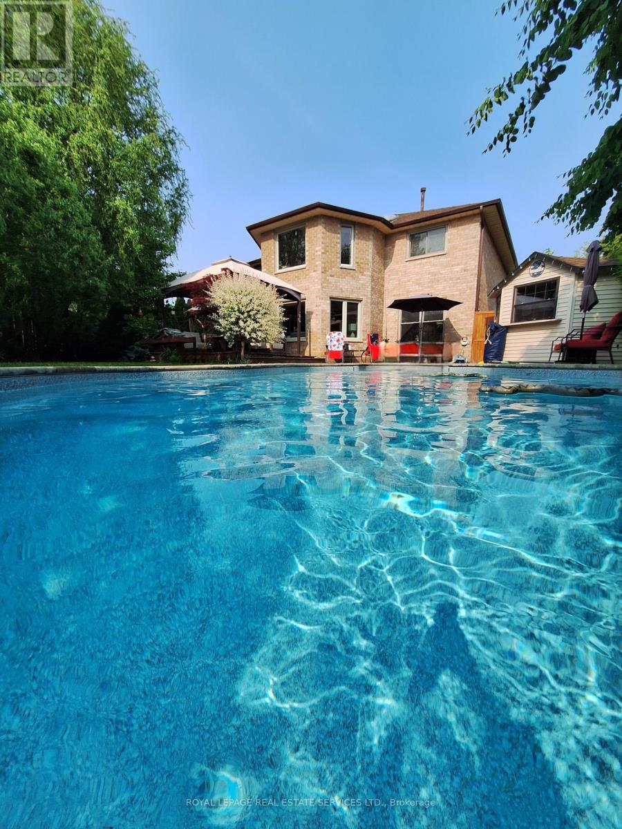 Welcome to 1279 Old English Lane in coveted Glen Abbey area of Central Oakville. Newer Inground Pool set on a breathtaking Pie shaped lot-50 feet of frontage, 148 feet deep-with 93 feet across the back. All private with newer Cedar sun decks, Gazebos, Cabana and luxurious Hot Tub! This 4+1 Bedroom, 4 Bathroom home boasts numerous updates and upgrades throughout! Warm and welcoming All brick exterior, Newer Vinyl windows, Steel insulated Garage doors, Interlocking walkway and front steps invite you inside. Step into the generous foyer with Ample closet and Curved Oak Staircase - nicely refinished. Convenient Garage access and powder room at the door. Rich Tigerwood Hardwood floors flow into the Newer White Kitchen with Quartz Counters, Custom backsplash, garburator and Stainless Appliances open to the main floor Family room and Sun filled Breakfast room - all overlooking your private Garden Oasis! Floor to ceiling Brick wood burning Fireplace in Family room, Separate Dining room, and Living room with double French doors complete the main floor. Massive Primary suite with full ensuite, separate soaker tub and Shower, large Walk in Closet and a separate Sitting Room/Office with another closet! Professionally Finished Lower level Rec Room, Games Room, and a large Bedroom with a 3 piece ensuite Bath accessible from hallway. Newer Furnace, AC and roof with plenty of storage room remaining. Perfect location for all amenities and the best Schools! Hospital, Glen Abbey Rec Centre and all major routes nearby. Great Family friendly Community. (id:43681)