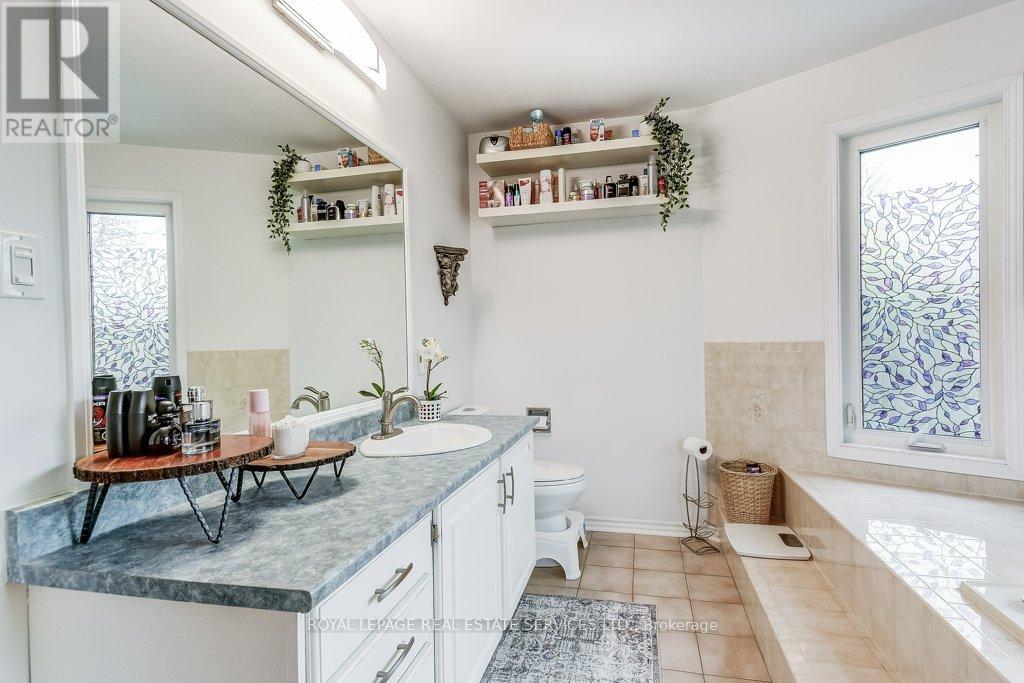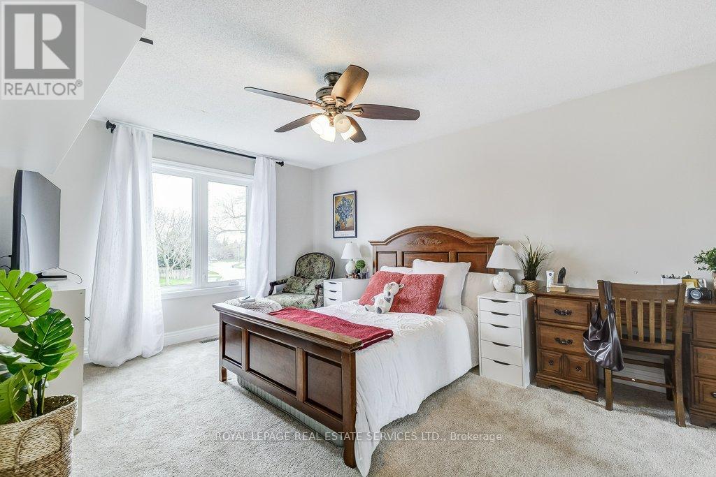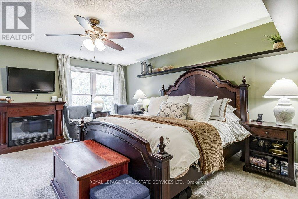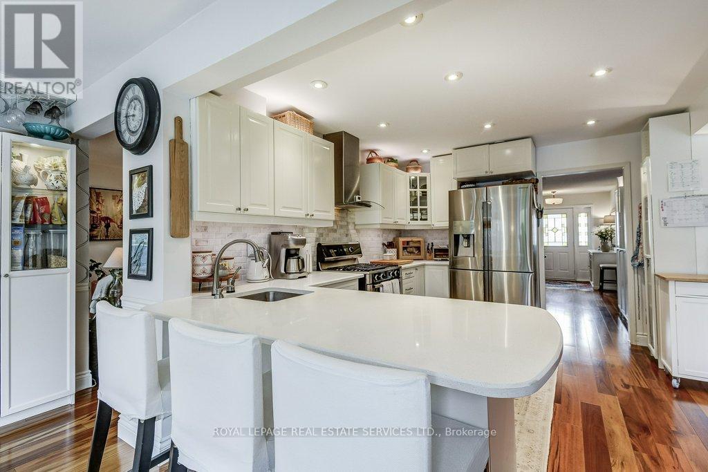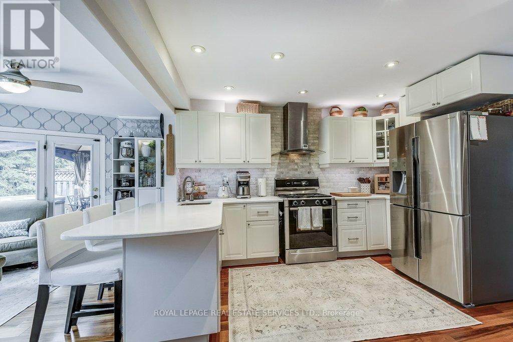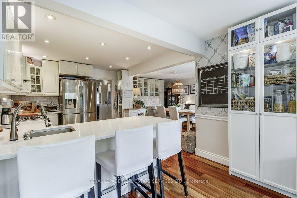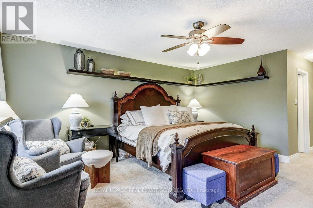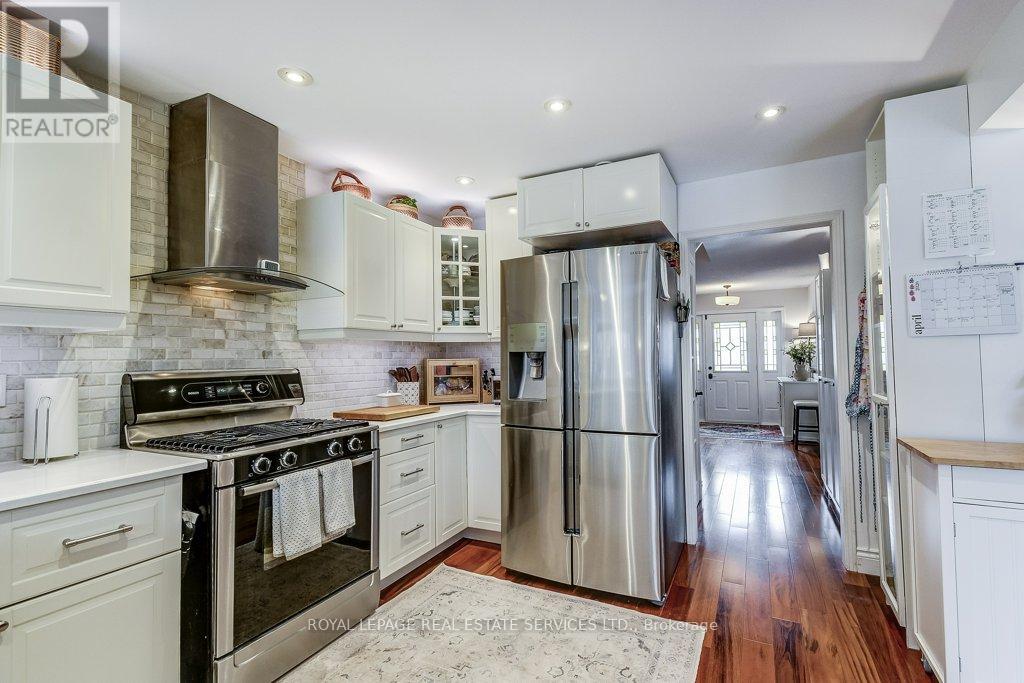 Welcome to 1279 Old English Lane in coveted Glen Abbey area of Central Oakville. Newer Inground Pool set on a breathtaking Pie shaped lot-50 feet of frontage, 148 feet deep-with 93 feet across the back. All private with newer Cedar sun decks, Gazebos, Cabana and luxurious Hot Tub! This 4+1 Bedroom, 4 Bathroom home boasts numerous updates and upgrades throughout! Warm and welcoming All brick exterior, Newer Vinyl windows, Steel insulated Garage doors, Interlocking walkway and front steps invite you inside. Step into the generous foyer with Ample closet and Curved Oak Staircase - nicely refinished. Convenient Garage access and powder room at the door. Rich Tigerwood Hardwood floors flow into the Newer White Kitchen with Quartz Counters, Custom backsplash, garburator and Stainless Appliances open to the main floor Family room and Sun filled Breakfast room - all overlooking your private Garden Oasis! Floor to ceiling Brick wood burning Fireplace in Family room, Separate Dining room, and Living room with double French doors complete the main floor. Massive Primary suite with full ensuite, separate soaker tub and Shower, large Walk in Closet and a separate Sitting Room/Office with another closet! Professionally Finished Lower level Rec Room, Games Room, and a large Bedroom with a 3 piece ensuite Bath accessible from hallway. Newer Furnace, AC and roof with plenty of storage room remaining. Perfect location for all amenities and the best Schools! Hospital, Glen Abbey Rec Centre and all major routes nearby. Great Family friendly Community. (id:43681)