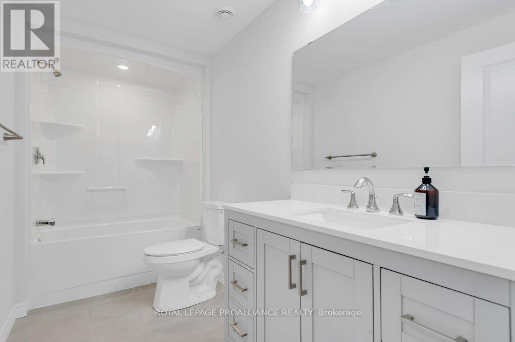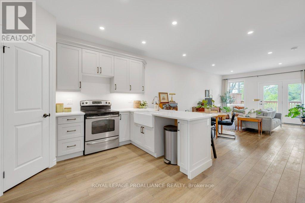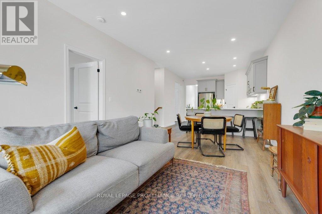 Nestled in the heart of the charming village of Stirling, this newly built town-home offers the perfect blend of modern comfort & peaceful living. Step inside to a bright, inviting open-concept layout that seamlessly connects the living, dining, and kitchen areas-ideal for entertaining or enjoying quiet evenings at home. large windows fill the space with natural light while offering tranquil views of the lush green space behind the property. The kitchen is thoughtfully designed for both function and style, featuring ample cabinetry, sleep countertops, a convenient pantry, and a layout that makes everyday cooking and entertaining effortless. The adjacent dining area provides the perfect setting for family meals or cozy gatherings, overlooking the beautifully fenced backyard and surrounding natural greenery. The main level offers two spacious bedrooms, including a private primary suite compete with its own well-appointed en-suite. The fully finished lower level adds even more living space with a third bedroom, making it ideal for guests, extended family, or a home office. With three bathrooms in total, the home provides comfort and convenience for both family and visitors. Additional features include main-floor laundry, a single-car garage with inside entry, and an HRV system that enhances air quality and energy efficiency. Step outside to enjoy summer evenings in the private fenced backyard, complete with a natural gas BBQ hookup and plenty of room for entertaining, pets or gardening. Located in a welcoming village known for its strong sense of community, excellent schools, scenic parks, and convenient local amenities, this beautiful town-home offers the best of modern living in a picturesque small-town setting. (id:43681)