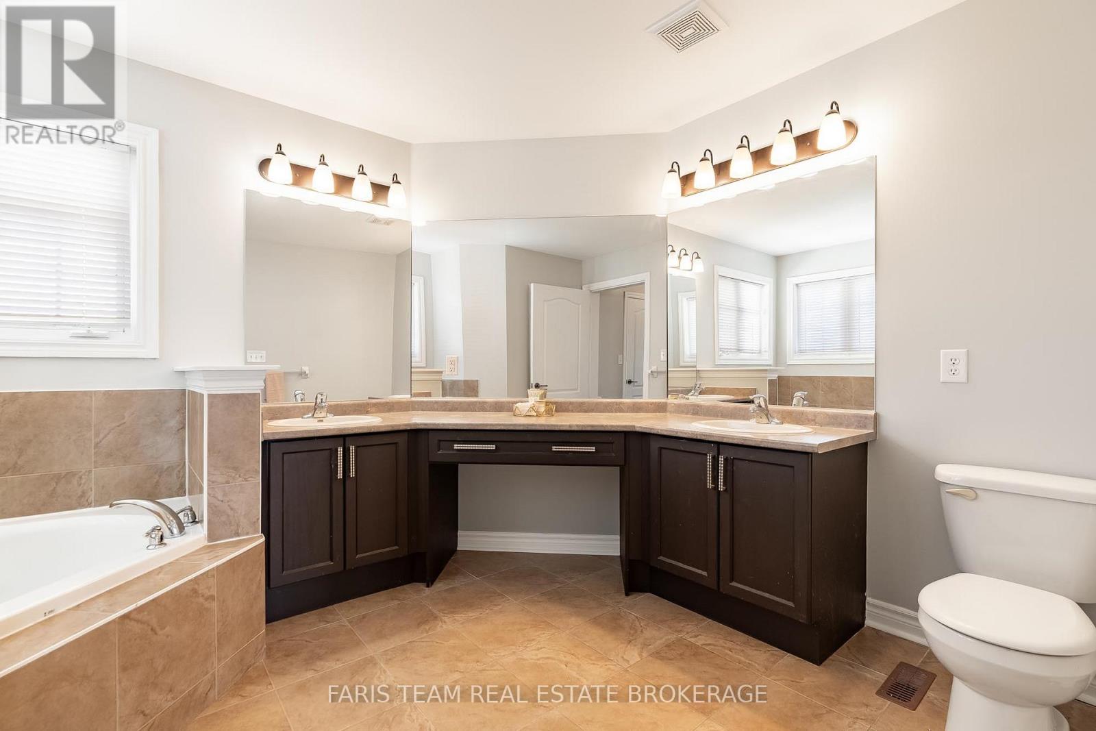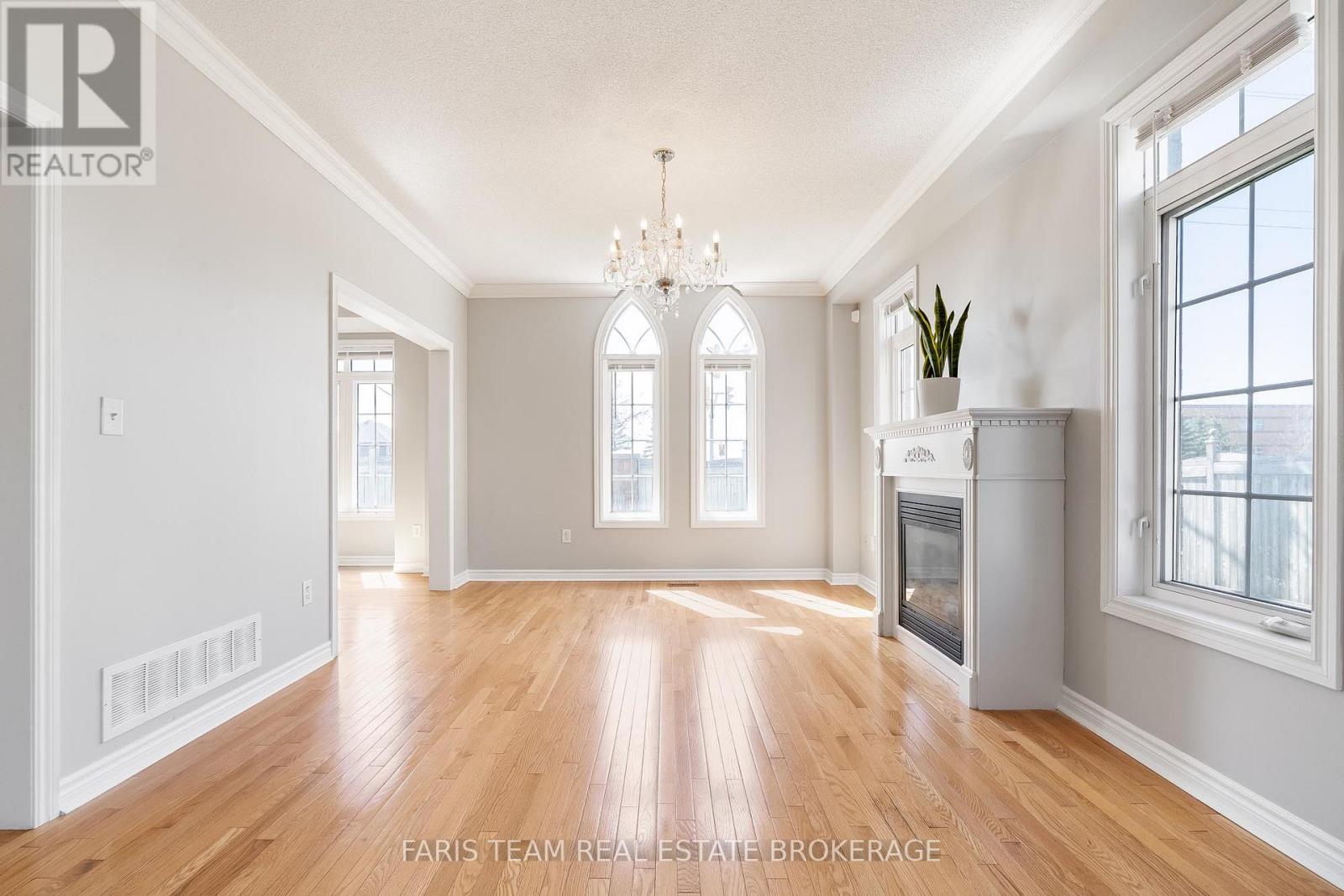 Top 5 Reasons You Will Love This Home: 1) Thoughtfully designed, the main level offers a bright and functional layout featuring a versatile front room that can easily serve as a home office, formal sitting area, playroom, or even a main level bedroom if needed, complemented by a separate dining space and an inviting open-concept living room with a cozy gas fireplace 2) Updated kitchen showcasing crisp white cabinetry, granite countertops, and a walkout to the backyard, creating a practical yet stylish space that connects seamlessly with the main living areas for everyday comfort and entertaining 3) Upstairs, four generously sized bedrooms provide plenty of room for the whole family, including a spacious primary retreat with a large ensuite featuring dual sinks and separate closets, along with a second bedroom offering its own private ensuite and an additional full bathroom for added convenience 4) Hardwood flooring flows throughout most of the home, while a double car garage and an unfinished basement offer excellent potential to expand and customize additional living space to suit your needs 5) Ideally located in a desirable neighbourhood close to the Barrie South GO station, Friday Harbour, top-rated schools, parks, and everyday amenities. 2,515 above grade sq.ft. plus an unfinished basement. *Please note some images have been virtually staged to show the potential of the home. (id:43681)