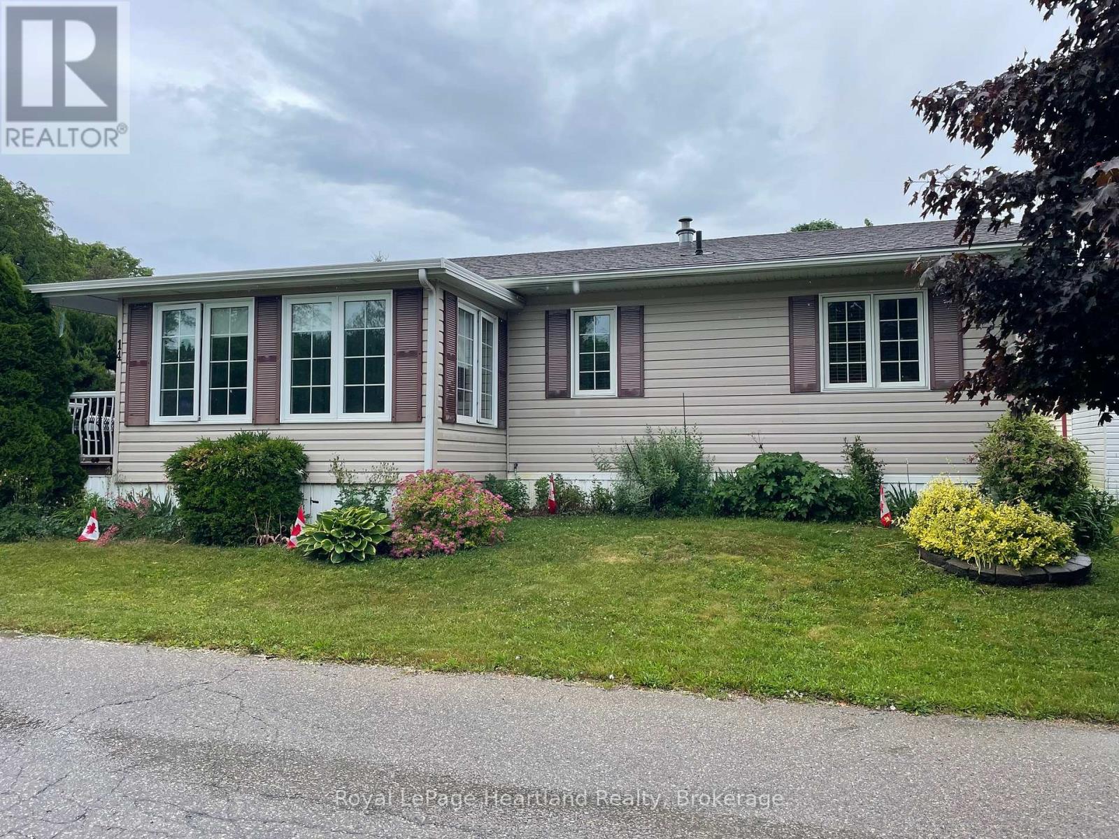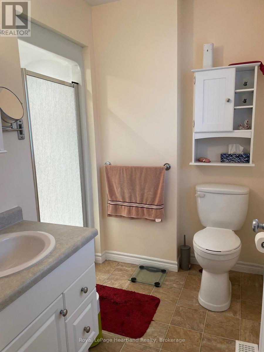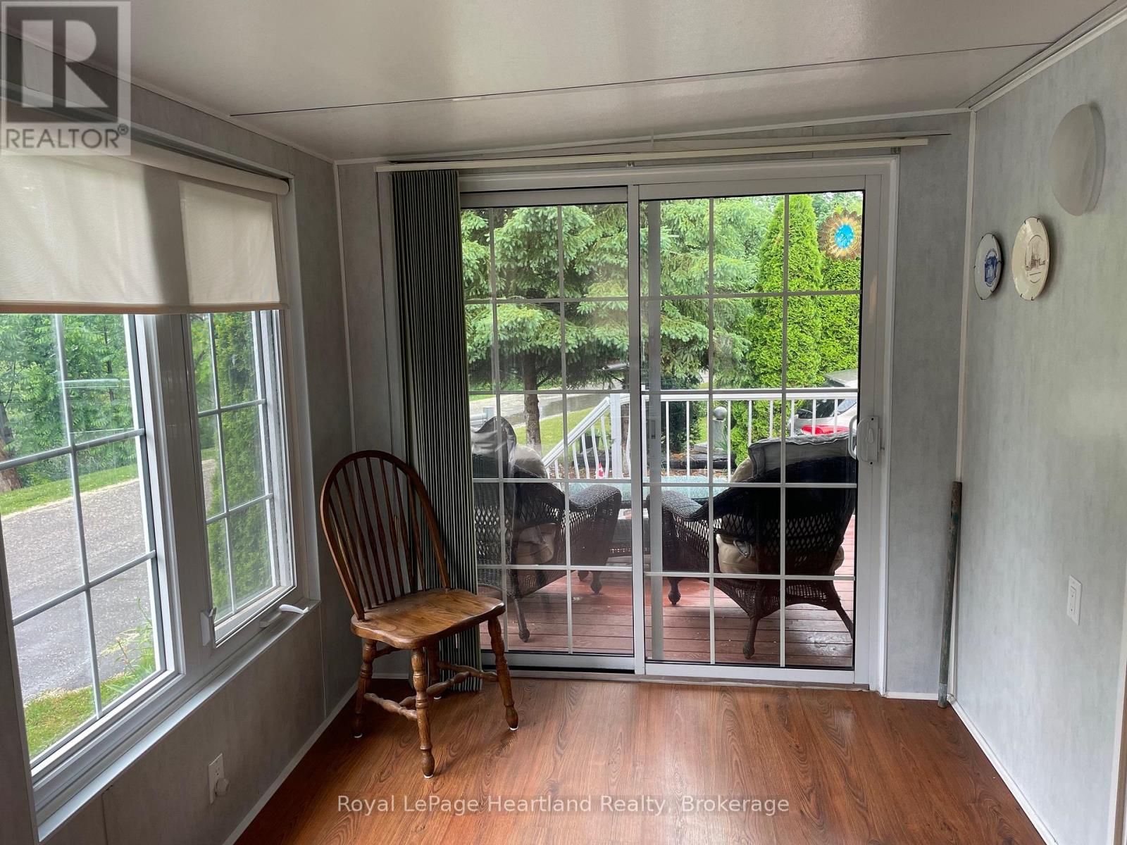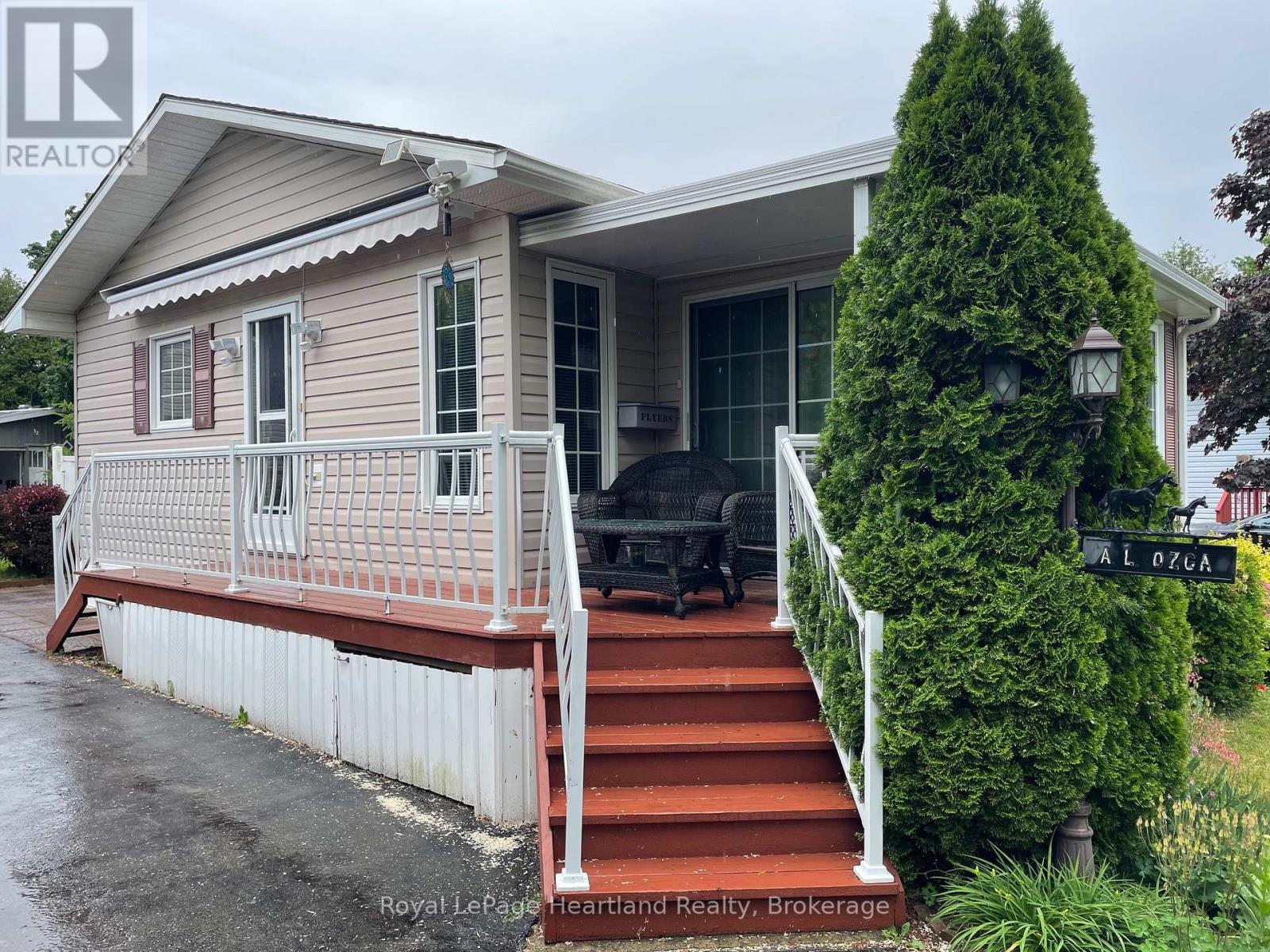 Desirable, carefree, low maintenance Royal Home is now available, consisting of 1122 sq. ft, of living space! This well-maintained 2-bedroom, 2-bathroom home features a fantastic floor plan, including the large kitchen with ample cabinetry with dining area and room for your sideboard. Footsteps off the kitchen and dining area you will find a separate laundry room for added convenience. The spacious primary suite with a 3-piece ensuite, walk-in closet, and room for a king-sized bed and your bedroom furnishings.. Enjoy your morning coffee in the bright 3-season sunroom at the front of the home. Outside, you"ll find a paved driveway, an oversized garage with electricity, beautiful perennial gardens, and views of a peaceful creek with mature trees. Located in a family friendly land lease community, offering a clubhouse and in-ground pool. Just minutes to the Town of Goderich, sandy beaches, golf courses, and unforgettable Lake Huron sunsets! (id:43681)