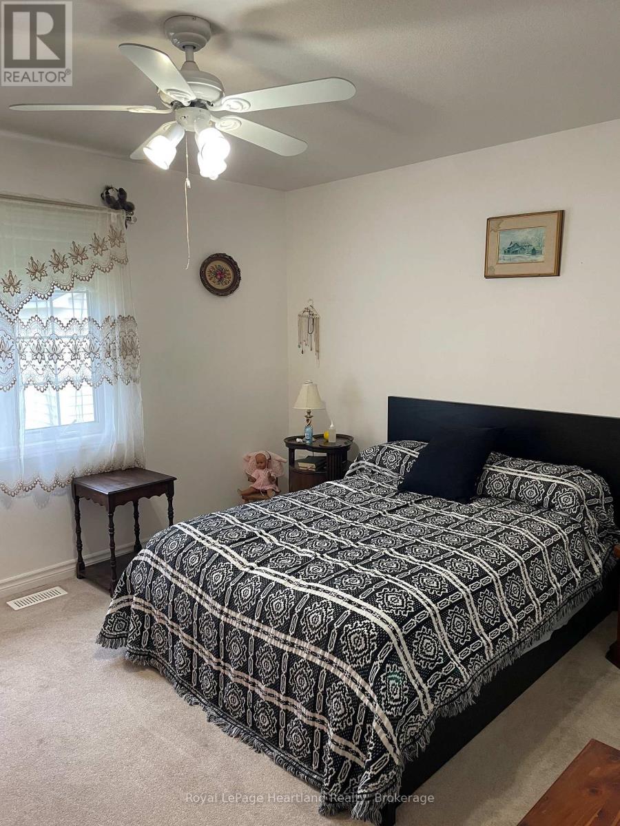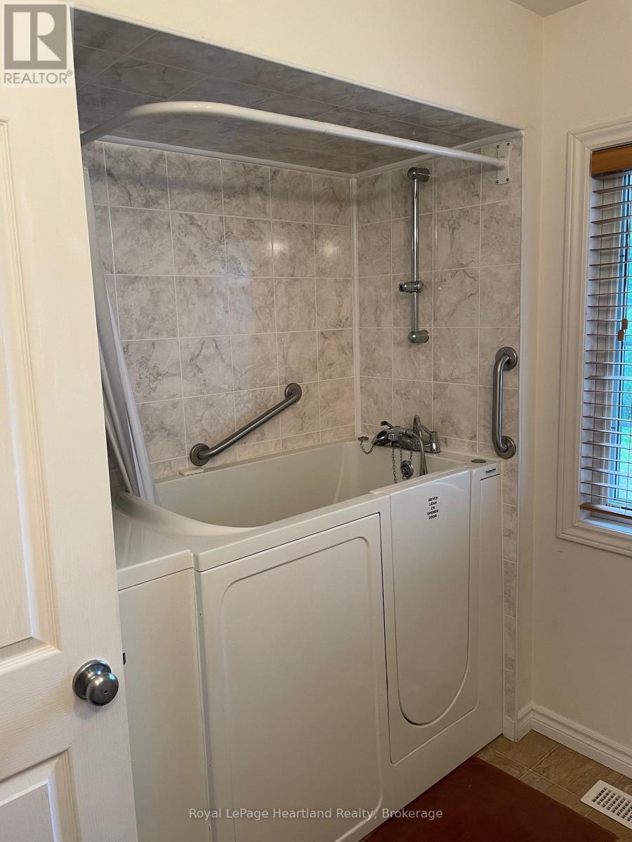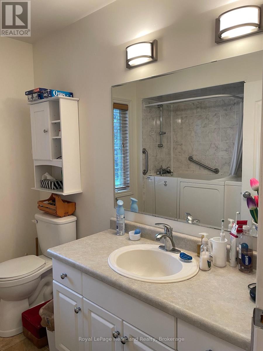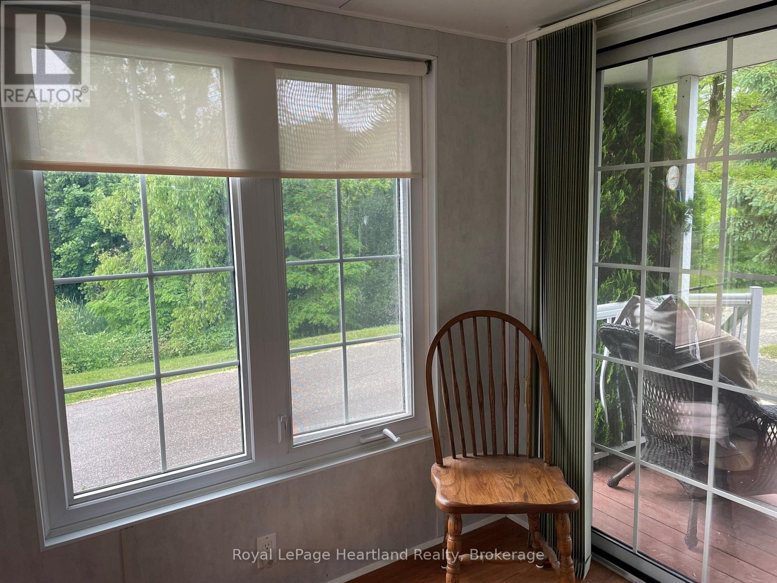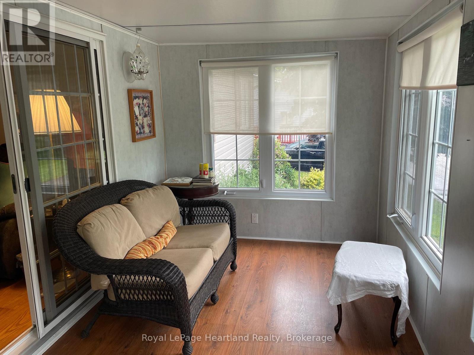 Desirable, carefree, low maintenance Royal Home is now available, consisting of 1122 sq. ft, of living space! This well-maintained 2-bedroom, 2-bathroom home features a fantastic floor plan, including the large kitchen with ample cabinetry with dining area and room for your sideboard. Footsteps off the kitchen and dining area you will find a separate laundry room for added convenience. The spacious primary suite with a 3-piece ensuite, walk-in closet, and room for a king-sized bed and your bedroom furnishings.. Enjoy your morning coffee in the bright 3-season sunroom at the front of the home. Outside, you"ll find a paved driveway, an oversized garage with electricity, beautiful perennial gardens, and views of a peaceful creek with mature trees. Located in a family friendly land lease community, offering a clubhouse and in-ground pool. Just minutes to the Town of Goderich, sandy beaches, golf courses, and unforgettable Lake Huron sunsets! (id:43681)