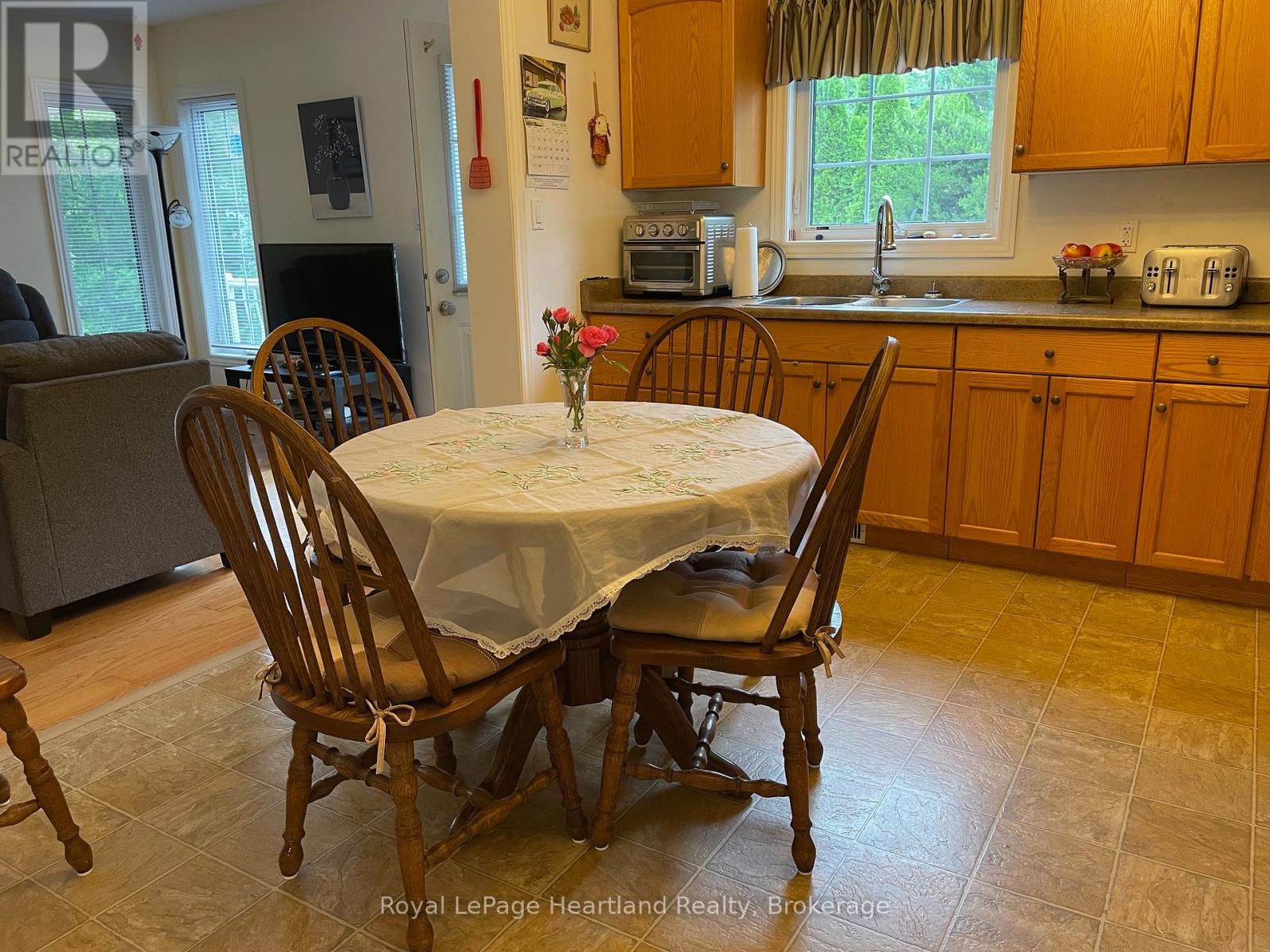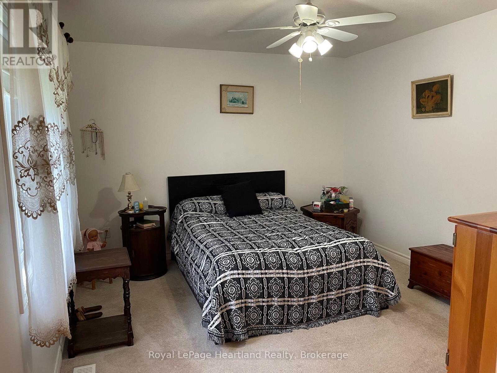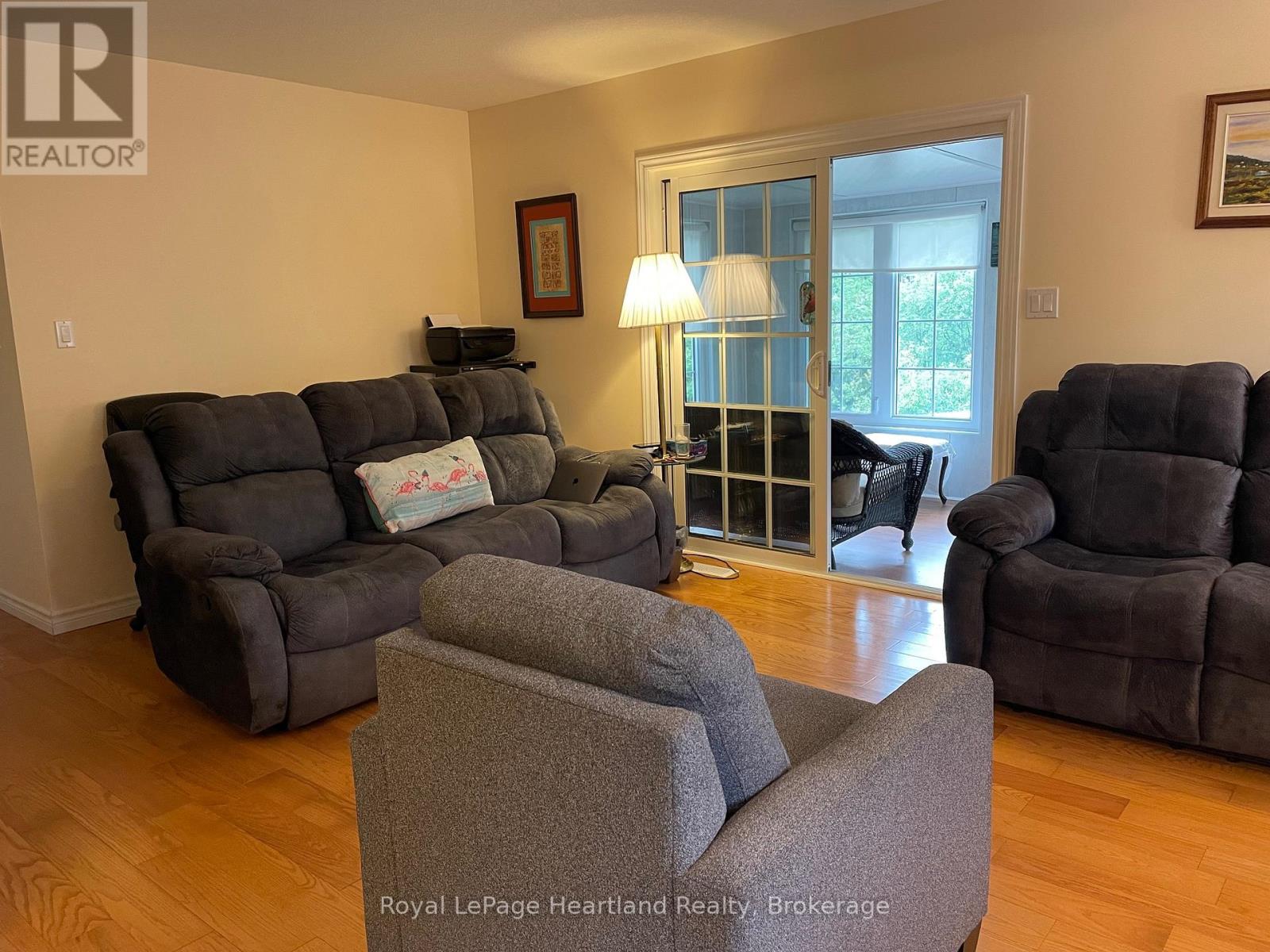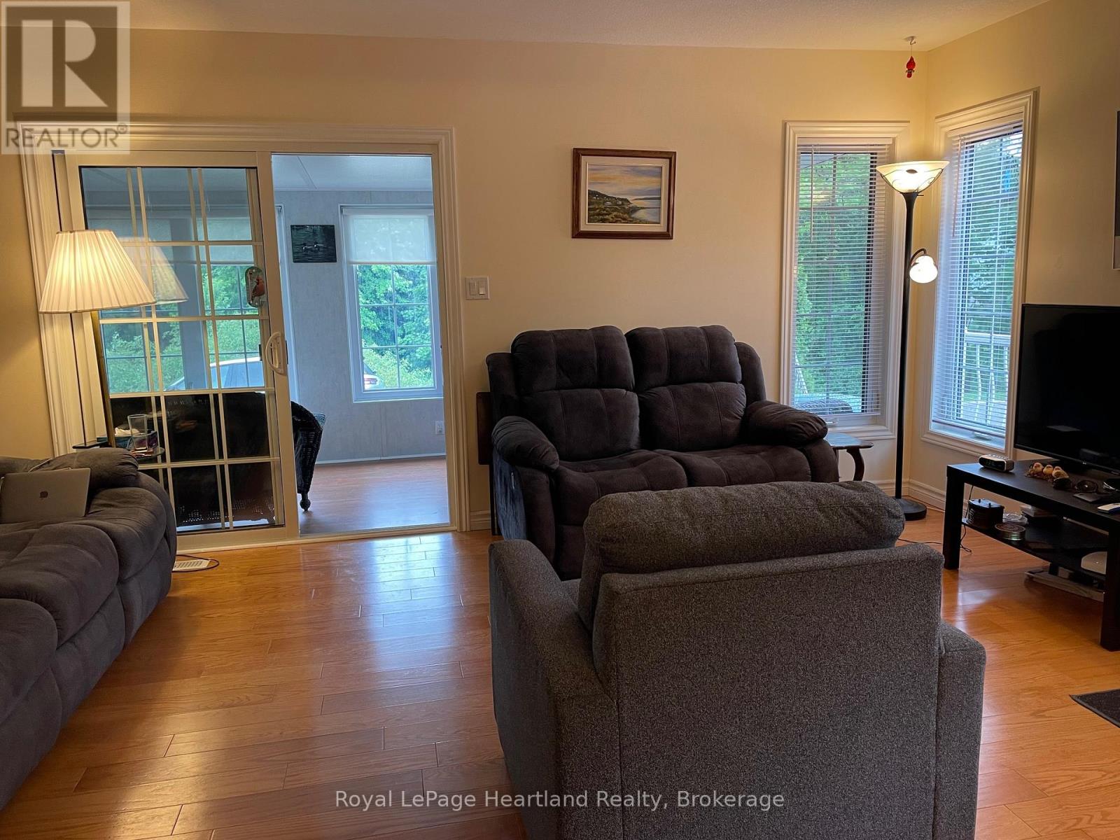 Desirable, carefree, low maintenance Royal Home is now available, consisting of 1122 sq. ft, of living space! This well-maintained 2-bedroom, 2-bathroom home features a fantastic floor plan, including the large kitchen with ample cabinetry with dining area and room for your sideboard. Footsteps off the kitchen and dining area you will find a separate laundry room for added convenience. The spacious primary suite with a 3-piece ensuite, walk-in closet, and room for a king-sized bed and your bedroom furnishings.. Enjoy your morning coffee in the bright 3-season sunroom at the front of the home. Outside, you"ll find a paved driveway, an oversized garage with electricity, beautiful perennial gardens, and views of a peaceful creek with mature trees. Located in a family friendly land lease community, offering a clubhouse and in-ground pool. Just minutes to the Town of Goderich, sandy beaches, golf courses, and unforgettable Lake Huron sunsets! (id:43681)