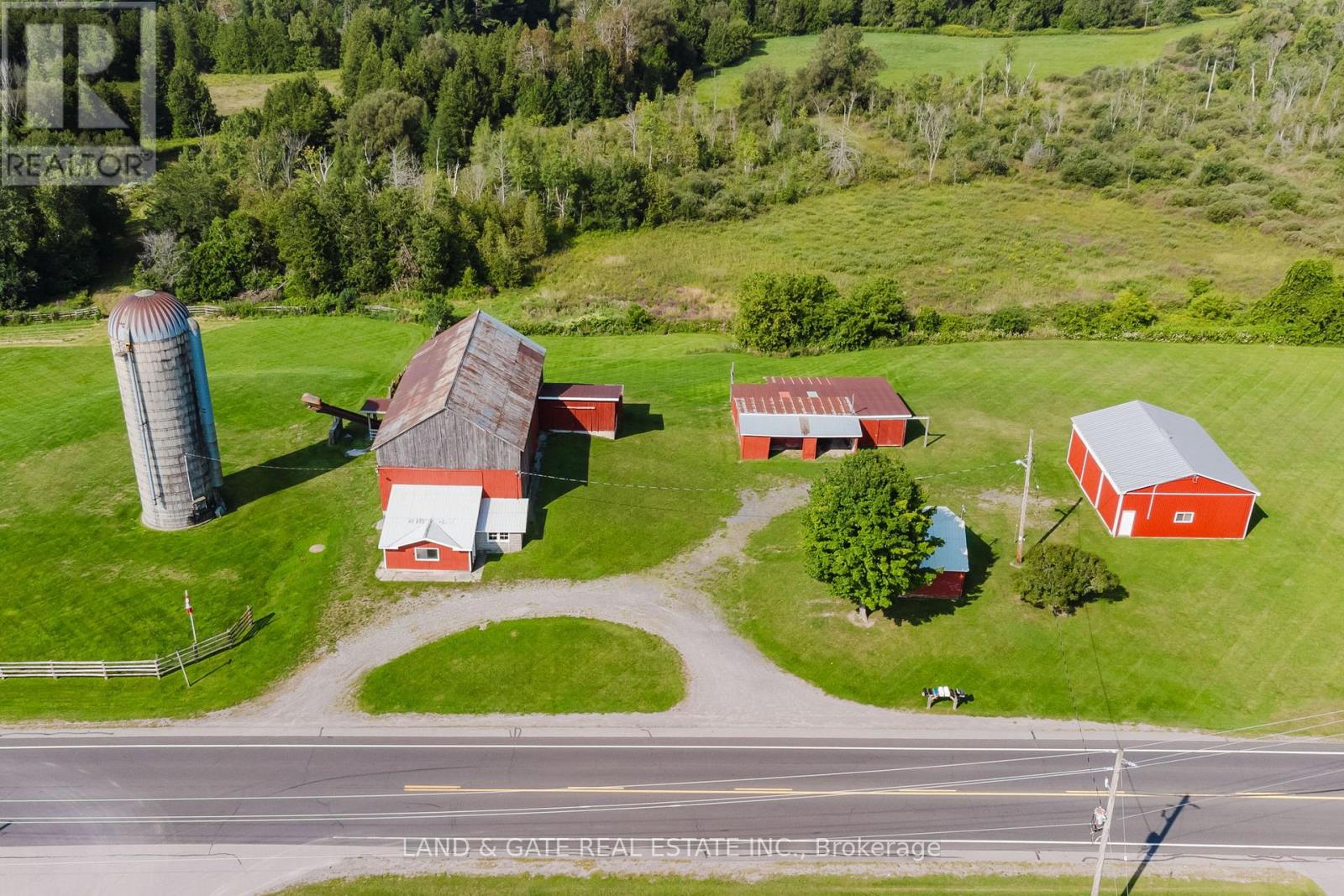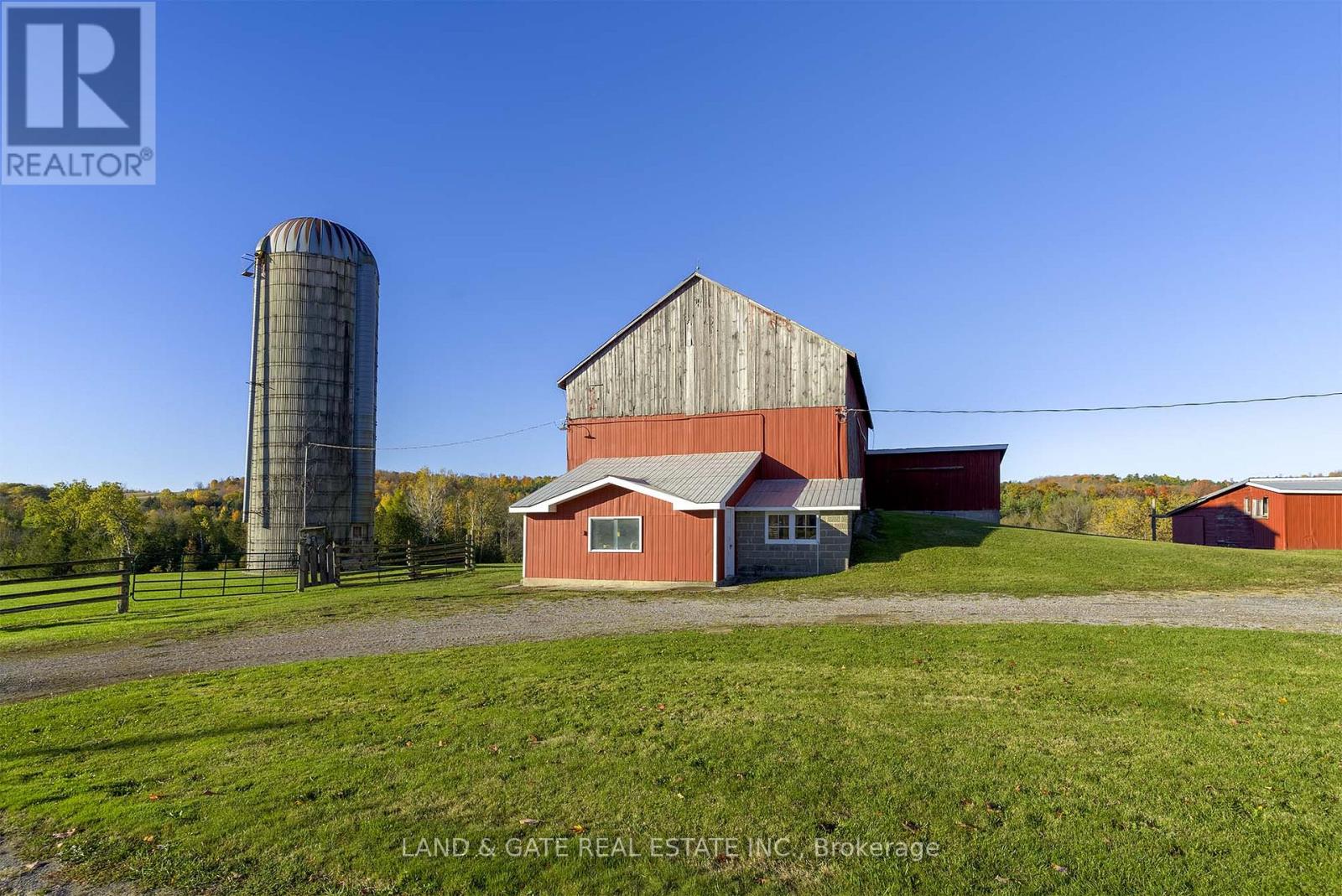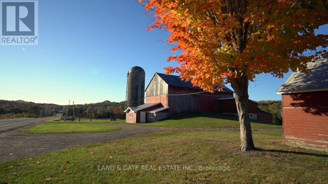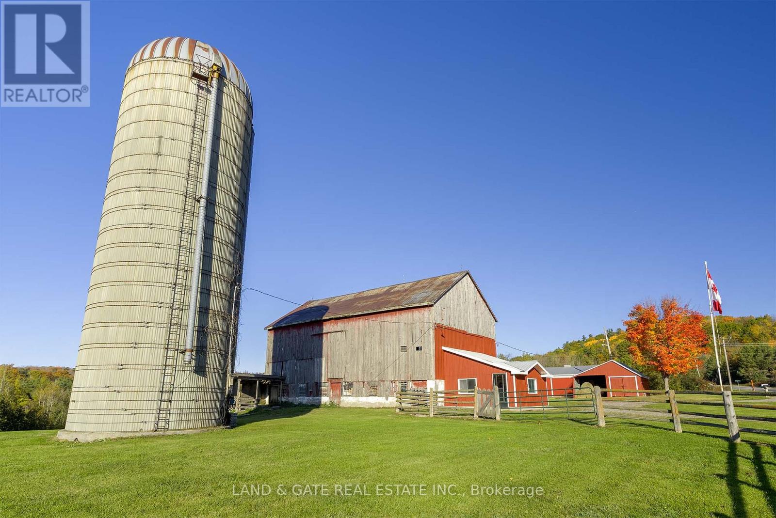 Situated in the picturesque rolling hills of Northumberland County, just north of Grafton, lies a breathtaking 257+ acre farm that offers the perfect blend of productive farmland and serene natural beauty. This expansive property boasts stunning views of the surrounding countryside, making it an ideal retreat for those seeking both a working farm and a peaceful rural escape. The farm features a large, well-maintained bank barn with an attached milk house, three drive sheds, and a silo all serviced by centralized metering with a 200-amp service to the main barn. The infrastructure is well-equipped to support both crop and livestock farming, offering ample space for storage and operations .Nature lovers will appreciate the property's ponds, one of which is man-made, and the meandering stream that winds through the landscape, eventually joining Shelter Valley Creek. Approximately 75 acres of fertile crop land are under cultivation and an added 15 acres being used for hay crop, while the remaining acreage is graced by a network of trails that weave through the hardwood forest, perfect for exploring on foot, horseback, or ATV. Zoned partially for rural use (RU), this property also presents an excellent opportunity to build your dream home, pending final township and conservation approval. With its mix of workable land, natural water features, and forested areas, this farm is an unparalleled setting for both agricultural pursuits and country living. Experience the best of both worlds, productive farming and tranquil countryside, living on this extraordinary 257+ acre property. Whether you're looking to expand your farming operations or build a new home surrounded by nature, this Northumberland County gem offers endless possibilities. Don't miss the chance to own a piece of Ontario's finest rural landscape. **EXTRAS** Central metering w/200amp for main barn, 100amp to both drive sheds along with 30amp ponie to remaining building. There's an existing well on the property (id:43681)
