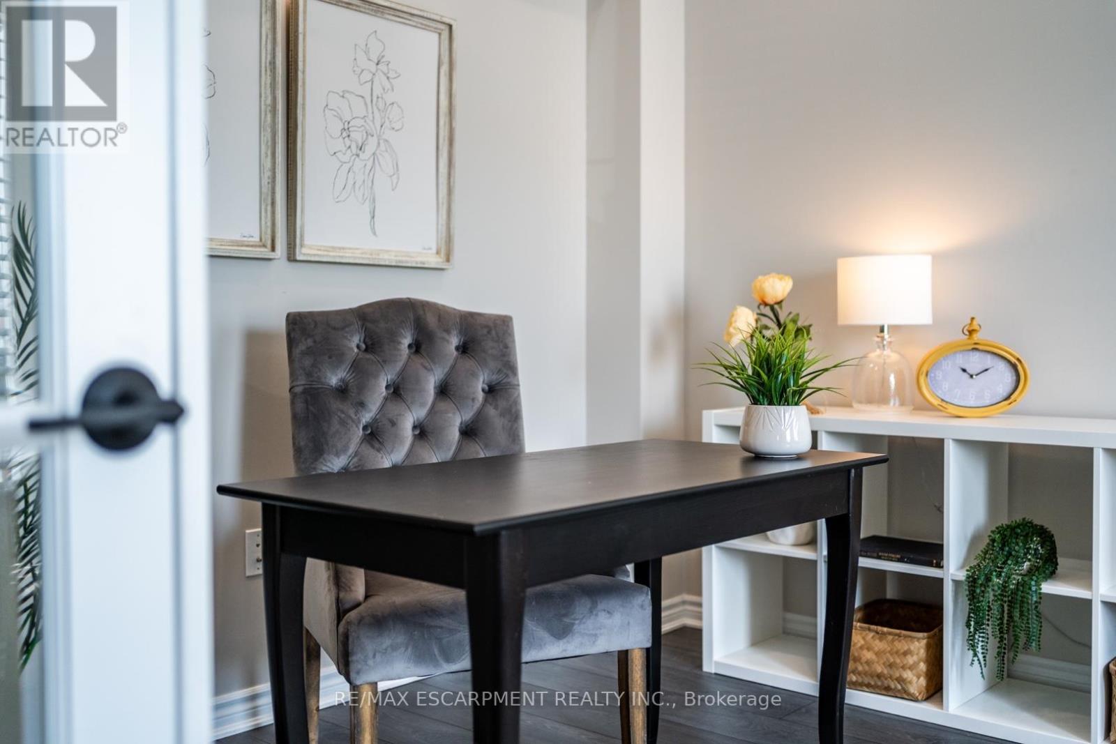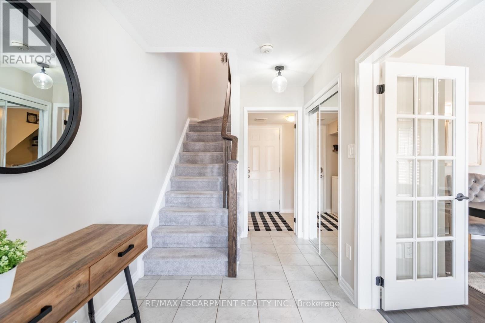 Discover incredible value in Waterdown with over 1,700 square feet of living space and a double-car garage! Welcome to 15-230 Avonsyde Boulevard, where modern style meets tranquil surroundings. The main level features a spacious, light-filled den ideal as a home office, kids playroom or even a fourth bedroom. Enjoy the convenience of direct access to the double garage, along with a well-appointed laundry room that completes this functional and versatile space. On the second floor, the spacious and sunlit eat-in kitchen, featuring ample storage, stainless-steel appliances and a sliding door that opens to your private terrace overlooking peaceful greenspace. Adjacent to the kitchen is a fantastic family room with large windows that fill the space with natural light. A stylish two-piece powder room completes this beautifully designed level. The upper level offers a relaxing primary suite, complete with a private three-piece ensuite and a generous walk-in closet. Two additional well-sized bedrooms and a full bathroom complete the third floor, providing comfort and space for the whole family. A private driveway and two garage spaces offer parking for three vehicles a welcome convenience for busy households. This is a rare opportunity to own in the desirable Waterdown community at a price point that fits your budget and checks all your boxes. RSA. (id:43681)