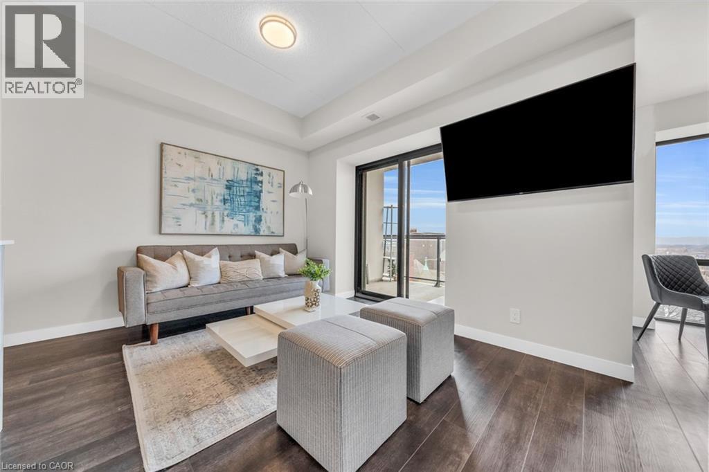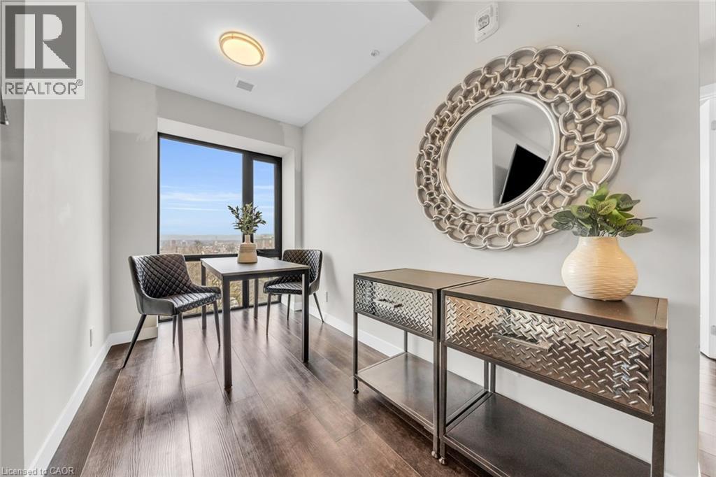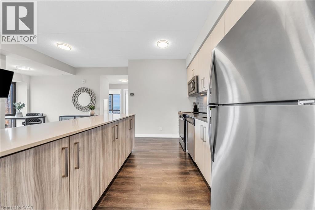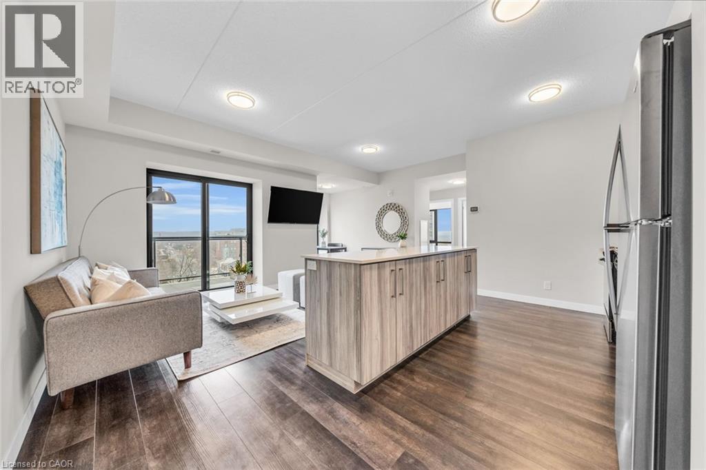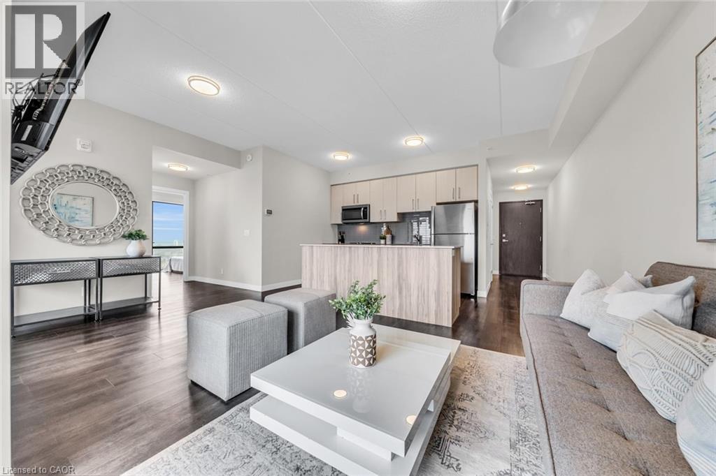 Welcome to unit #807 at Platinum Condos in the Heart of Hamilton. This “Zurich” model is 894 square feet featuring 2 Bedrooms + Den and 2 full bathrooms. Walking into the foyer of the unit you have a large closet as well as your stackable washer and dryer. Off the foyer you have your open concept floor plan featuring your kitchen with large island and stainless-steel appliances. This is open to your living room with sliding glass doors that lead out to your private terrace. Off the living room and kitchen, you have a den/workspace or a dining area. The primary bedroom features large windows looking out to Lake Ontario as well as a 3-piece ensuite. The second bedroom is at the corner of the unit, so you have windows facing Lake Ontario as well as Dundas Peak. Off the second bedroom you have a 4-piece bathroom. Platinum Condos is just steps to Hess Street, Locke Street, James Street, restaurants, coffee shops,, public transit, and all other amenities. (id:43681)