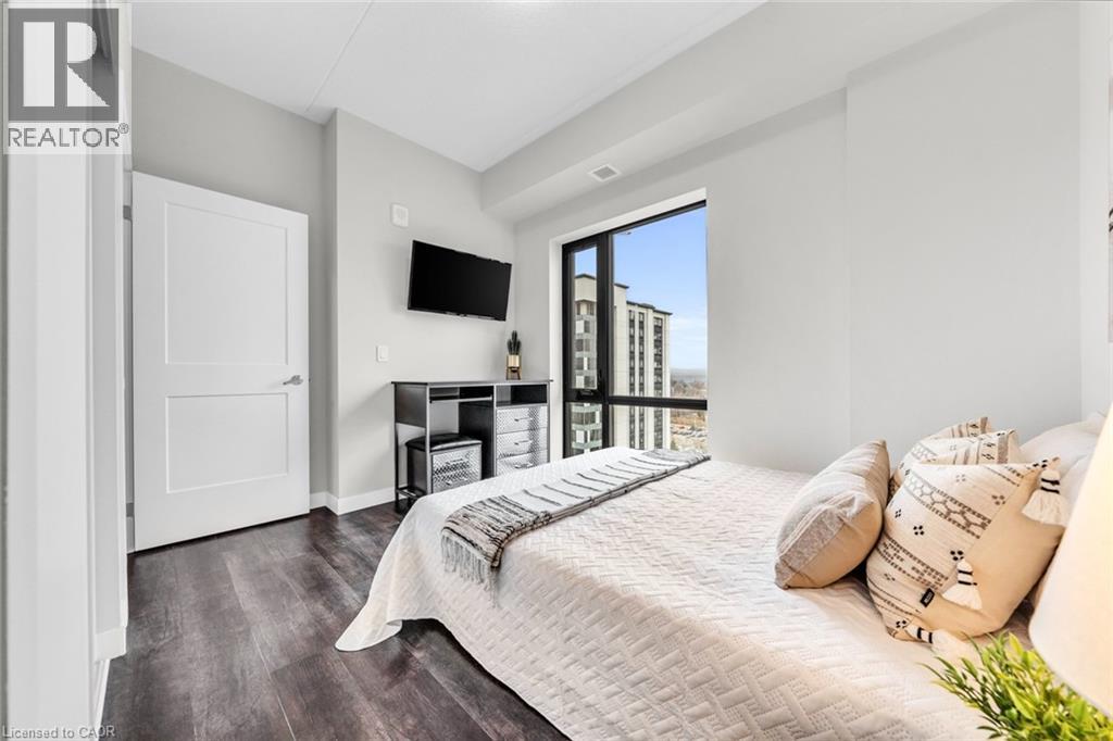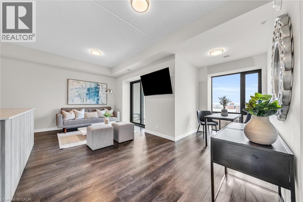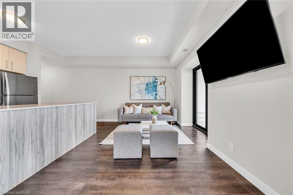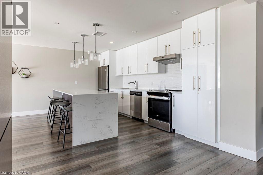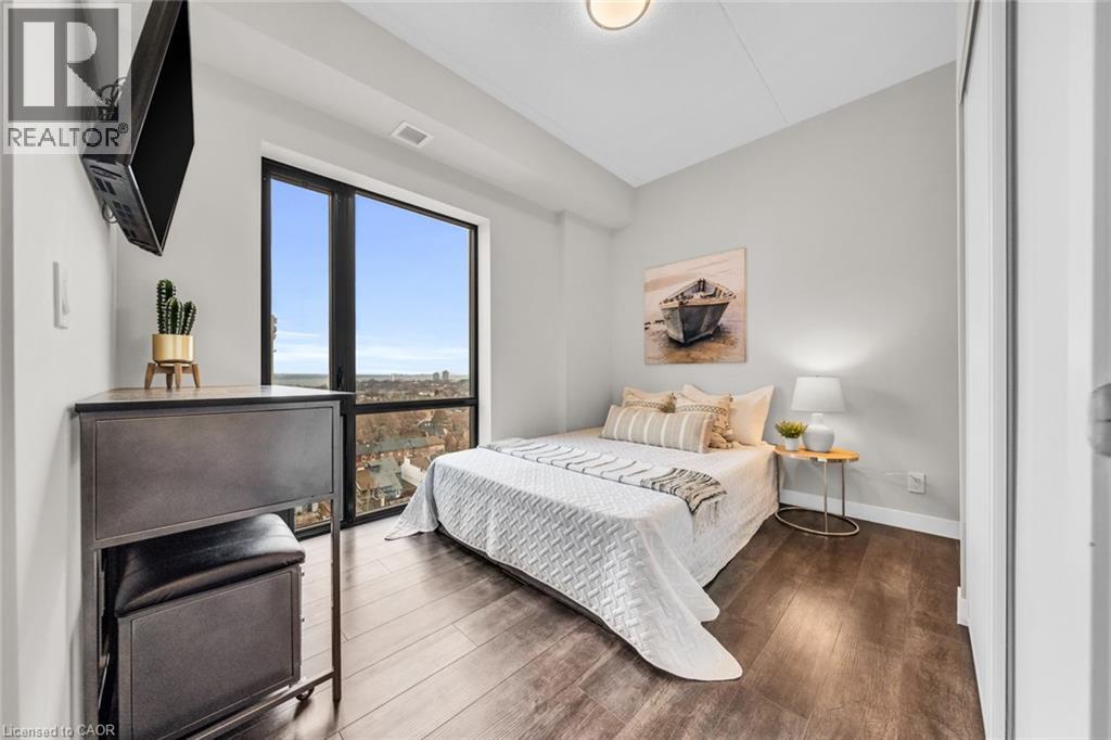 Welcome to unit #807 at Platinum Condos in the Heart of Hamilton. This “Zurich” model is 894 square feet featuring 2 Bedrooms + Den and 2 full bathrooms. Walking into the foyer of the unit you have a large closet as well as your stackable washer and dryer. Off the foyer you have your open concept floor plan featuring your kitchen with large island and stainless-steel appliances. This is open to your living room with sliding glass doors that lead out to your private terrace. Off the living room and kitchen, you have a den/workspace or a dining area. The primary bedroom features large windows looking out to Lake Ontario as well as a 3-piece ensuite. The second bedroom is at the corner of the unit, so you have windows facing Lake Ontario as well as Dundas Peak. Off the second bedroom you have a 4-piece bathroom. Platinum Condos is just steps to Hess Street, Locke Street, James Street, restaurants, coffee shops,, public transit, and all other amenities. (id:43681)