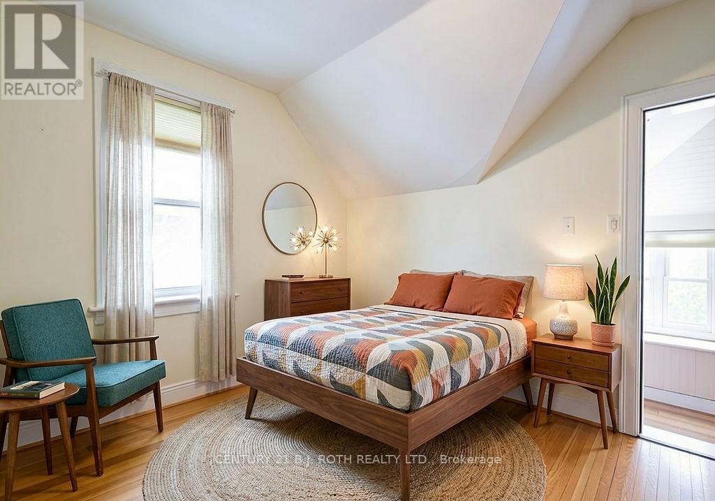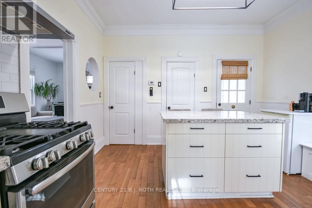 This beautifully updated 2 storey residence blends timeless charm with modern comfort. Highlights include a striking stucco exterior, durable steel roof, vinyl replacement windows, and a renovated kitchen featuring granite countertops with central island, fully renovated 4pc bathroom, and a primary suite which offers new custom cabinetry in a spacious walk-in closet. Enjoy the convenience of main-floor laundry, gas furnace and A/C, along with refinished oak floors and preserved original trim and doors. Situated on a private, treed 66 x 132 ft lot, the fenced backyard offers a peaceful retreat complete with an adorable studio space. Located just steps from Elmvale's welcoming amenities-library, schools, playground, grocery store, LCBO, bakery, restaurants, and boutiques-you'll love the small-town feel with vibrant appeal. (id:43681)