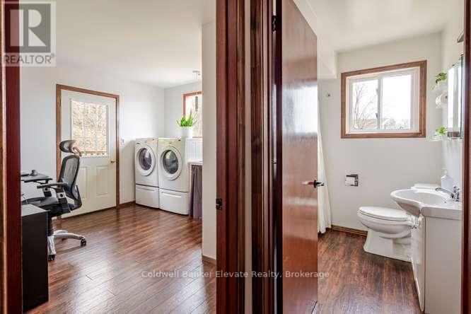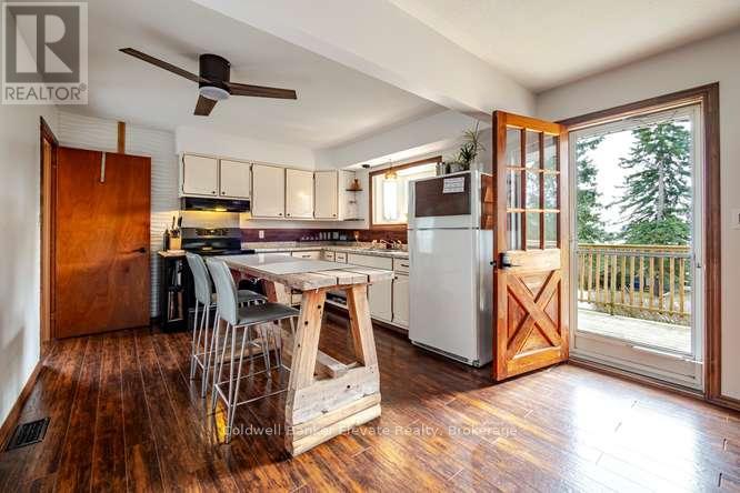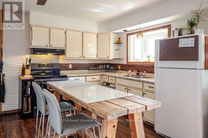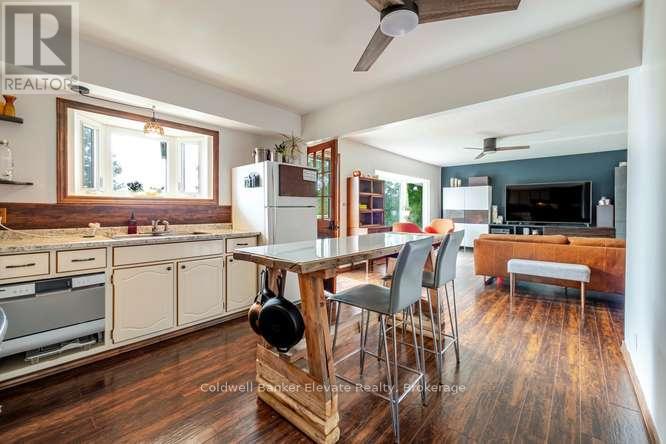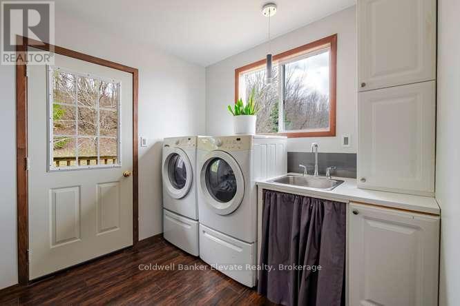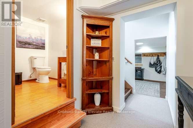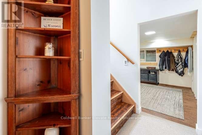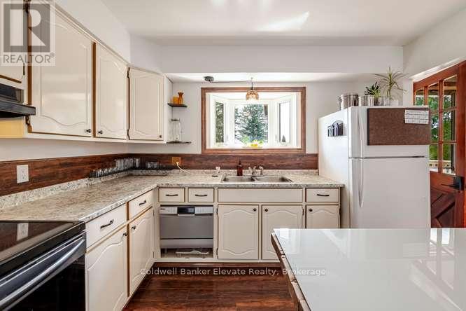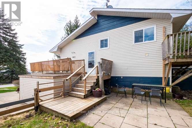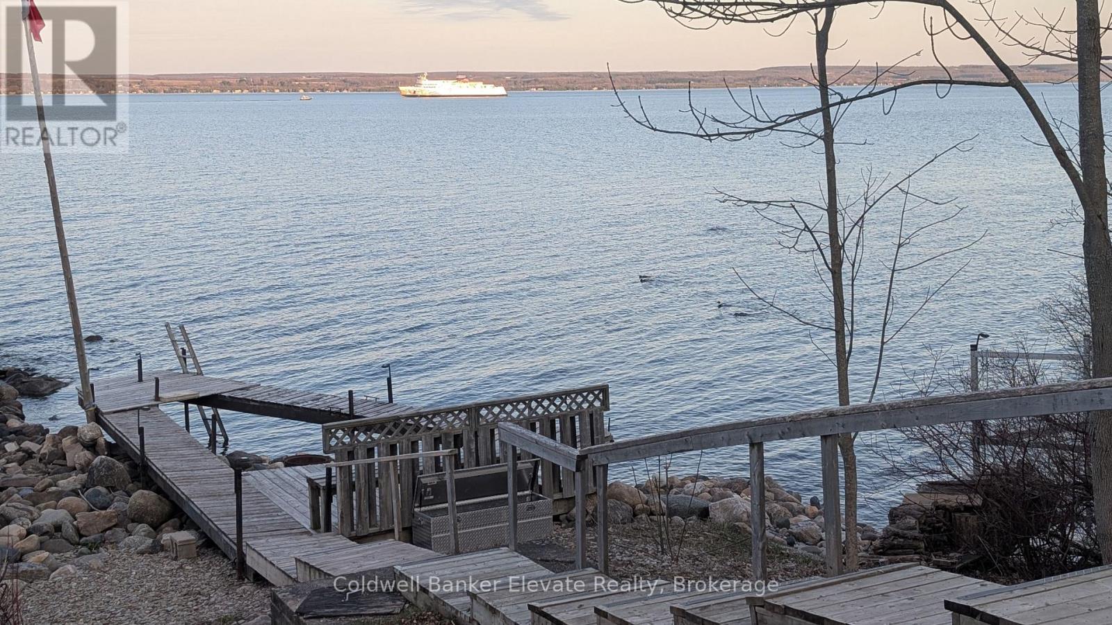 The Niagara Escarpment at your back, Georgian Bay views out your front window, and an established dock less than 200 yards away. This is the one that checks every box. Set in one of Grey County's quietest and most desirable lakeside communities, this solid early-1970s raised bungalow offers year-round bay views, complete rear privacy with no neighbours and no future development - and a lifestyle most people spend decades waiting for. Inside, an open-concept main level with quality floors, large windows, and three well-sized bedrooms flows naturally for everyday living and entertaining. The functional kitchen connects seamlessly to dining and living areas. Main-floor flex space includes the raised washer and dryer for easy laundry days. Bright, comfortable, and move-in ready.The finished basement includes new carpet, oversized ground-level windows, and a private walk-out entrance under the covered deck. In-law suite, rental income, extended family. Ready to make your own.A covered winter entrance leads into a generous mudroom built for Grey County life. Outside: a large deck for table, chairs and lounge furniture with open water views, a 1.5-car garage with EV charging, concrete driveway, and 7 car parking for vehicles, guests, and gear. Indoor and outdoor storage a plenty. Steps from Sutacriti Park. Minutes from Cobble Beach Golf Resort, hiking trails, and marinas. Owen Sound's full amenities within 20 minutes.No waterfront taxes or additional insurance. All the life. (id:43681)