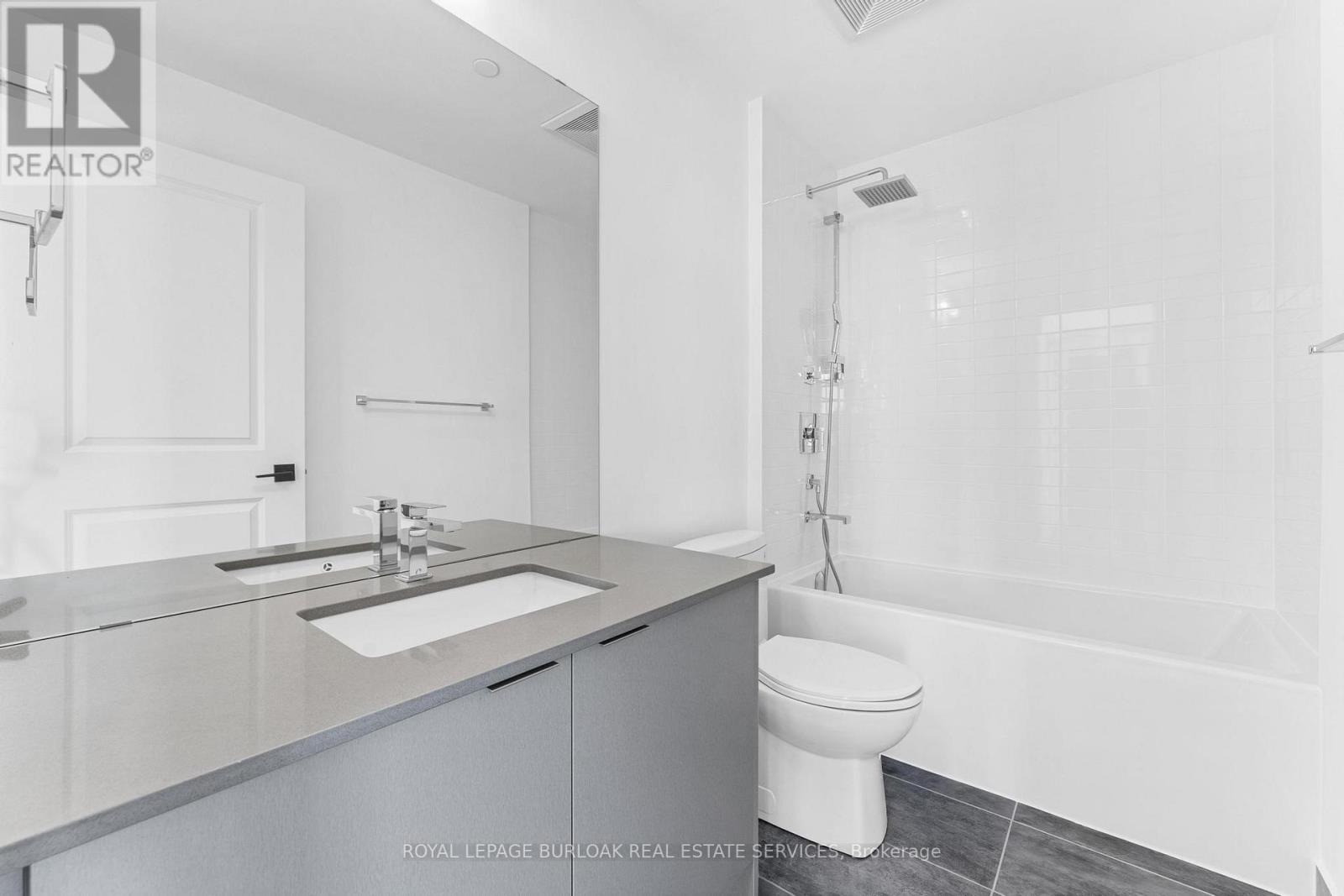 Stunning upgraded 2-bedroom, 2-bathroom condo in the highly sought-after Oak & Co community in Uptown Oakville. This modern unit features an open-concept layout with sleek finishes, including stainless steel appliances with integrated fridge and dishwasher. Spacious primary bedroom boasts a large closet and private ensuite. Parking and locker included for added convenience. Fantastic location steps to shops, restaurants, transit, parks, and all amenities, with easy access to major highways. Ideal for professionals, downsizers, or investors seeking style, comfort, and an unbeatable location. (id:43681)