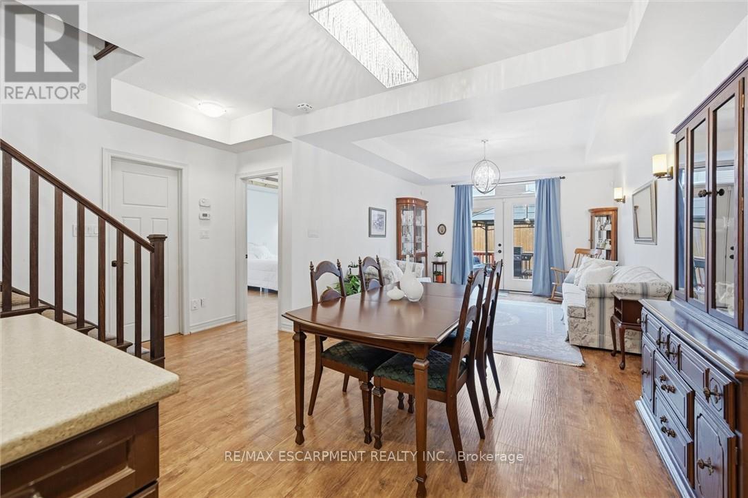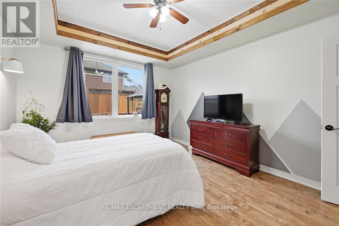 Rare 3 Bedroom, 3 Baths Freehold Bungaloft townhome with open concept plan of approx. 2000 Sq. Ft. The main level of the home features 9' ceilings, a beautiful eat-in kitchen with oversized island, gas stove, double sink and SS appliances, plenty of cupboard and pantry space for storage! The kitchen looks into the main floor dining and living rooms, leading out to an over-sized deck with gazebo, perfect for entertaining in the full-fenced backyard. The spacious layout offers everything needed for one floor living with main level Primary bedroom or enjoy the opportunity to have a Primary suite on the upper level. This unique layout includes two main floor bedrooms, 2 main floor baths and a huge upper level Family room that opens into the large Primary bedroom with a walk-in closet and 4pc ensuite. This flexible plan is ideal for empty nesters or those looking for a split design offering privacy for older kids or extended family with enough space for everyone. This Phelps built home also features a main floor laundry and a full unspoiled basement with roughed in bathroom waiting for your finishing touches. Convenient inside entry from the garage & 2 car driveway. Enjoy quaint small town living, walking distance to schools, local parks, trails & conservation areas and just a short drive to all amenities, West Lincoln Community/Sport Centre and award-winning wineries. Don't miss out on all it has to offer! (id:43681)