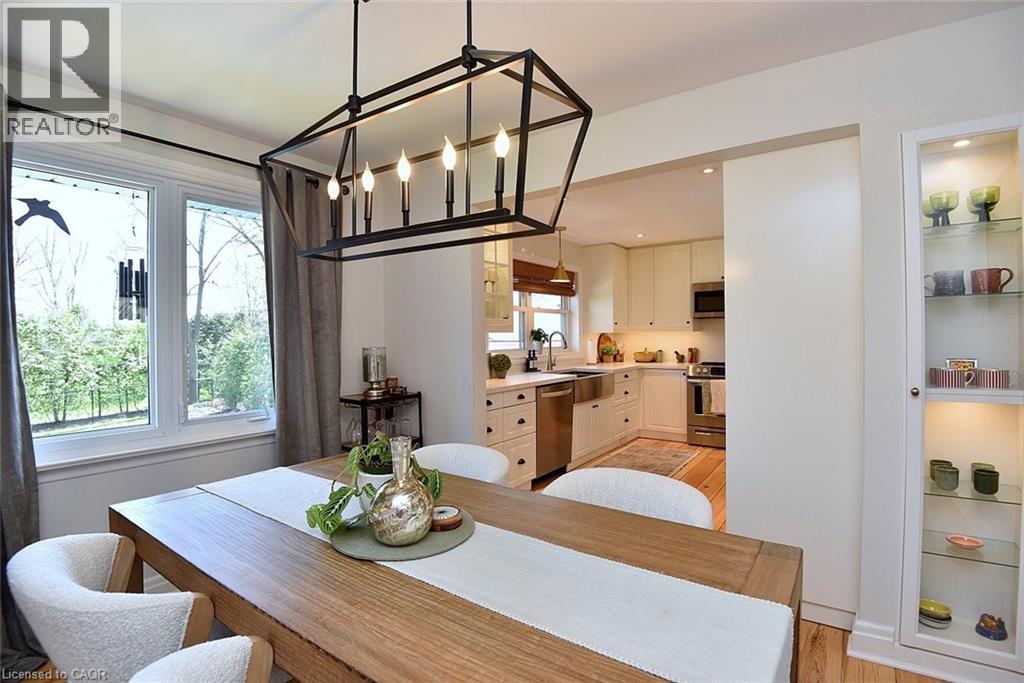 Don’t miss this beautifully renovated modern farmhouse bungalow in the heart of downtown Waterdown, offering over 2,000 sq ft of finished living space. With tons of sunlight throughout, the main level features wide-plank oak floors, a welcoming living room with wood burning fireplace and large front window, and a crisp white updated kitchen with stainless steel appliances, farmhouse sink, and ceiling-height cabinetry. The dining area flows seamlessly for easy entertaining. Two bedrooms with custom features and a fully updated 4-piece bath complete the main floor. The lower level adds valuable living space with a separate entrance, spacious rec room with walk-out, additional bedroom, 3-piece bath, and a flexible bonus room ideal for a home office, guest room, or TV lounge. The private backyard is designed for relaxing and entertaining, with an on-ground pool (2018), cabana, multiple seating areas, and fully fenced with mature landscaping. A separate large shed offers additional room for the home handyman. This turnkey home blends classic charm with modern updates, and its just a short walk to downtown Waterdown’s shops, restaurants, and parks. Note - Wood burning fireplace has been used by Seller, however the seller makes no warranties, it has not been WETT certified. (id:43681)