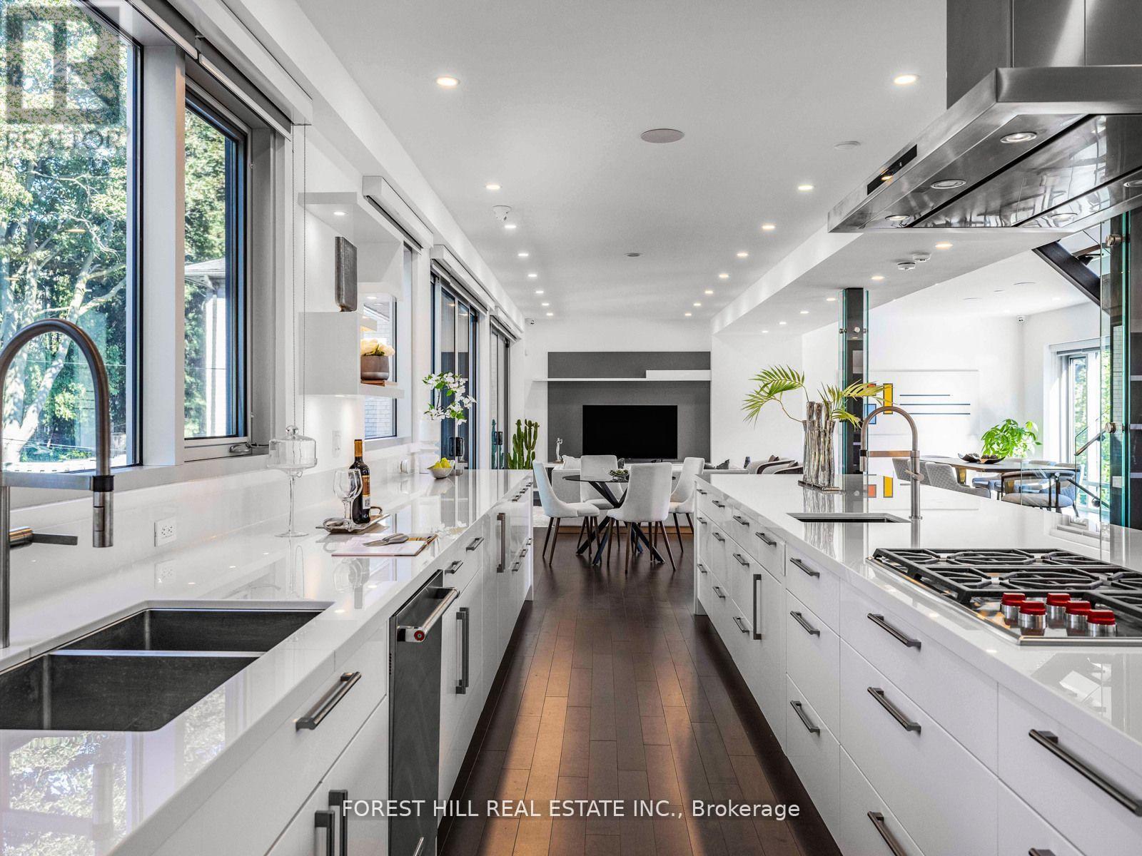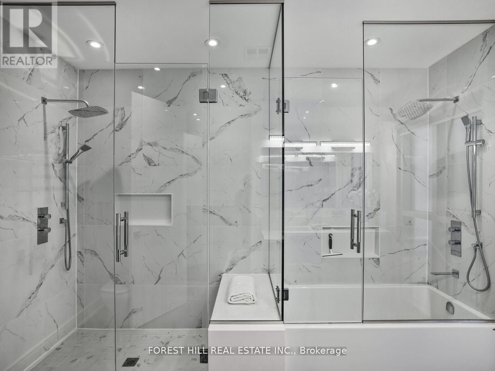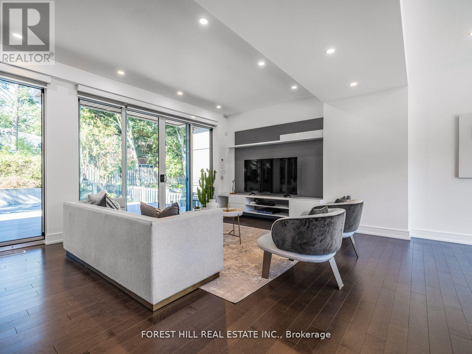 -------- Breathtaking & Built In 2017 --------- MODERN & architectural luxury appointments, designed & built for the owner, loved/maintained by the owner ---- URBAN STYLISH --- Tasteful interior design deco --- offering superior advanced-IMPRESSIVE design, and built to the highest of standards to **Commercial Standards(extravagant building materials) **with steel frame, and aluminum oversized windows, and delivering an unmatched level of finish, surpass expectation, perfect for family life and upscale lifestyle-----ZEN inspired clean--"SEAMLESS LINES ULTRA MODERN, airy atmosphere", nestled in the prestigious Bayview Village----Artfully designed open -riser staircases, The main floor offers brilliantly executed open concept principal rooms with incredible **STUNNING VIEWS** CAPTURES THE ESSENCE OF THIS HOME BEAUTY. The designer, sleek kitchen offers great spaces for your family's culinary experience, and contemporary kit equip with dekton countertop, bespoke cabinetry(lavish) and expansive centre island, adjoining breakfast area, easy access to private and large backyard. The open concept family room or potential senior room provides with custom-shelving and beautiful-green view, well-positioned 3pcs washroom. The elegantly, privately appointed primary bedroom with east & west-unique 2 balconies, electric fireplace, adjoining sitting area for your private time, opulent 6pcs HEATED ensuite. The additional bedrooms provide own ensuite, oversized windows, providing perfect scenery of green garden and conservatory beauty. The lower level offers a HEATED floor, kitchenette, 3pcs washroom and bedroom, and ample sunlight thru-out the large windows. The vast backyard is perfect for entertainment equipped with privacy hedges, firepit and waterfall, sitting area. This home is situated in peaceful and exclusive neighbourhood surroundings near don river trails, parks, bayview village shops and excellent schools & major highways. (id:43681)