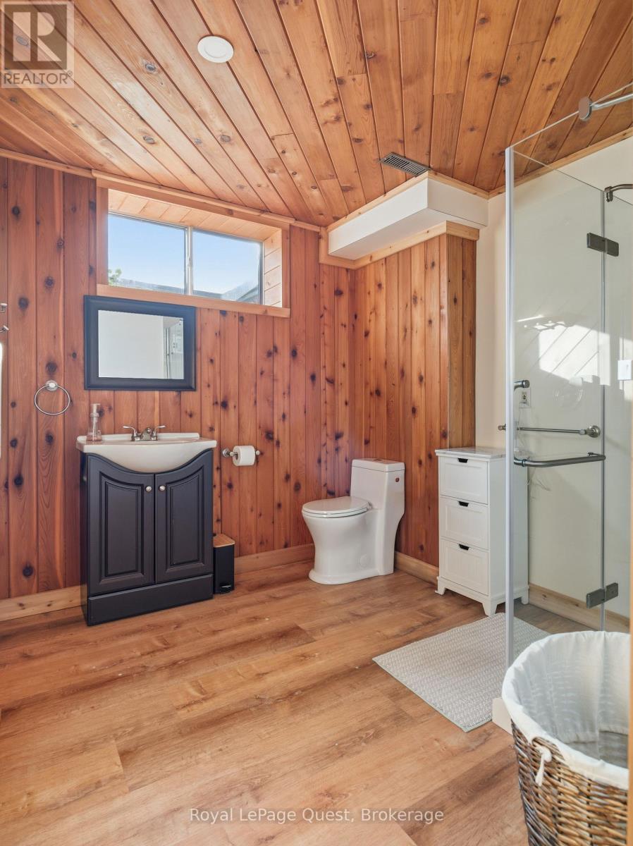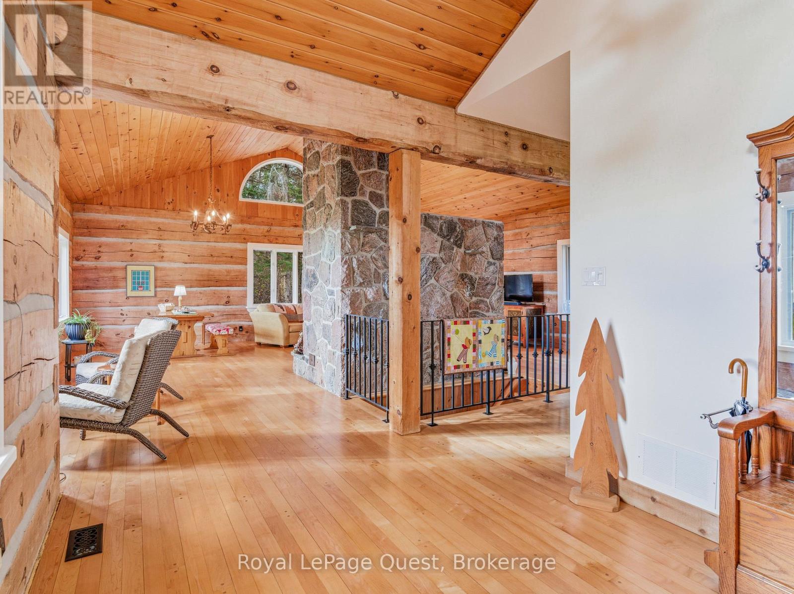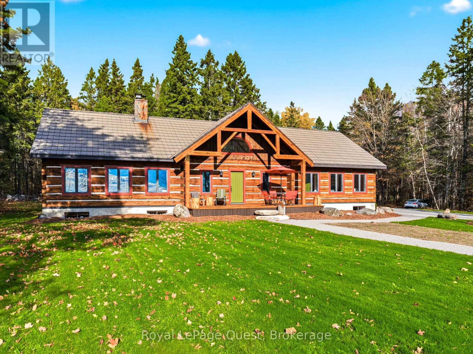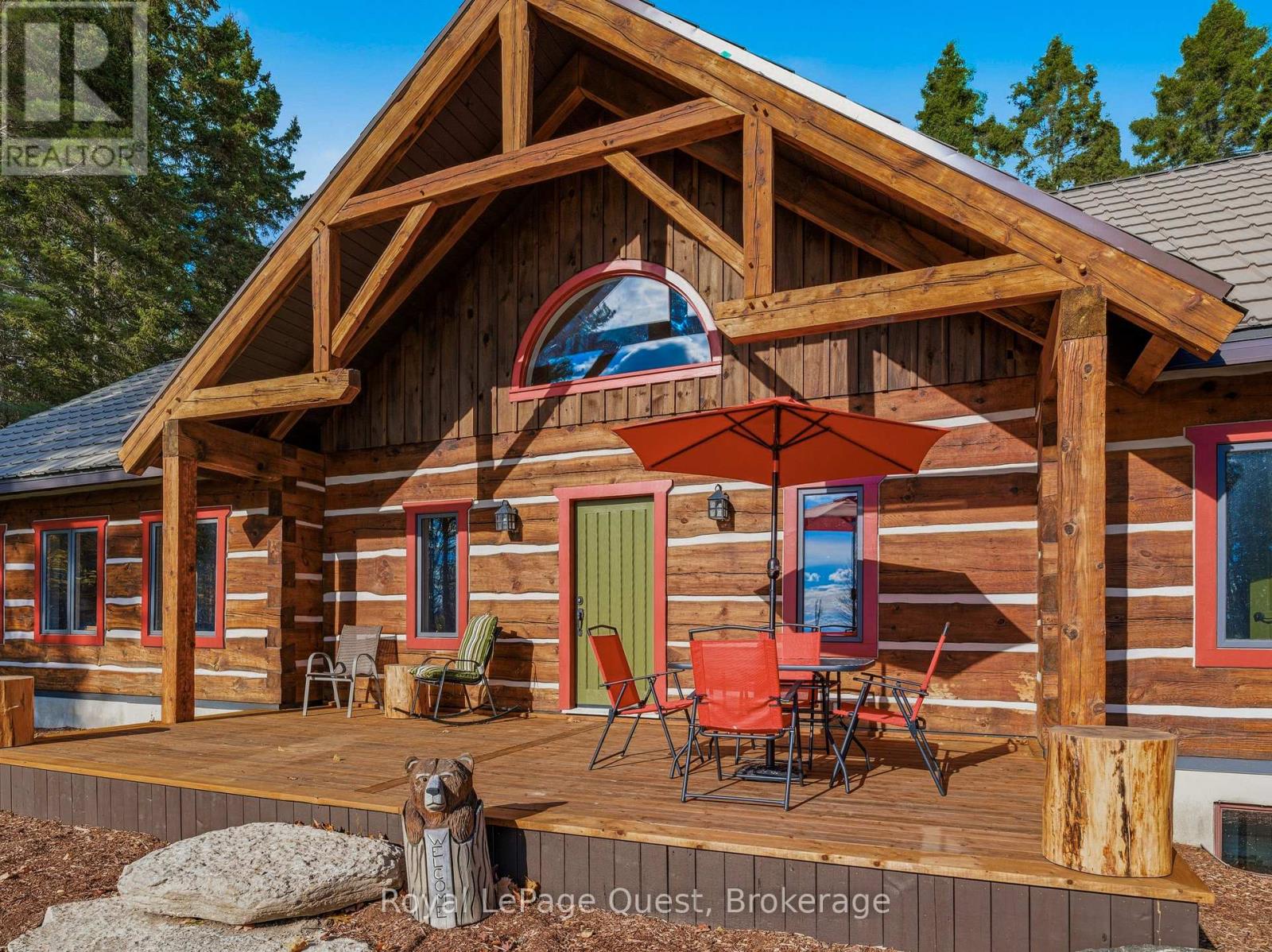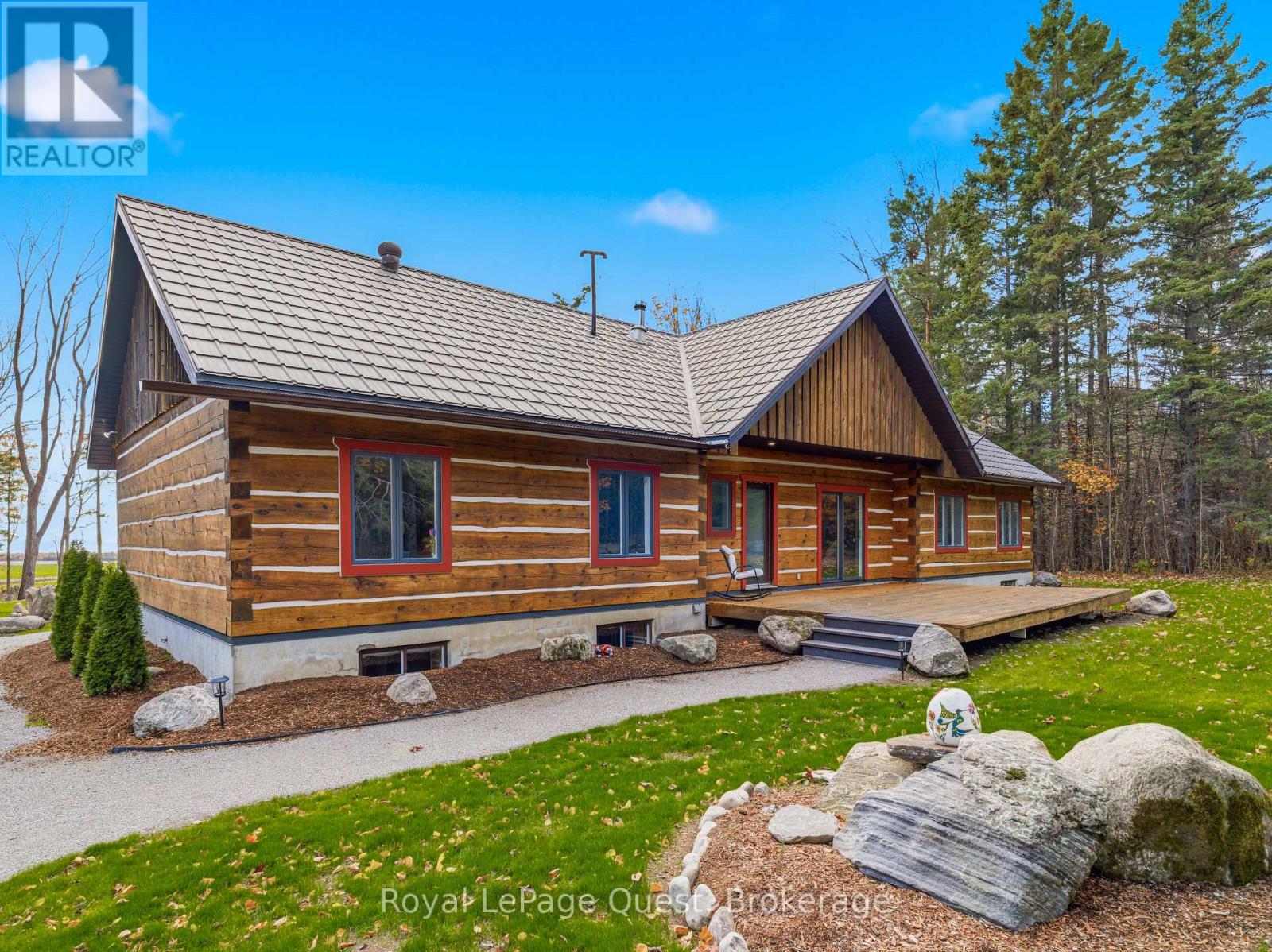 Set on 50.6 acres of complete privacy, this custom log home captures some of the most captivating views in the region-stretching across Georgian Bay, rolling farmland, and all the way to Blue Mountain, visible from the living room, primary suite, and covered porch. Inside, a warm and inviting interior with soaring cathedral ceilings and a striking stone fireplace creates a true sense of retreat, perfectly framed by expansive windows that bring the landscape in. The thoughtful layout offers flexibility, including a primary suite with a large walk-in closet (originally a bedroom and easily converted back if desired).The approach is just as impressive as the home itself-set well back from the road for ultimate seclusion, with a wrap-around driveway and a fully finished detached garage/shop ideal for hobbies, storage, or workspace.Recent upgrades enhance both form and function: the exterior has been professionally refinished, including new chinking by a skilled log home specialist, and the landscaping has been refreshed to open up and maximize the already stunning views.Location balances tranquility with convenience-just 10 minutes to major shopping and only 3 minutes to the sandy beach at the end of Concession 14 W.A truly special feature reveals itself in the winter months: as the leaves fall and the air clears, the view across the bay opens completely, and in the distance, the Blue Mountain ski hills glow at night-lit up like the world's largest Christmas tree.The treed acreage also benefits from the Ontario Managed Forest Tax Incentive Program, offering long-term value for nature lovers and investors alike.A rare offering where privacy, landscape, and lifestyle come together-this is more than a home, it's an experience. (id:43681)